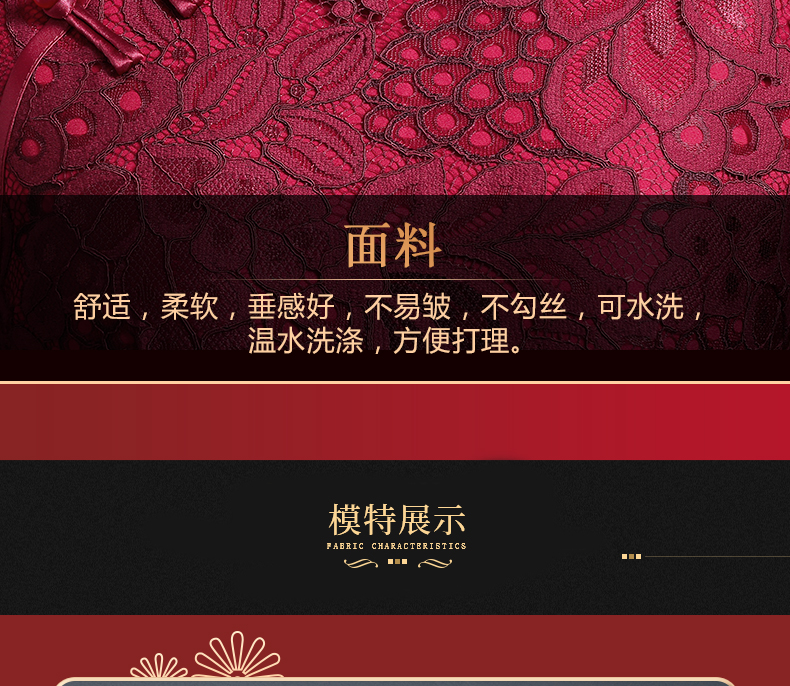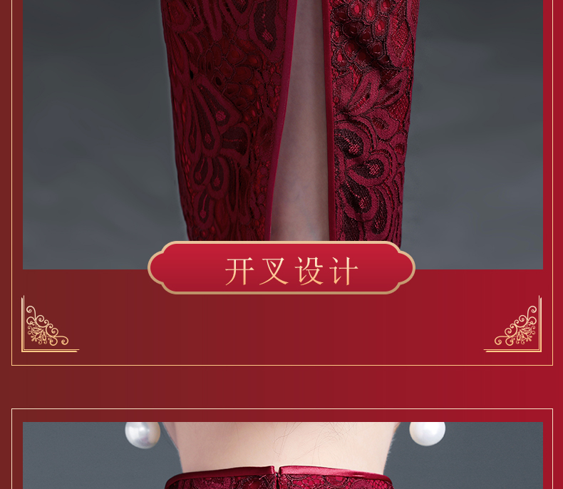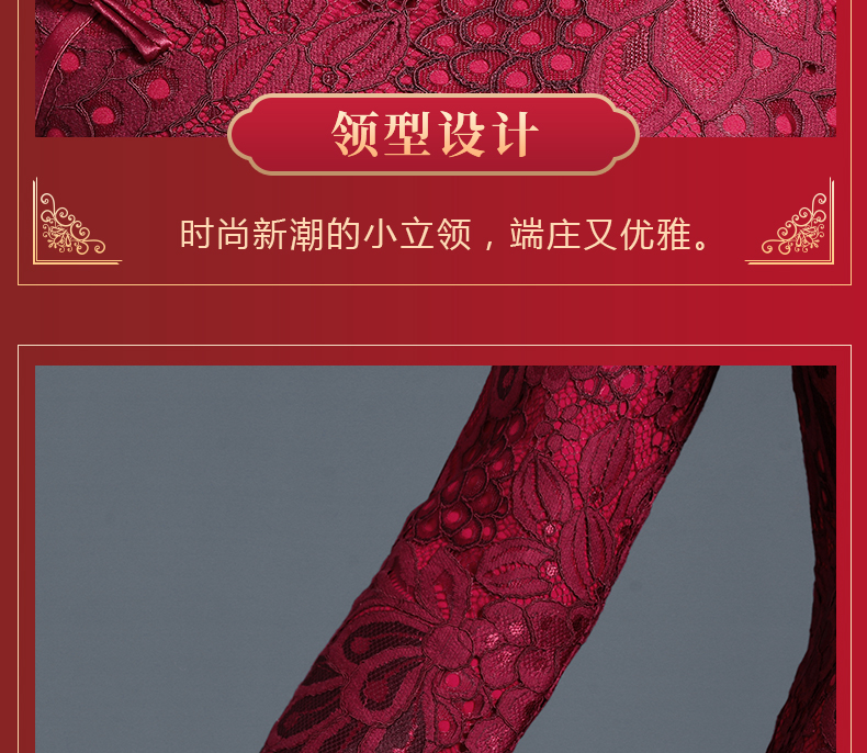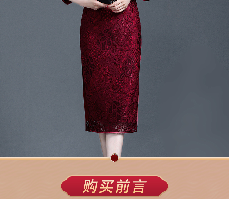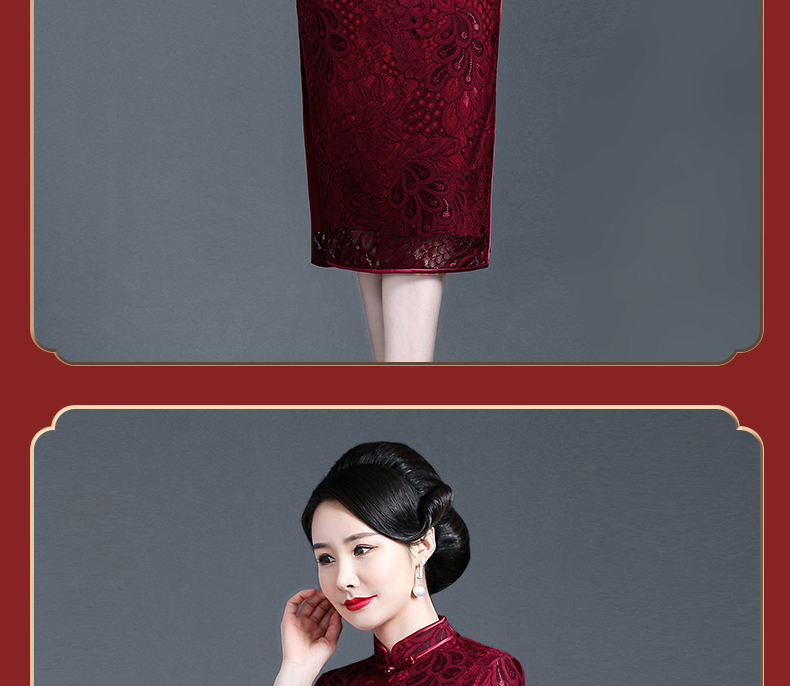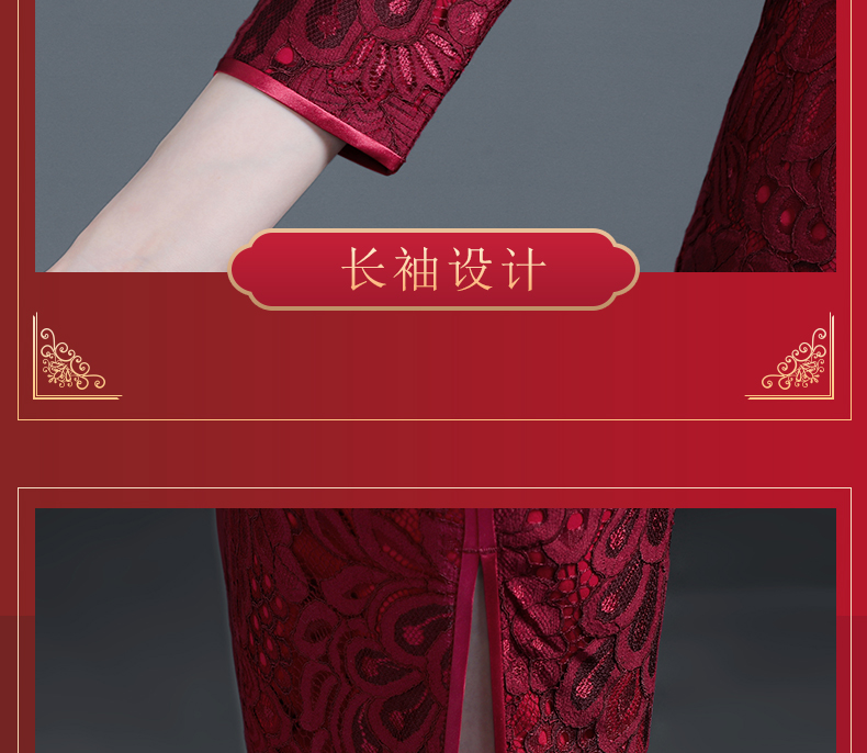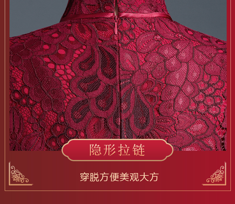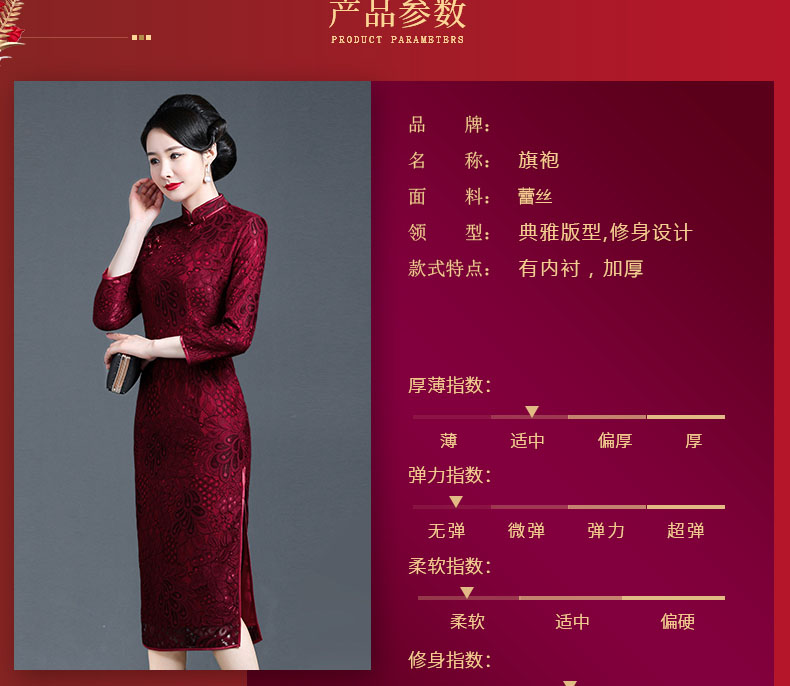 上海旗袍厂NBL-NZ242 枣红 秋冬季喜婆婆婚宴装蕾丝秋装加厚旗袍年轻款气质婚礼服