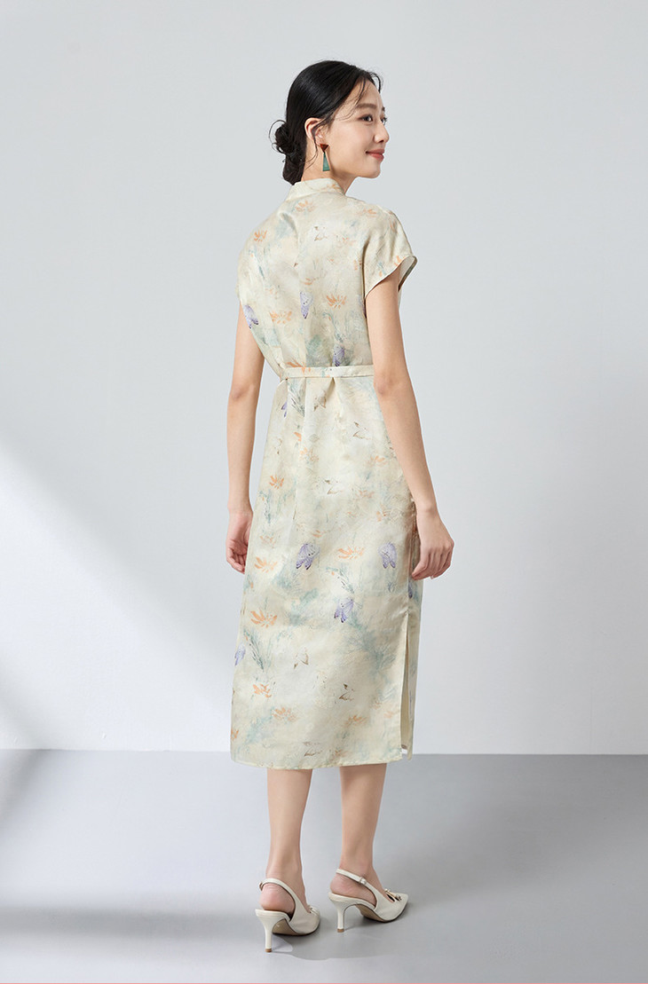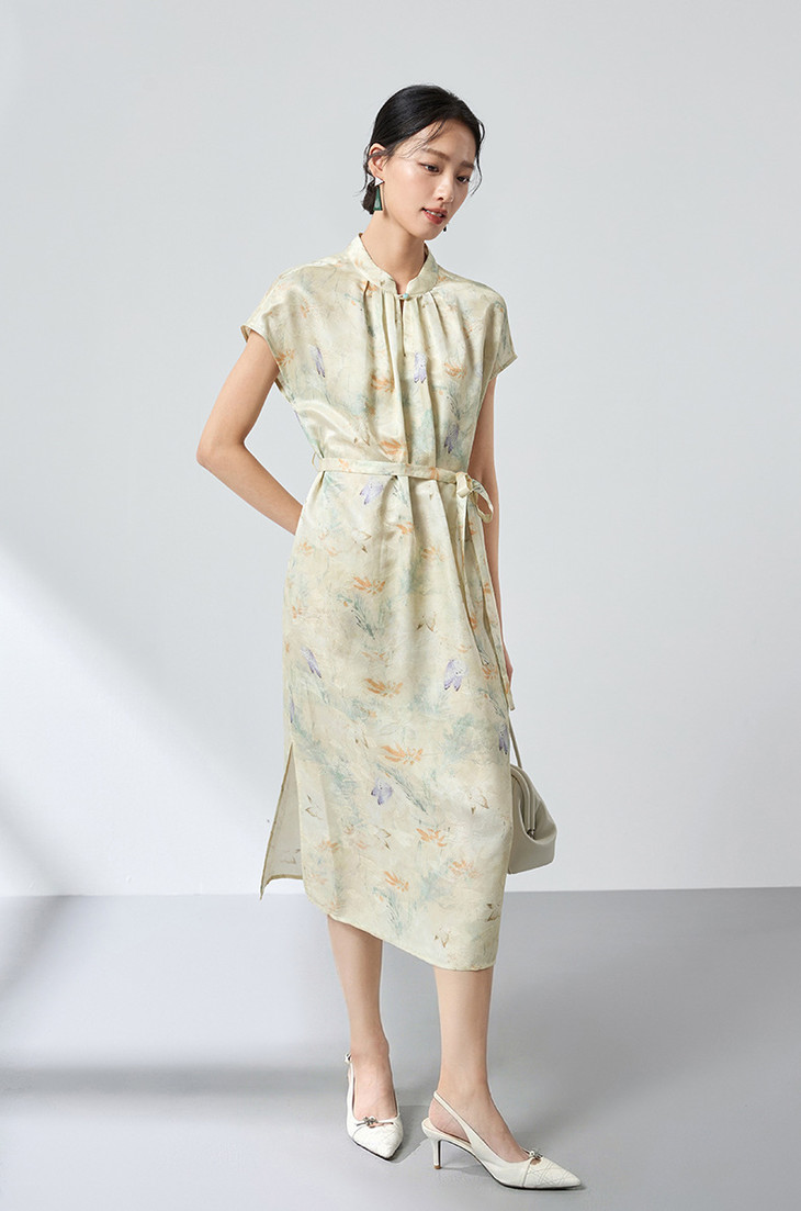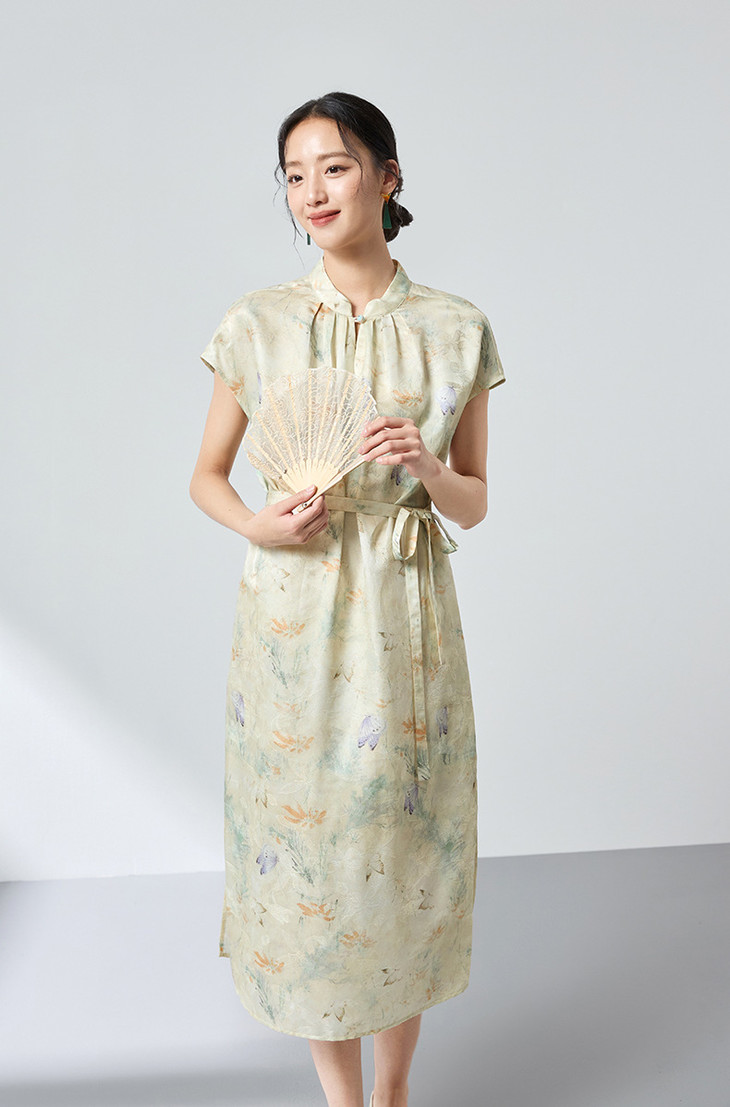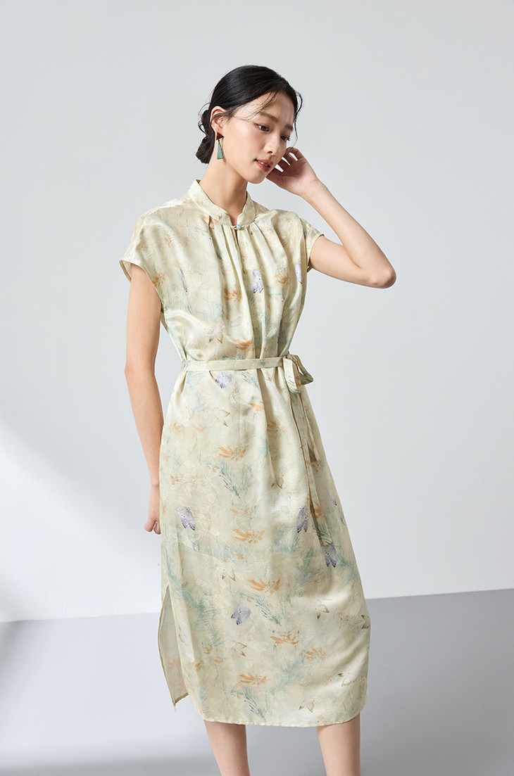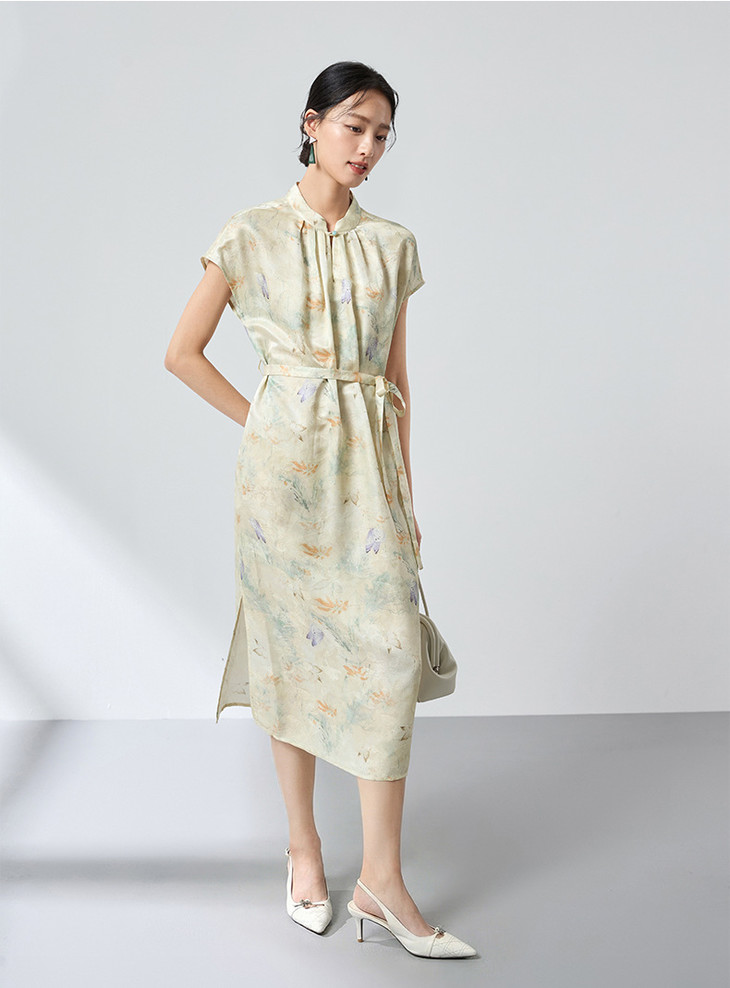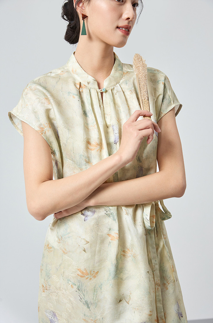 桑蚕丝中式桑波缎立领印花连衣裙,优雅显白轻奢气质SM-1682501825