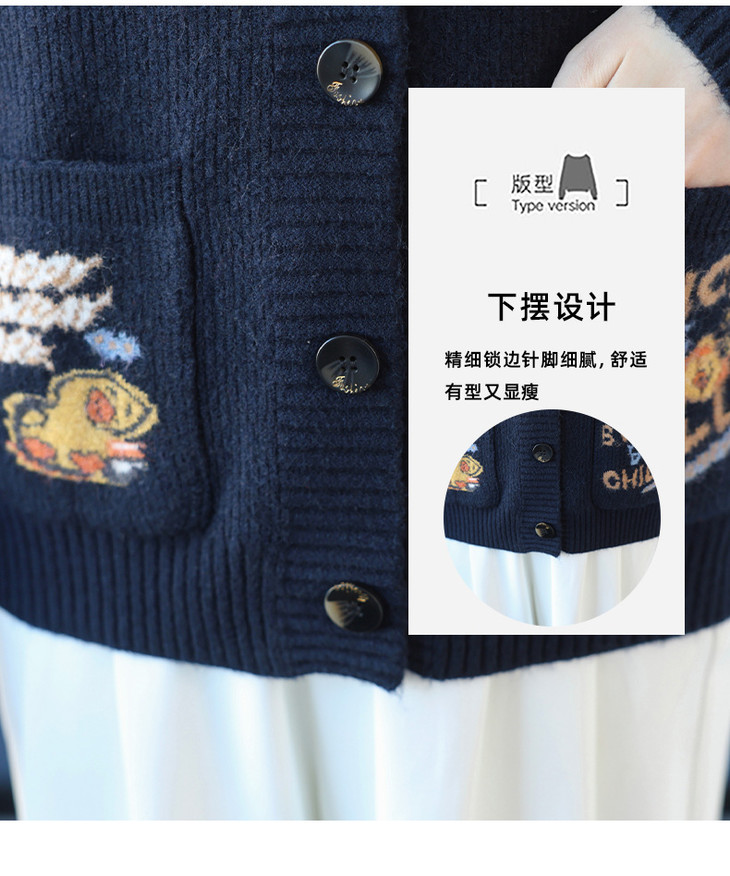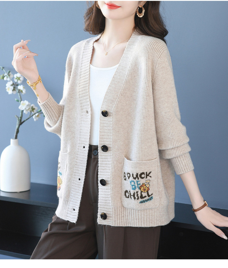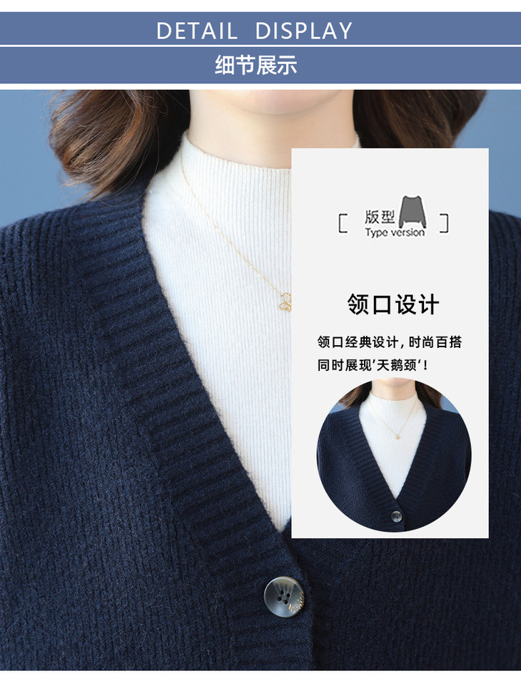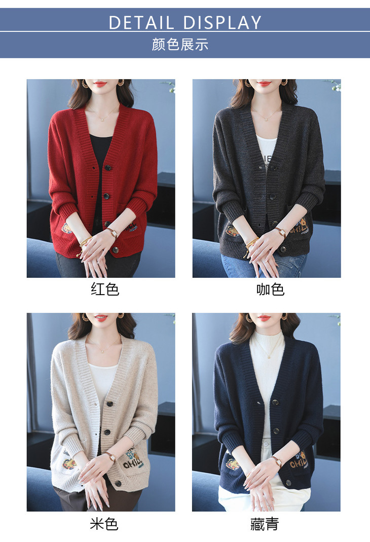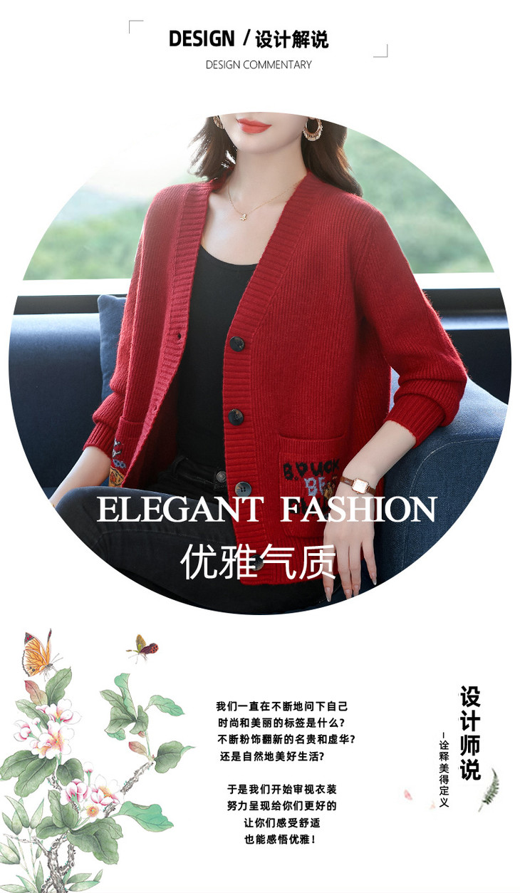 洋气妈妈针织开衫,V领毛衣外套春秋宽松遮肉上衣CC-13-98039