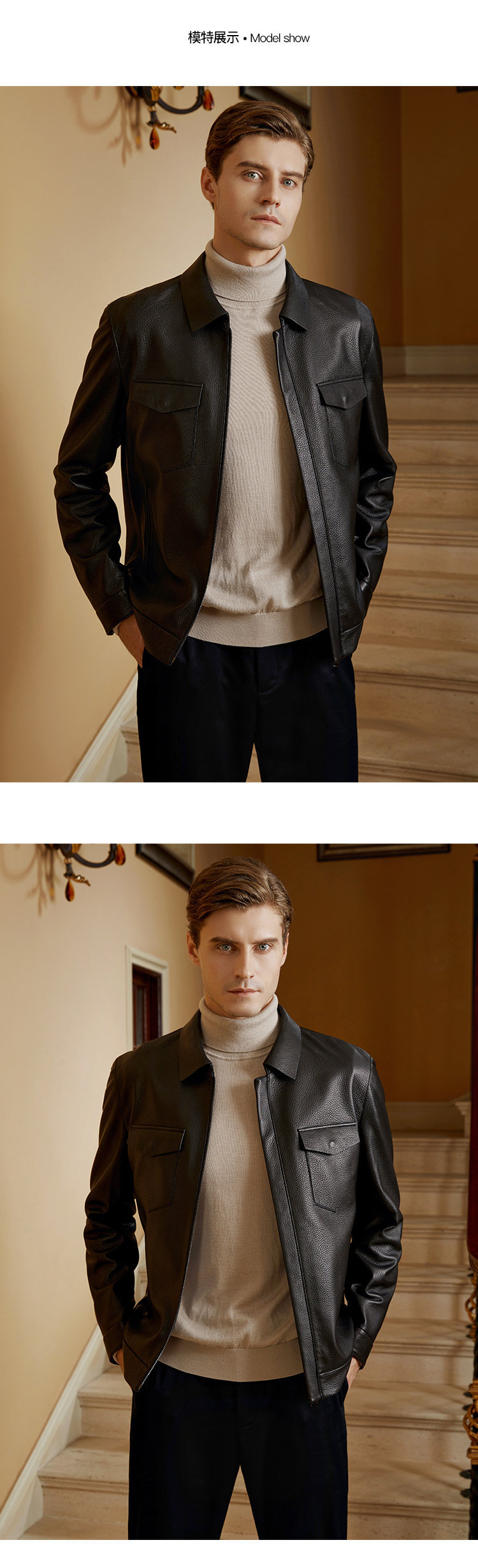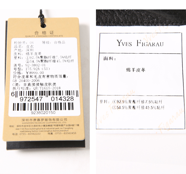 YvesFigarau伊夫·费嘉罗秋冬保暖绵羊皮革皮夹克923802