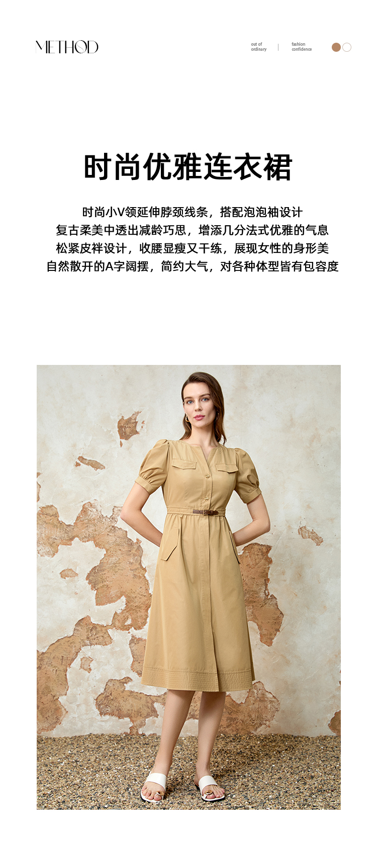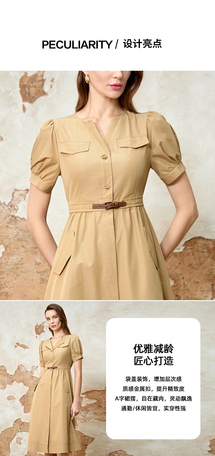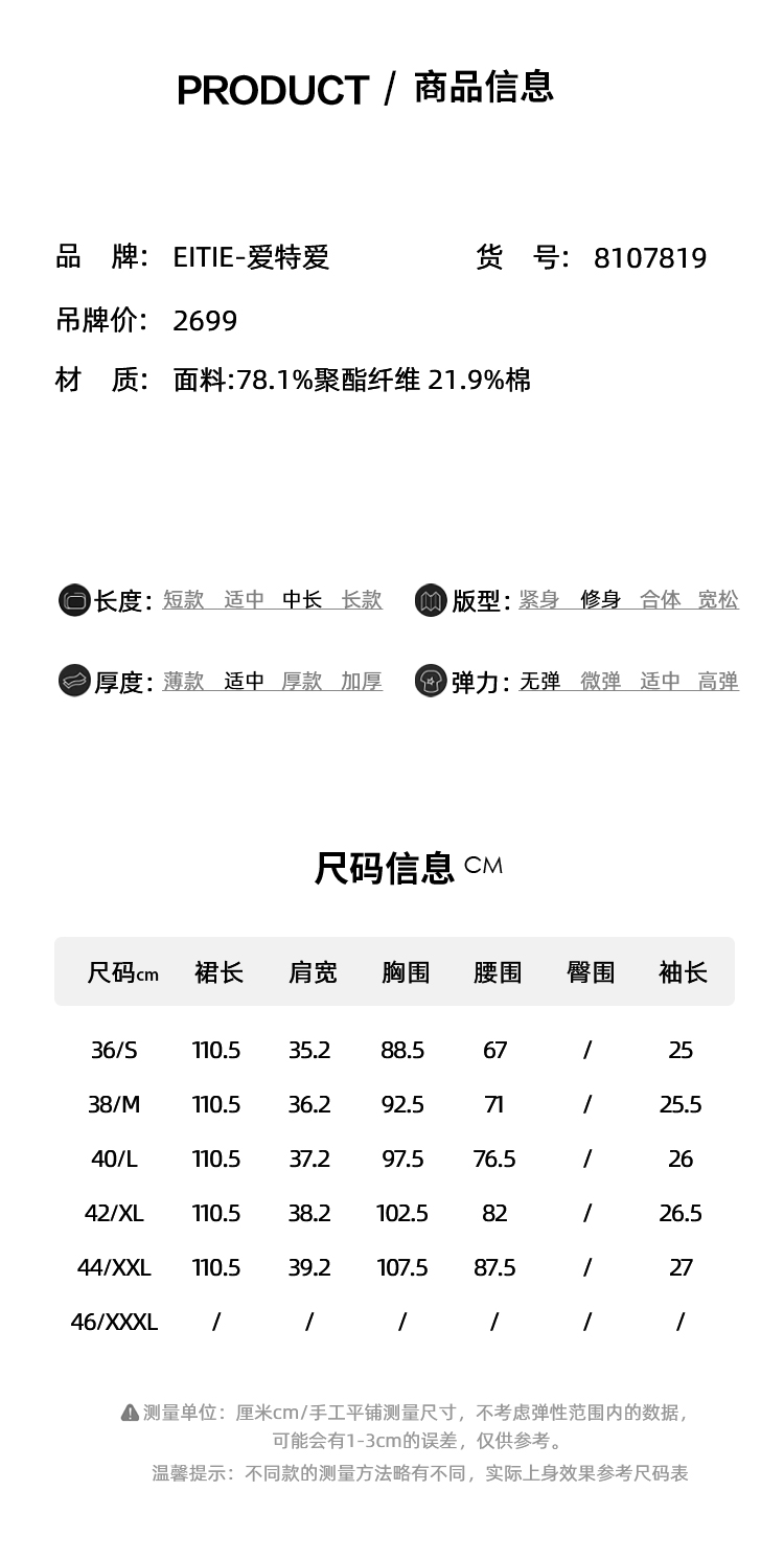 EITIE爱特爱春季新款时尚休闲显瘦收腰连衣裙8107819
