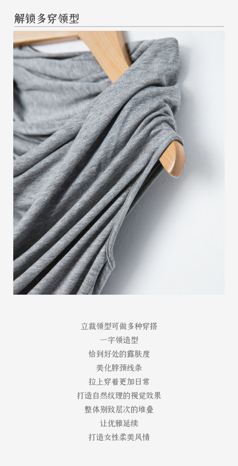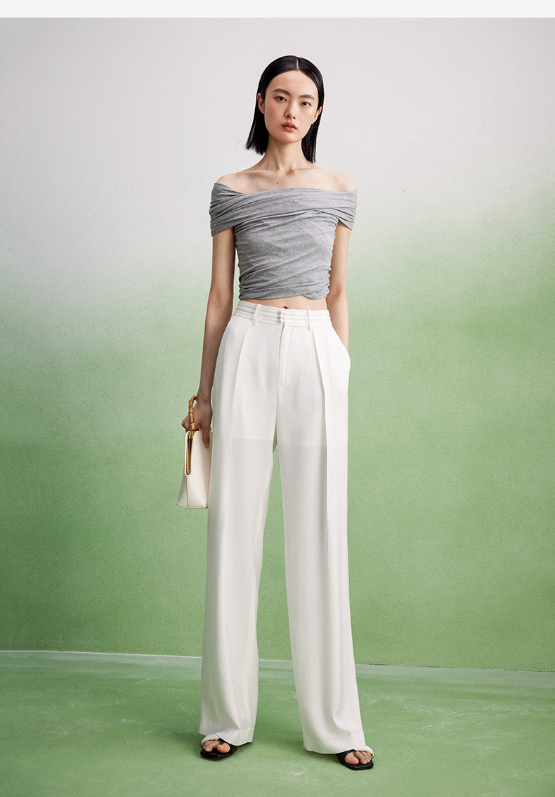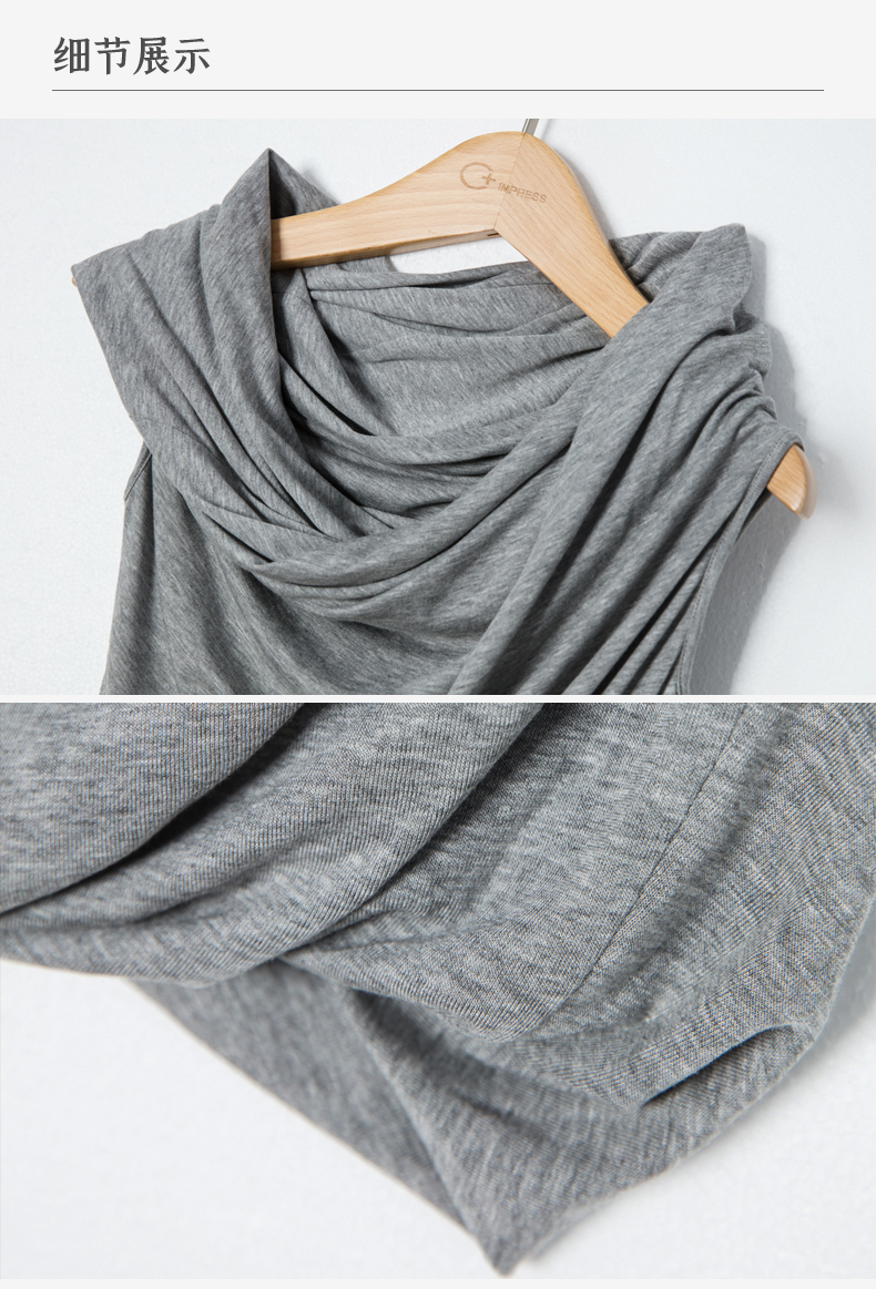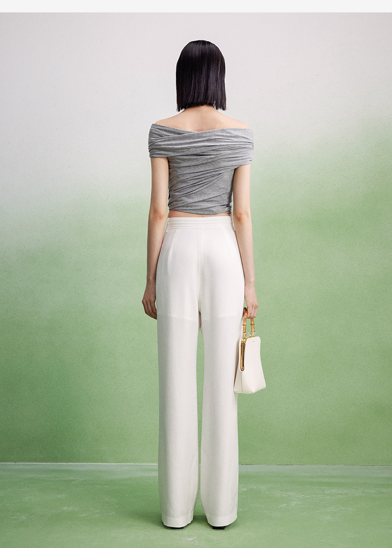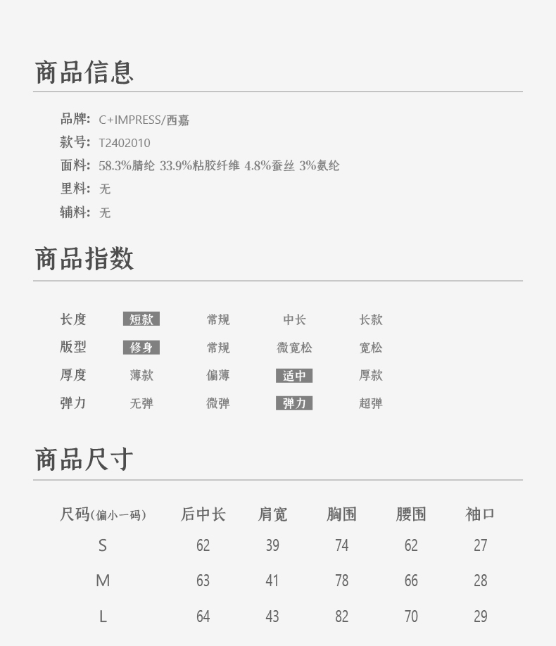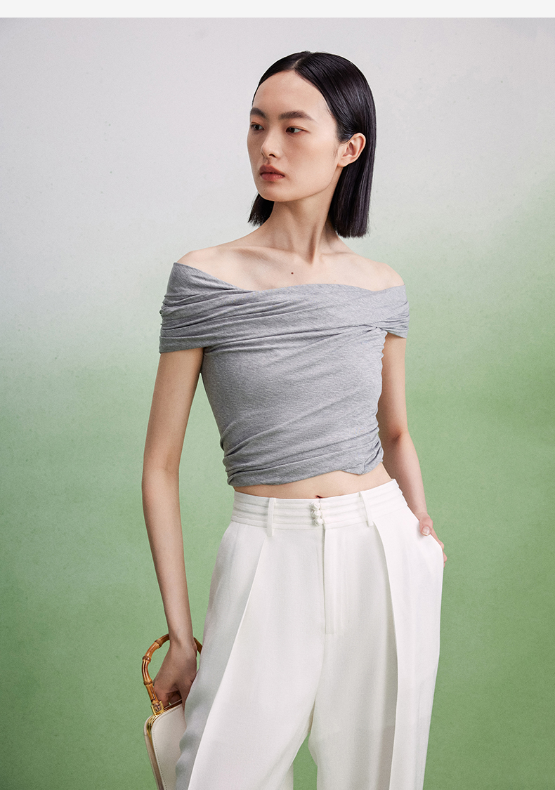 西嘉【该款尺码偏小一码】T2402010C+IMPRESS/西嘉蚕丝针织T恤女夏季新款设计感不对称多穿褶皱短袖