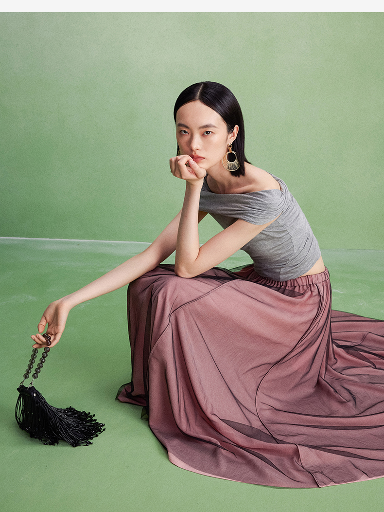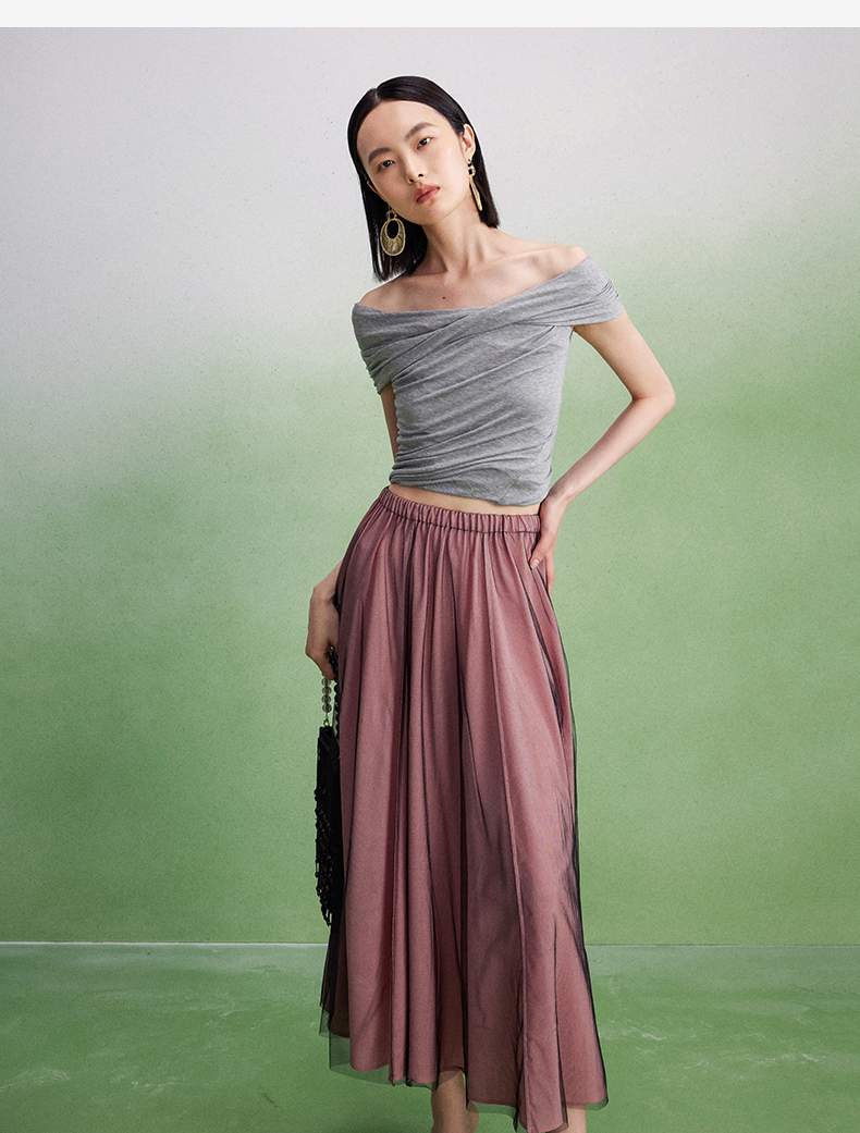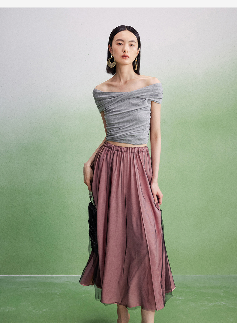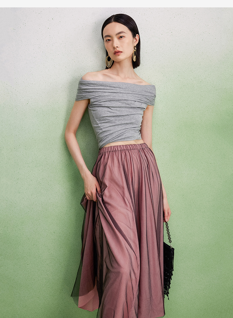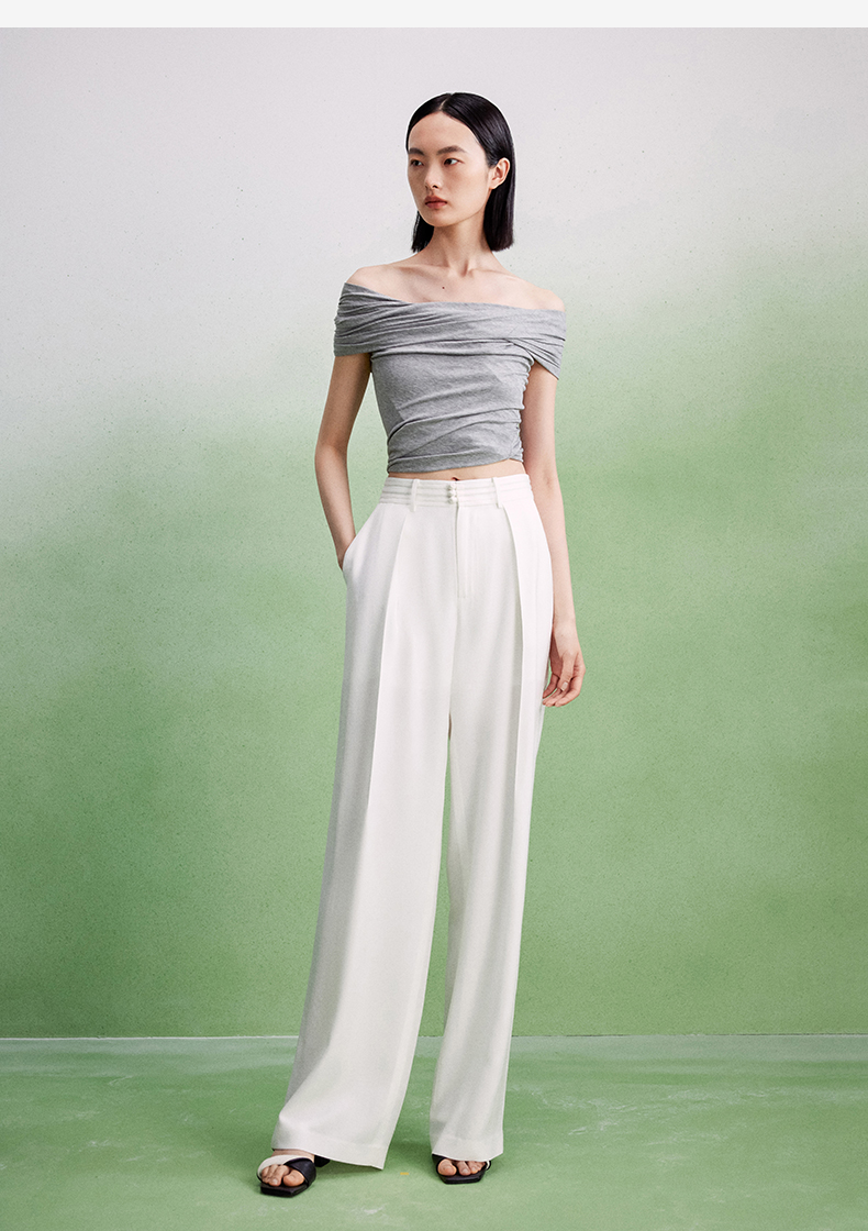 西嘉【该款尺码偏小一码】T2402010C+IMPRESS/西嘉蚕丝针织T恤女夏季新款设计感不对称多穿褶皱短袖