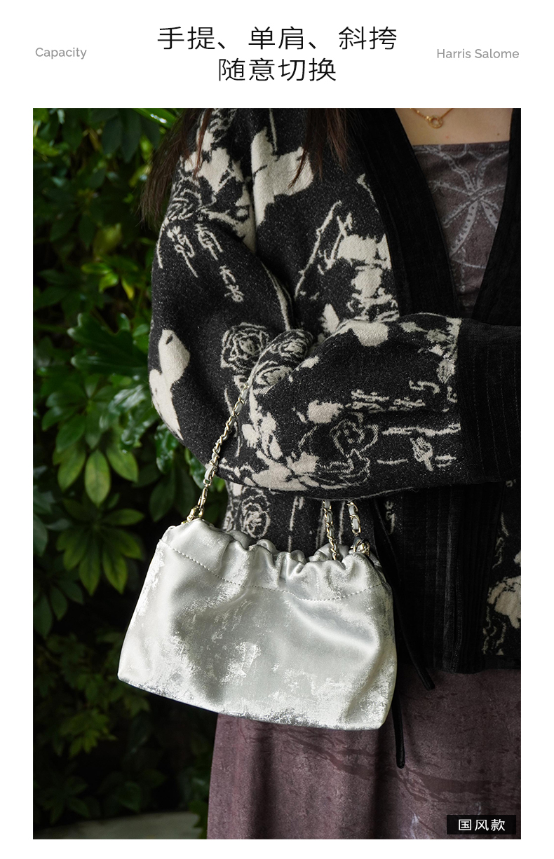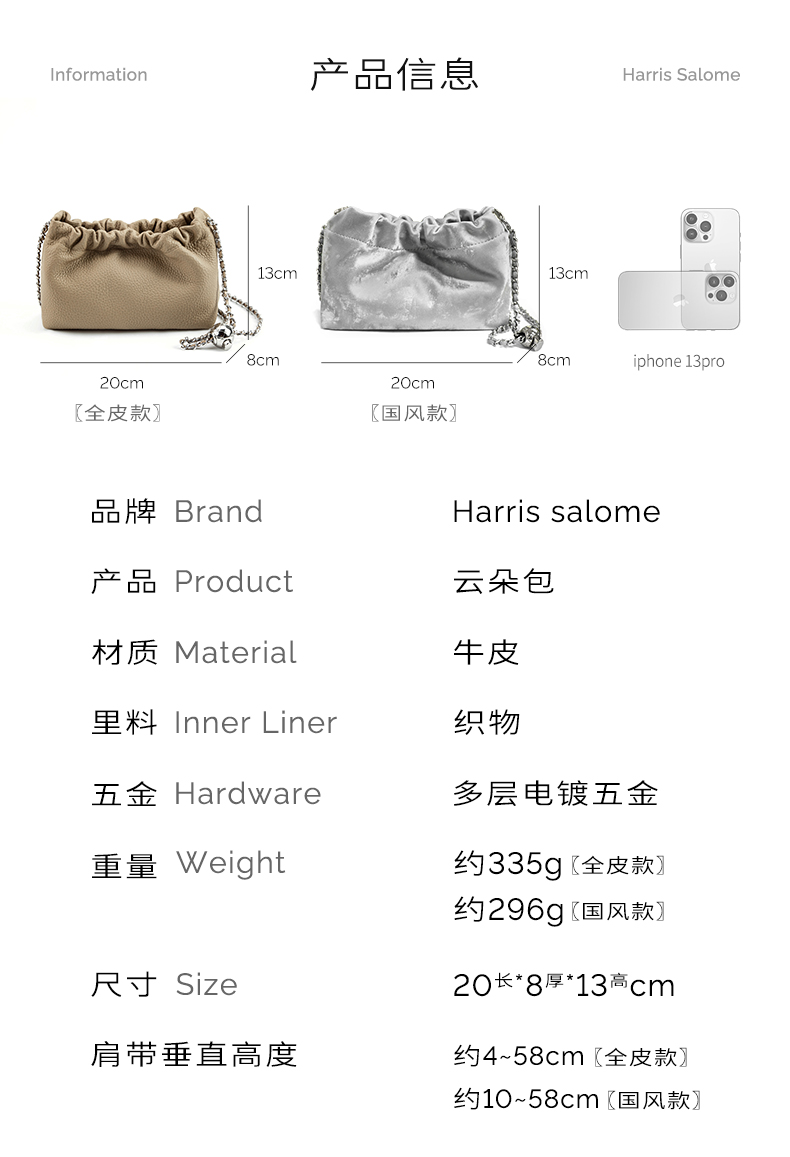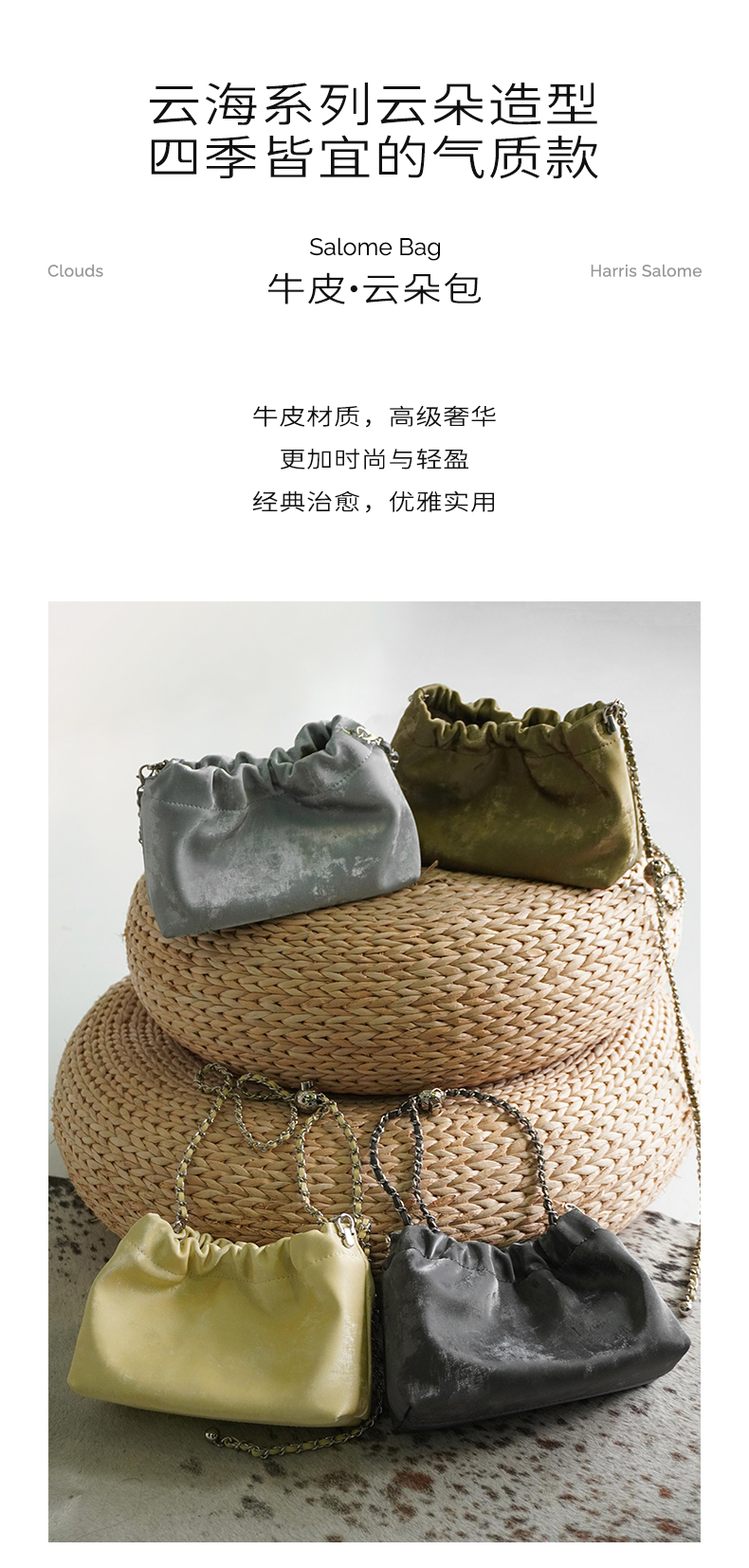 Harris Salome牛皮金链云朵包
