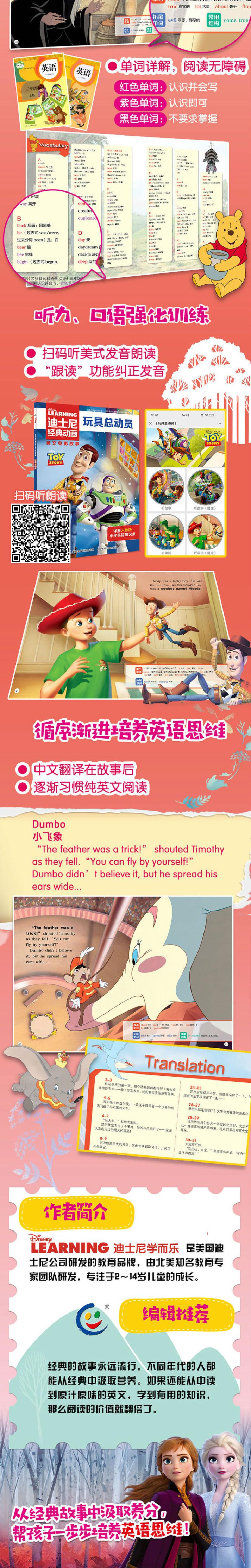本书由“迪士尼英语分级读物专家团”为中国小学生量身定制。精选了广受全球孩子欢迎的《冰雪奇缘2》《爱丽丝梦游仙境》《玩具总动员》《小飞象》《睡美人》《灰姑娘》《小熊维尼》《白雪公主和七个小矮人》《小鹿斑比》《小公主苏菲亚》等10个迪士尼动画故事。