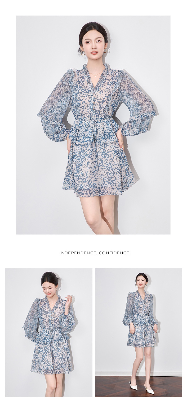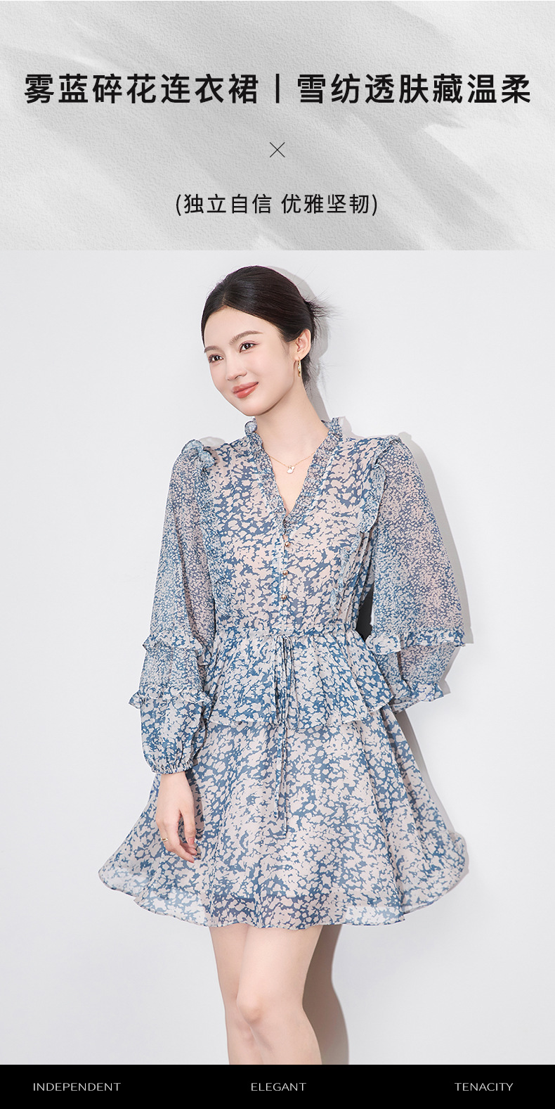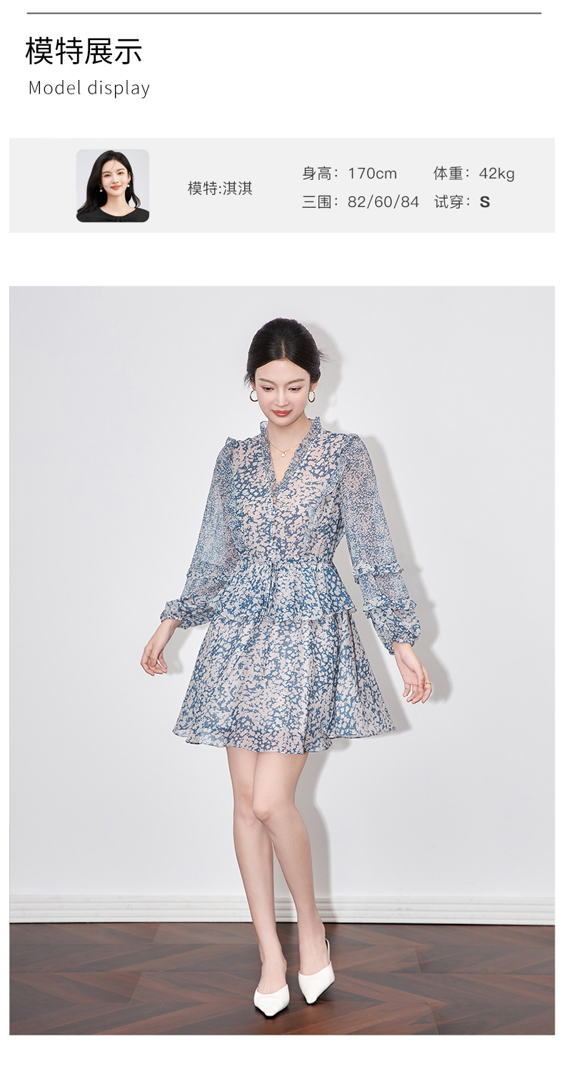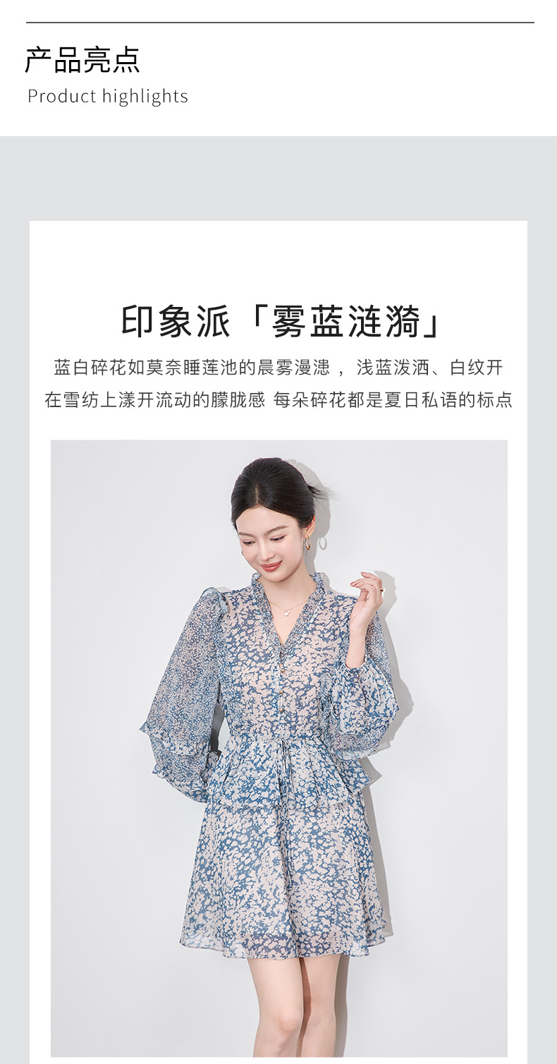 「高货wl」全新升级【铂金会员330/天猫439/差价109】(35554)洛诗琳法式气质印花连衣裙2026夏季薄款收腰显瘦雪纺裙