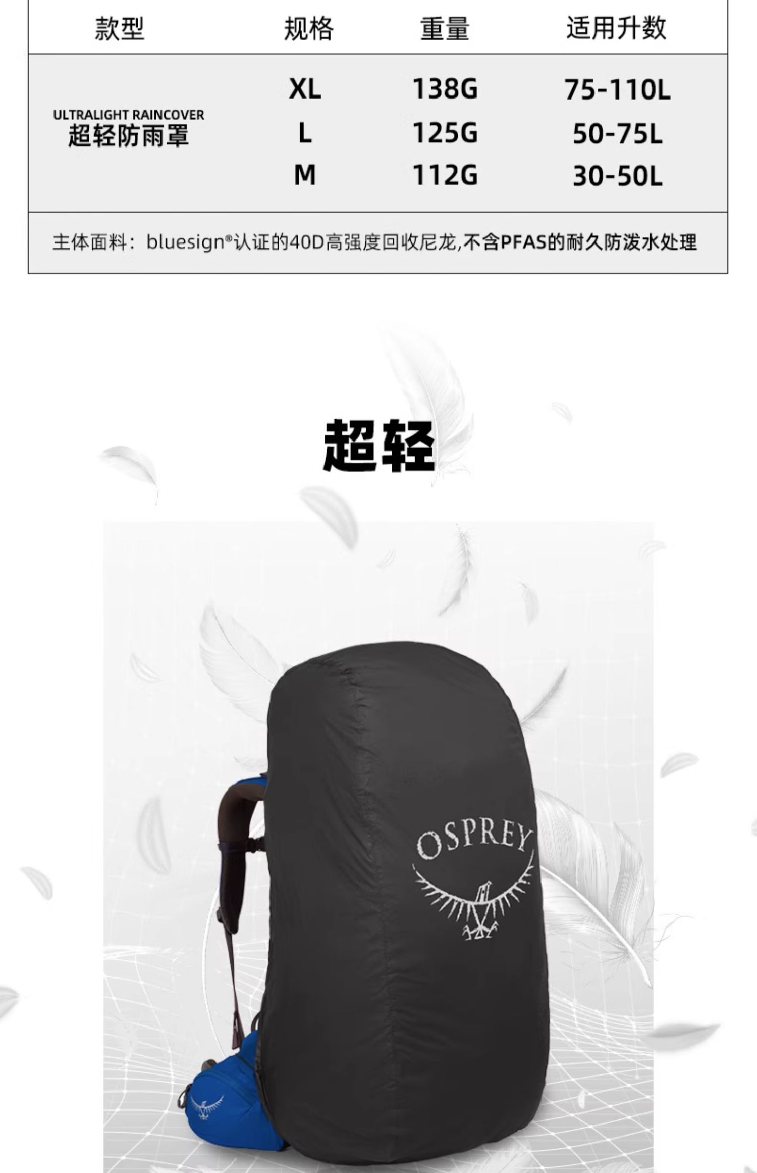 OSPREY UL Raincover超轻防雨罩可压缩防刮蹭户外背包配件