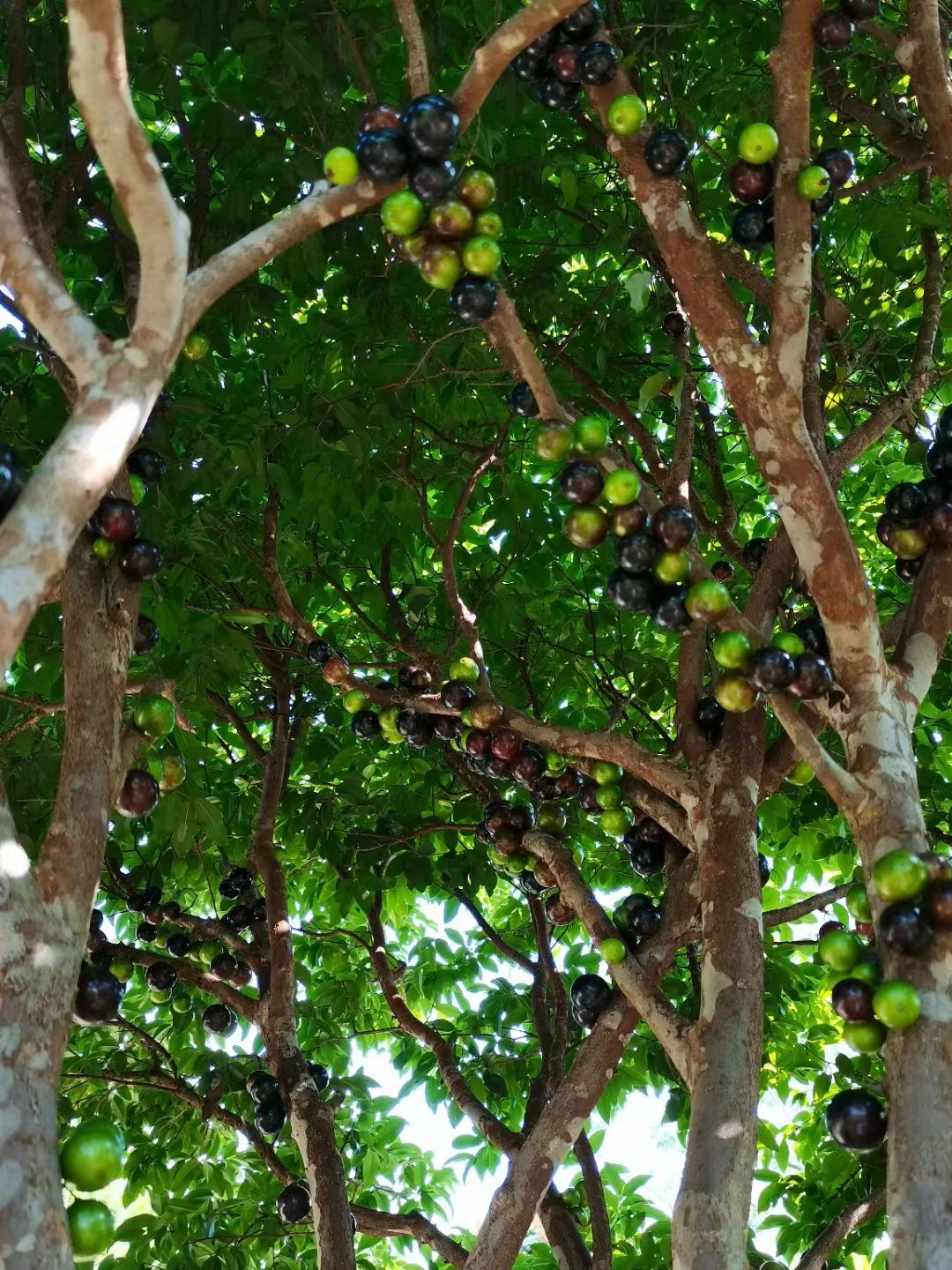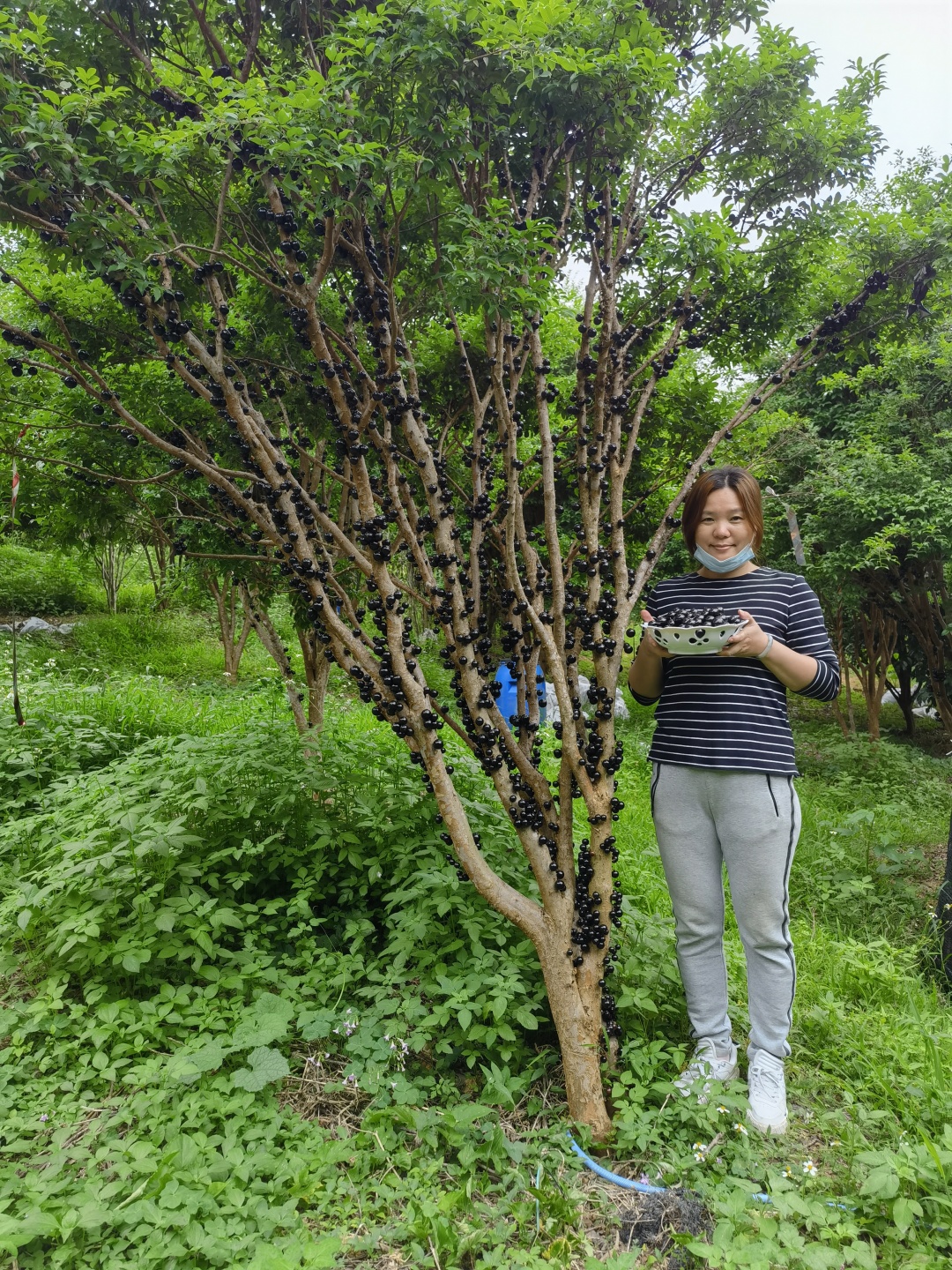 汪珍姐边上密密麻麻的就是嘉宝果的果实,看上去有点像葡萄,所以也叫树葡萄,常规种植的挂果率更高,有密集恐惧症的朋友会怕得不要不要的~~~