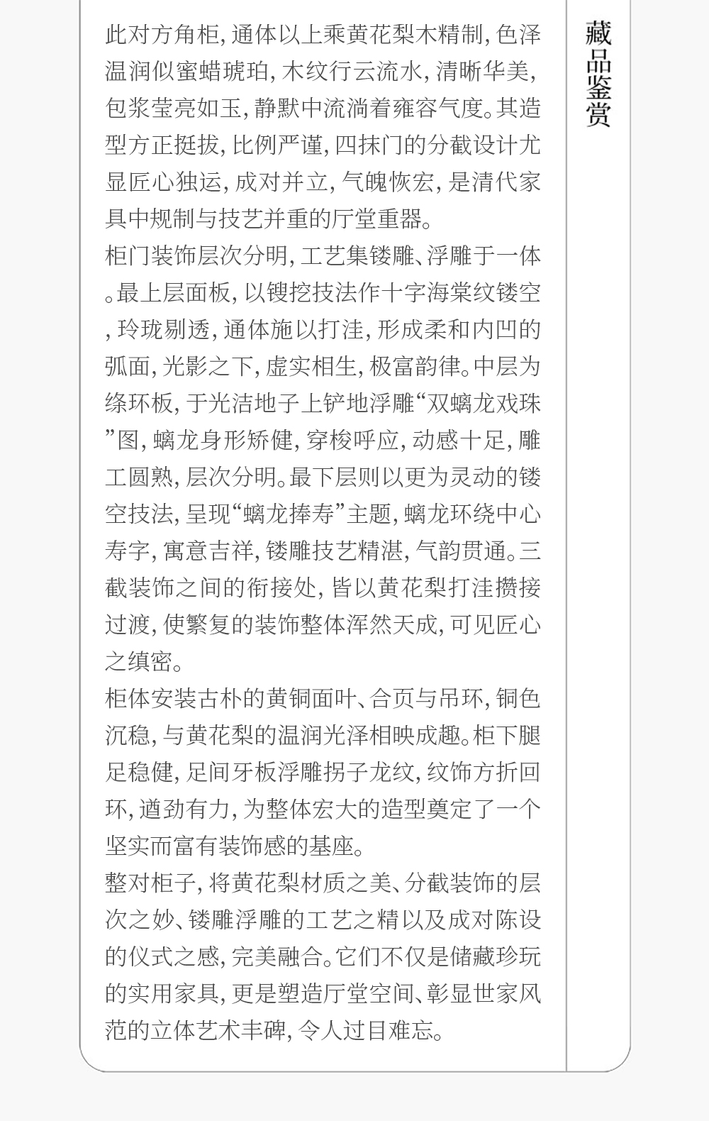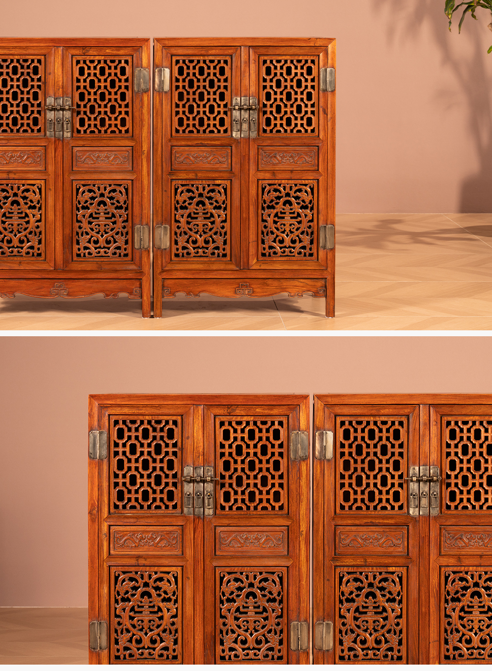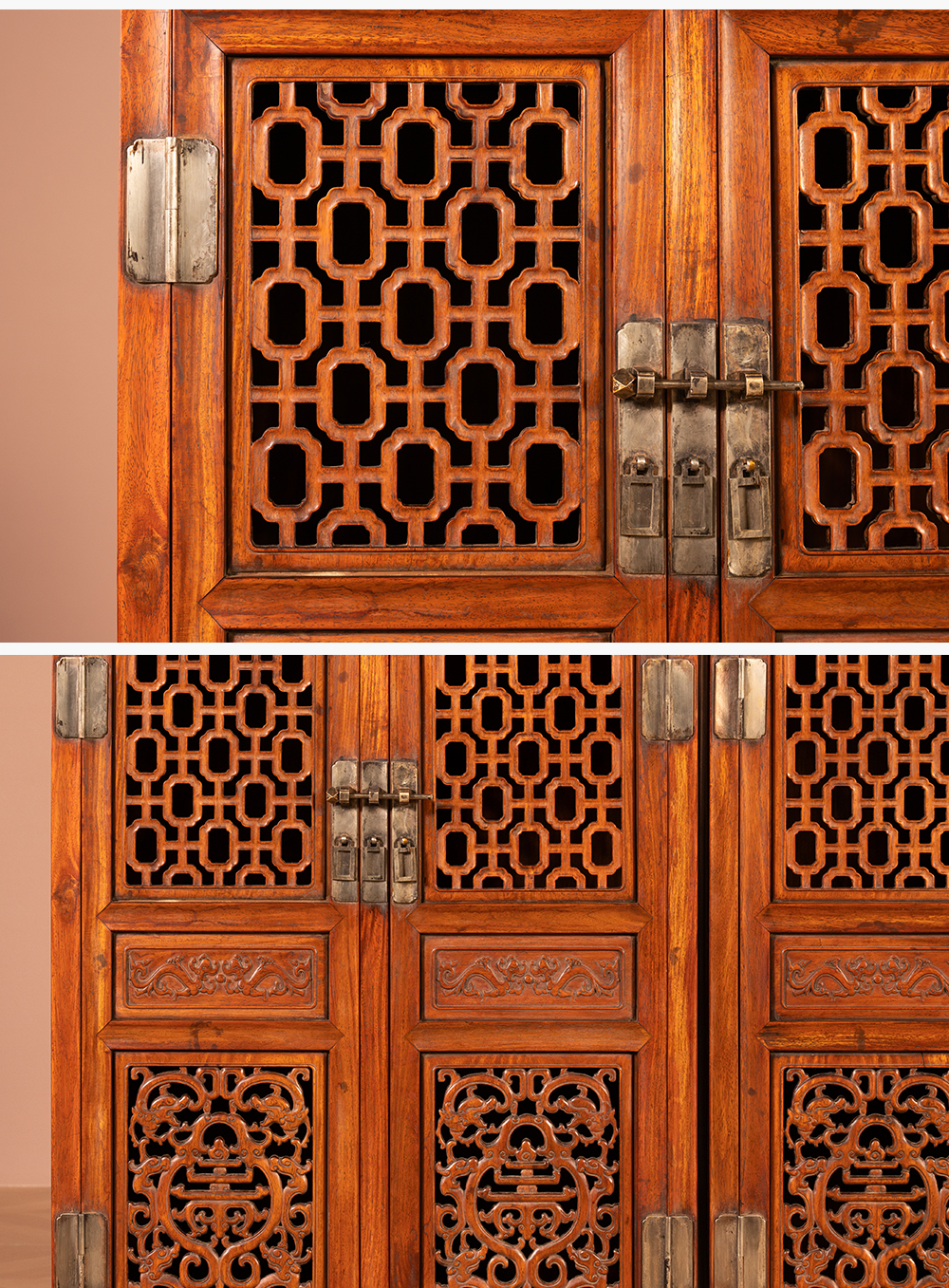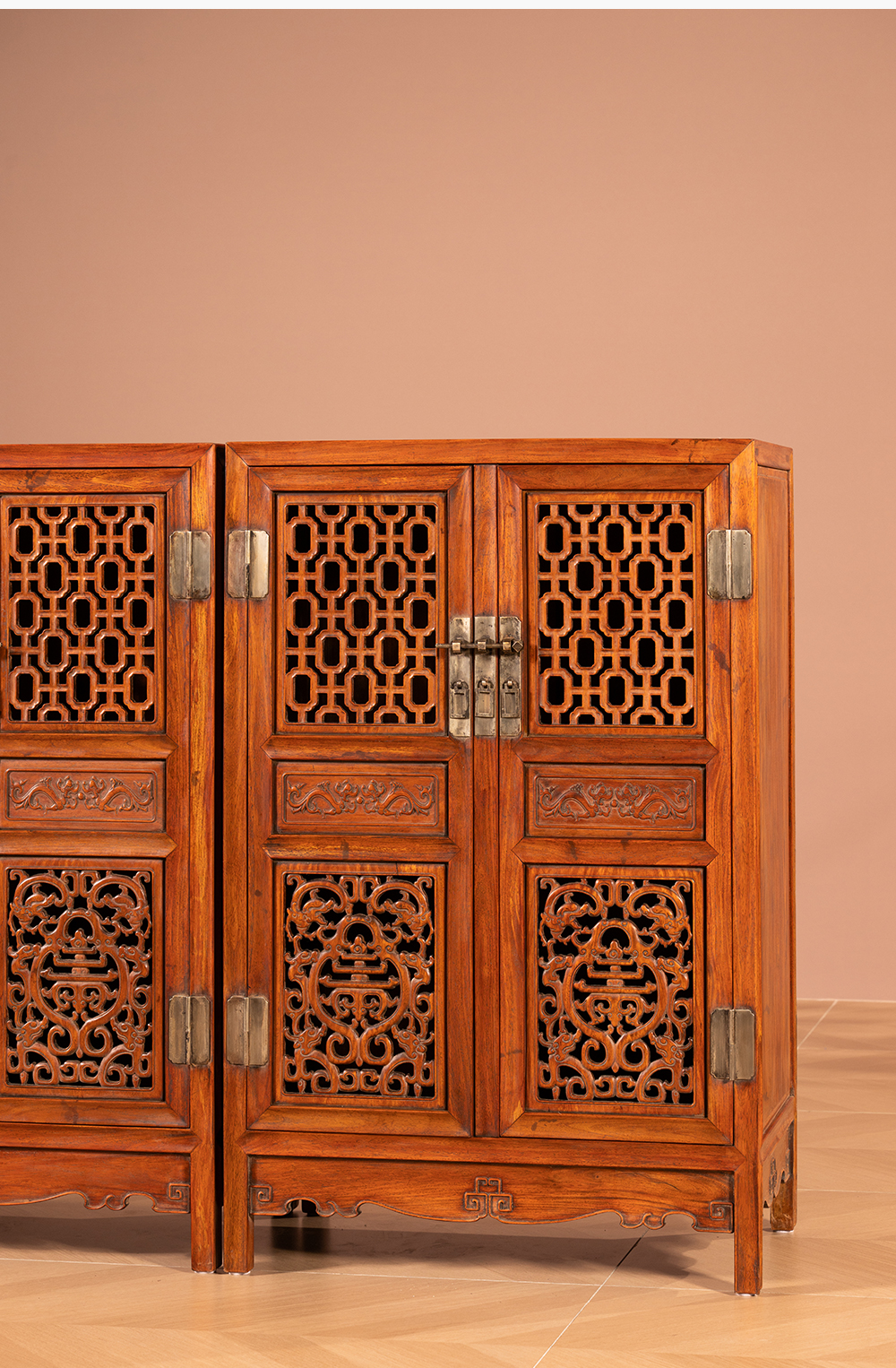 清 黄花梨透雕螭龙捧寿四抹门方角柜(一对)