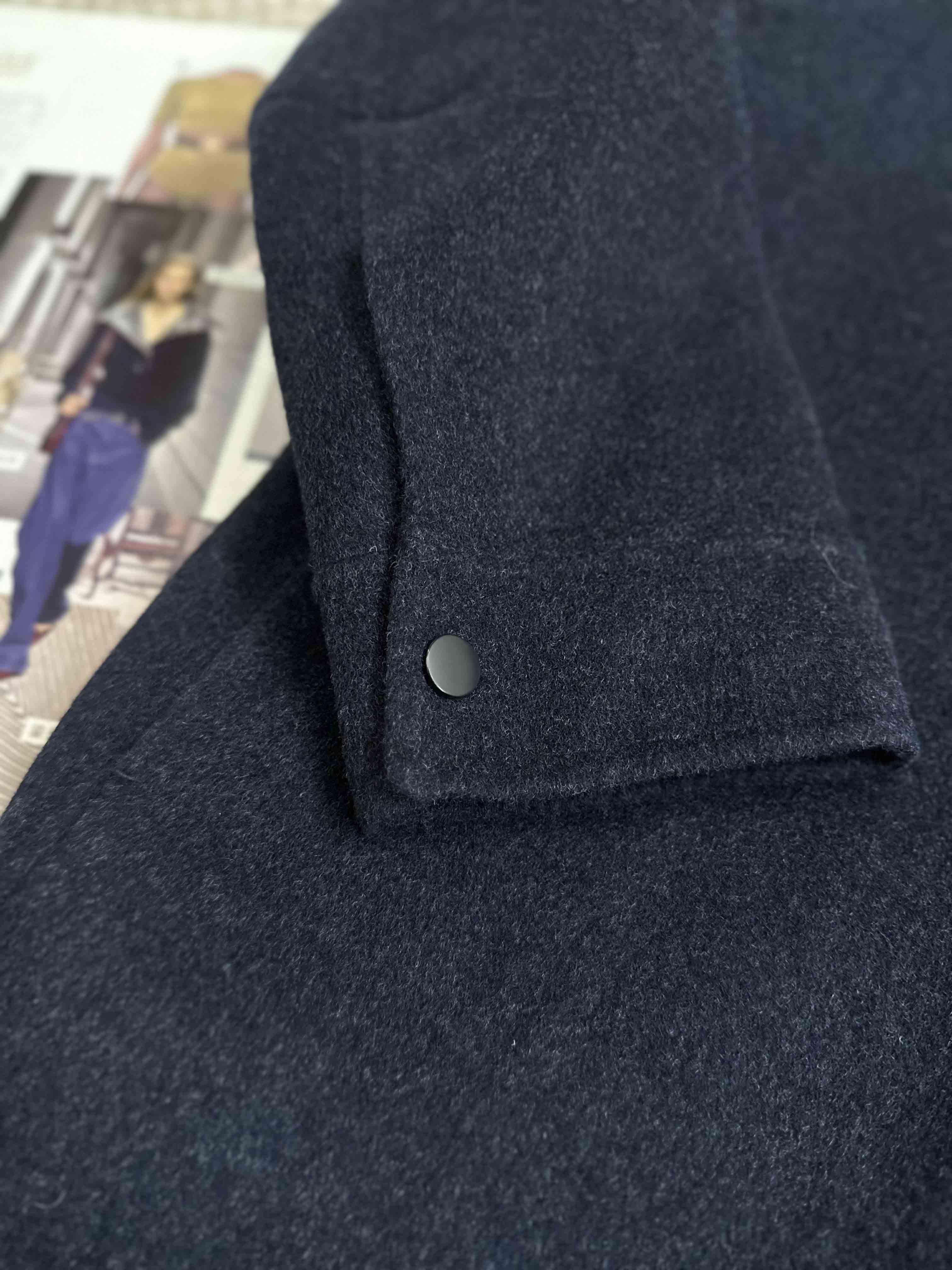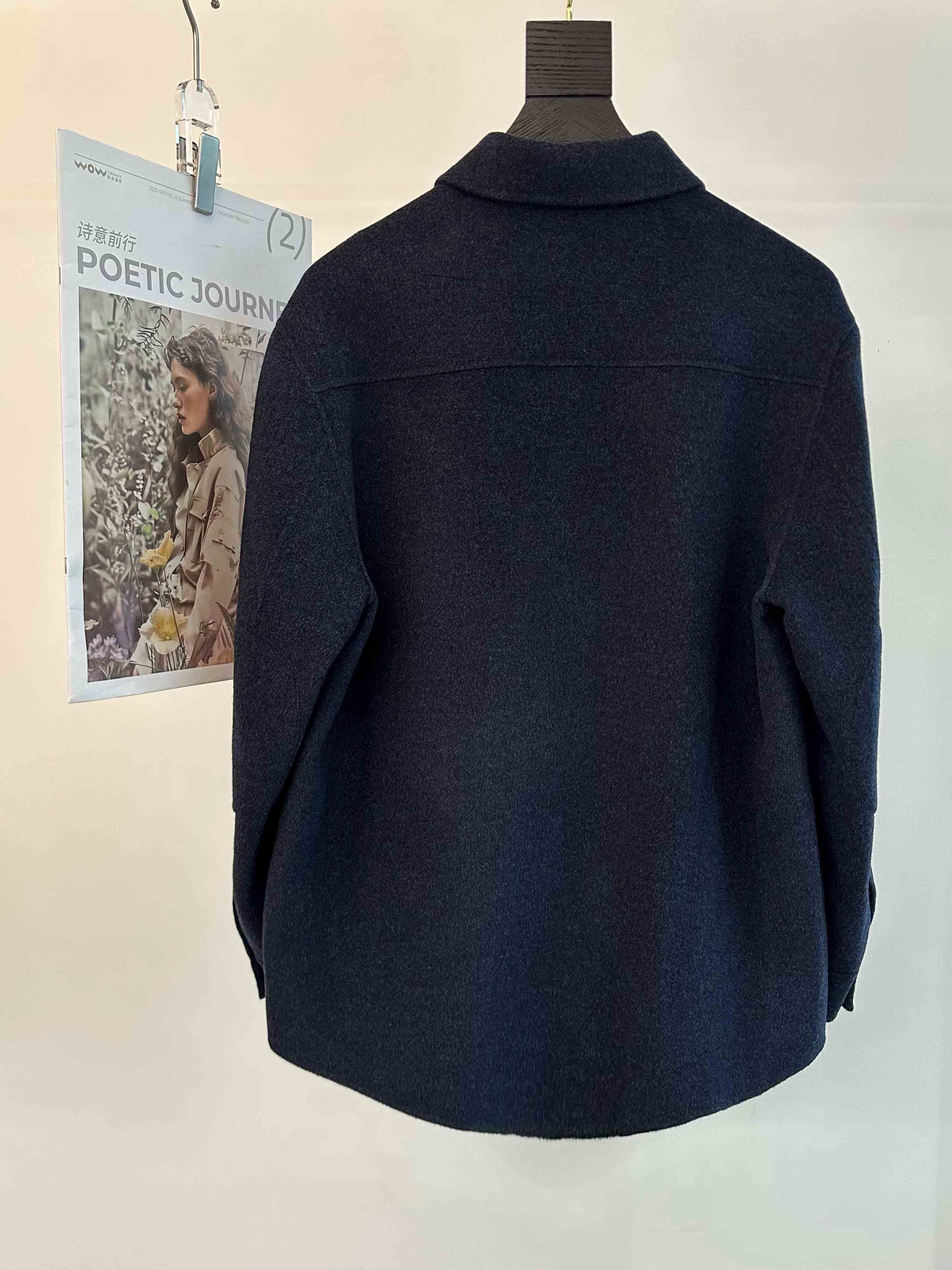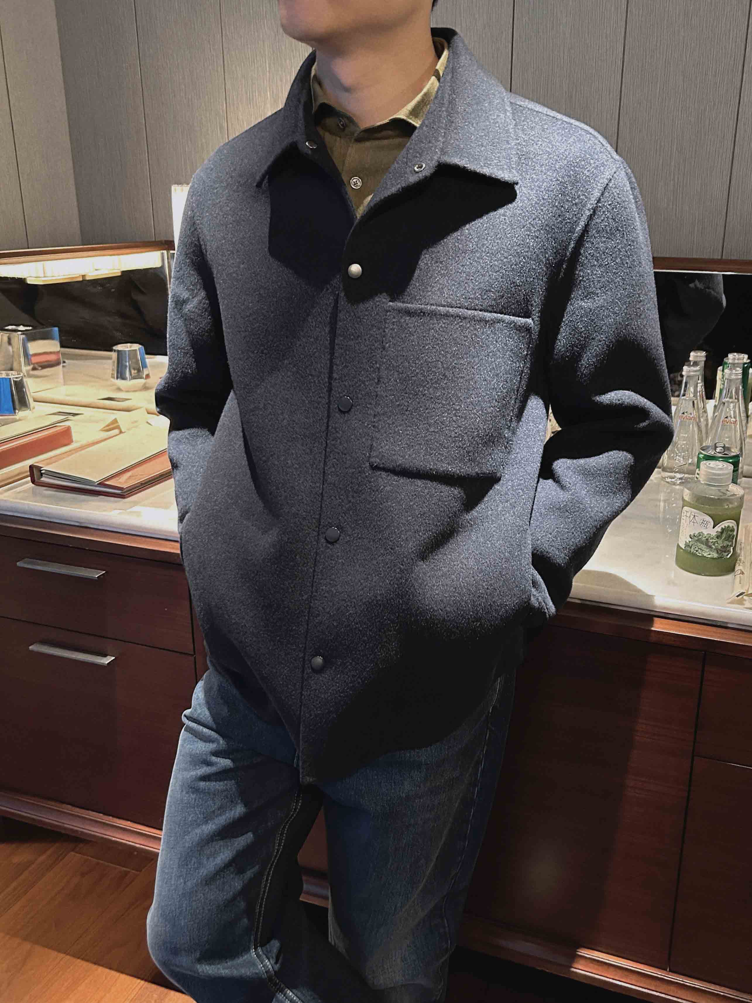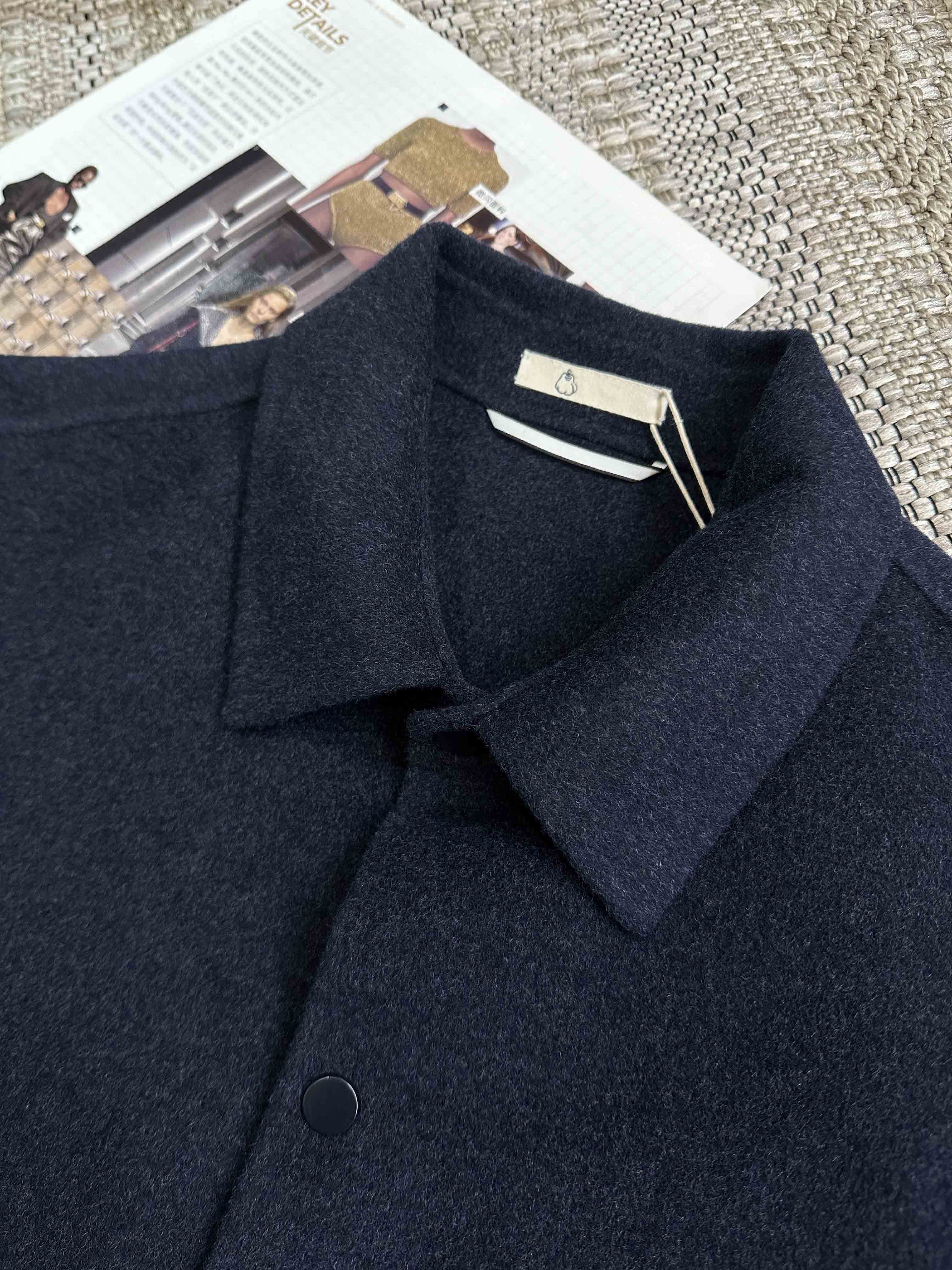 藏青色衬衫式呢子外套