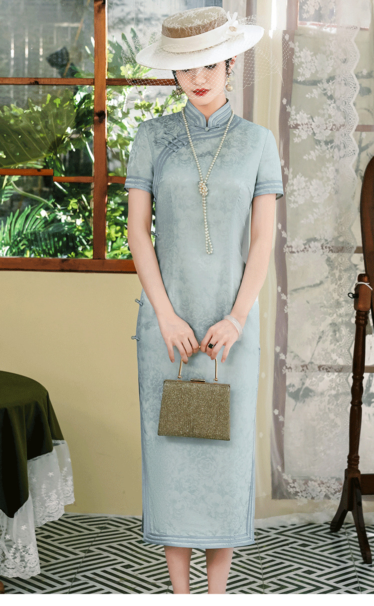 《浮雪》清新双色年轻款改良收腰冬季旗袍,减龄少女连衣裙LSB3381