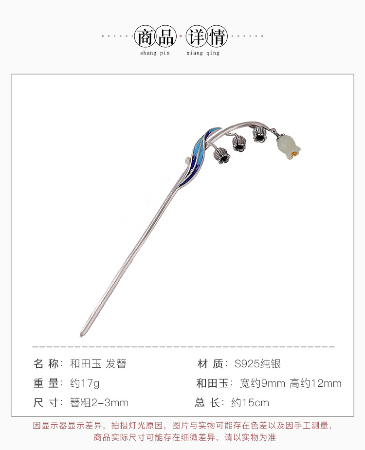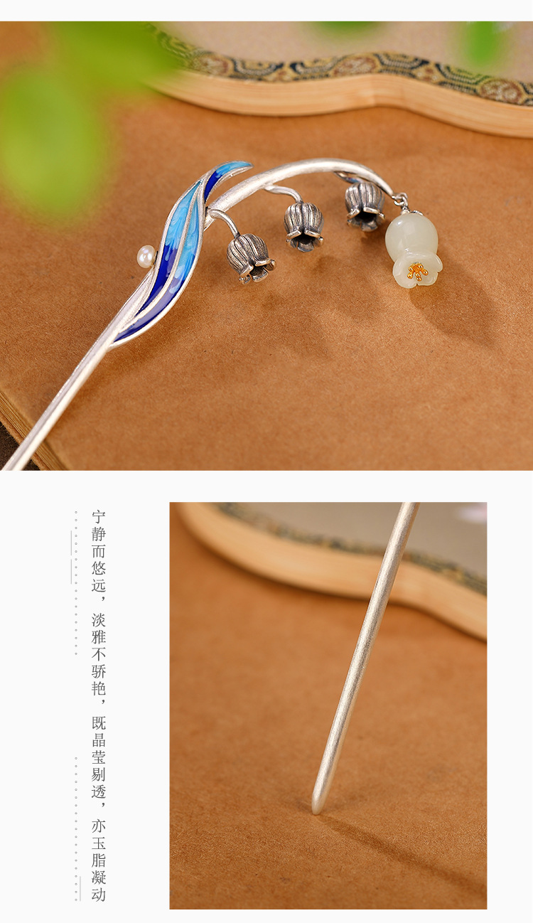 S925纯银景泰蓝和田玉,国潮风铃花古风发簪珐琅铃兰气质盘发CW-846