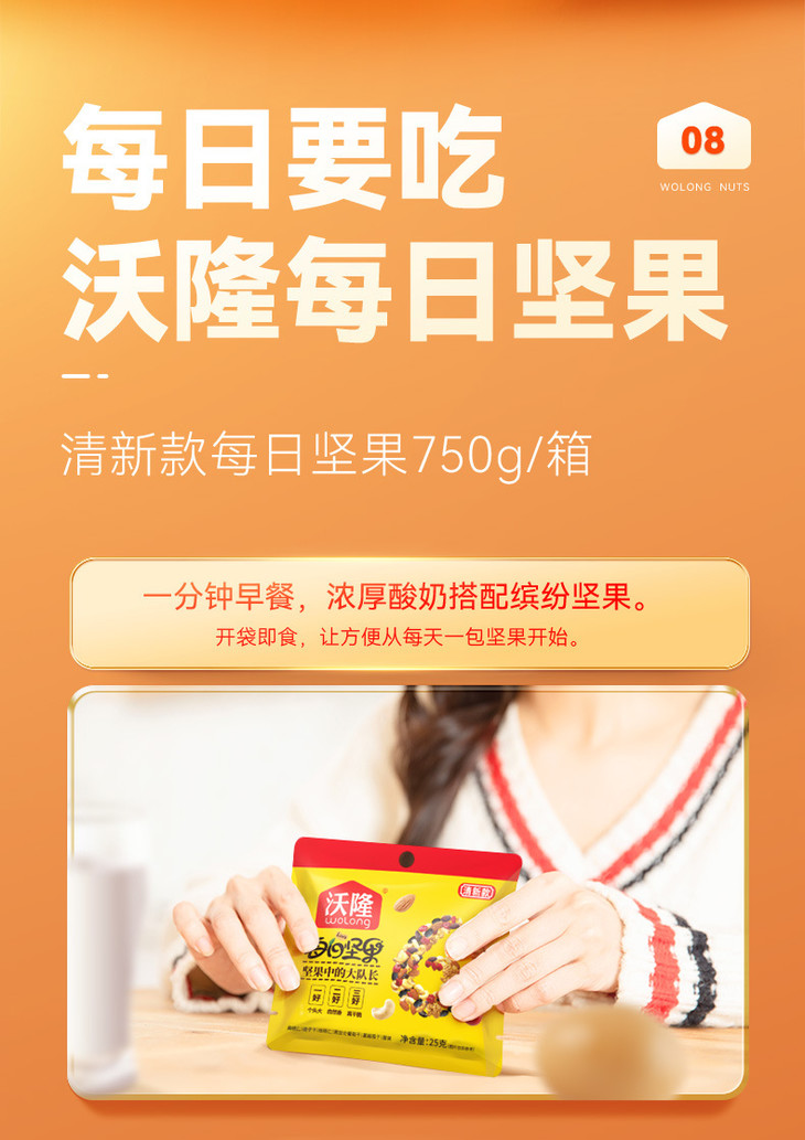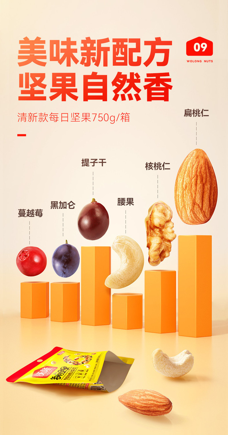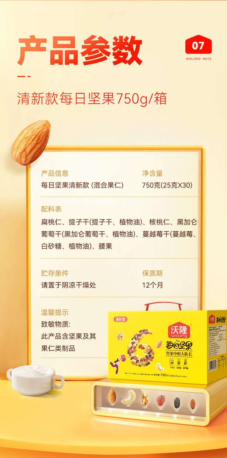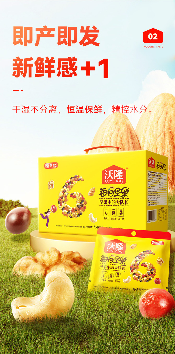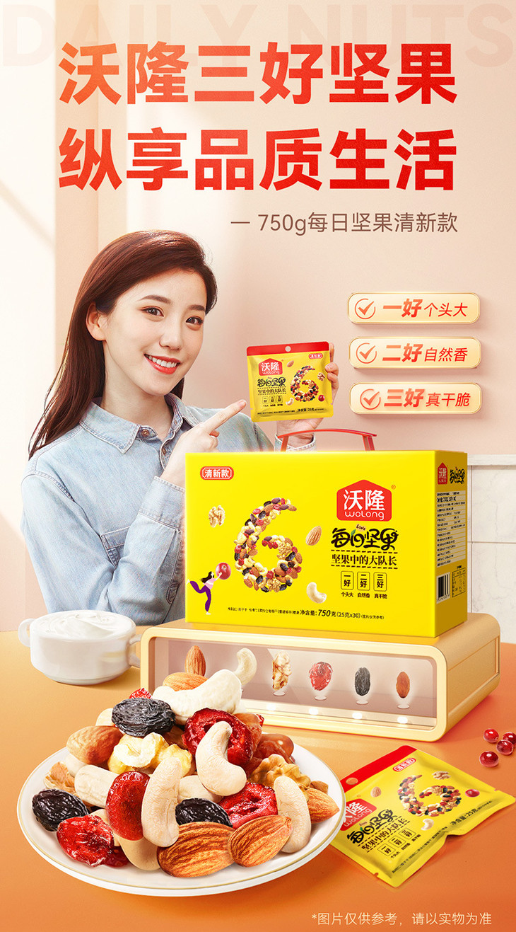 沃隆每日坚果750g清新款混合干果春节年货健康零食小吃礼盒