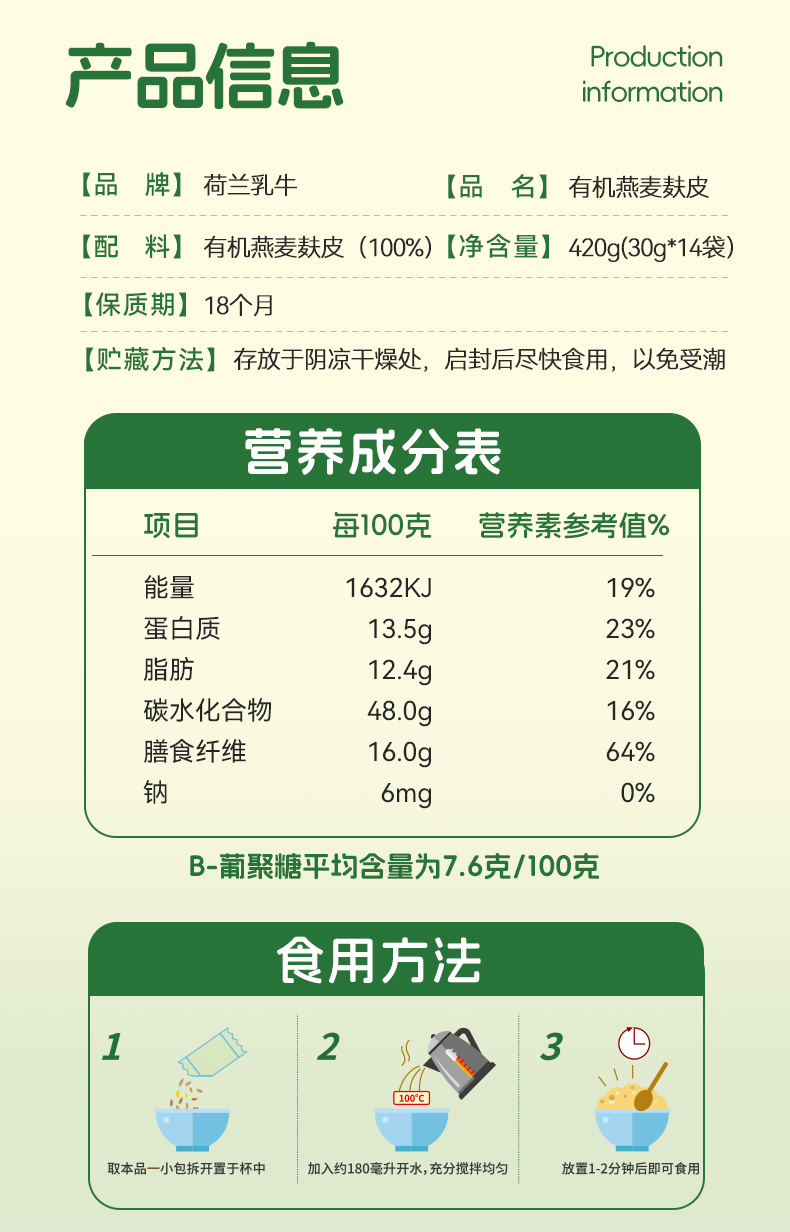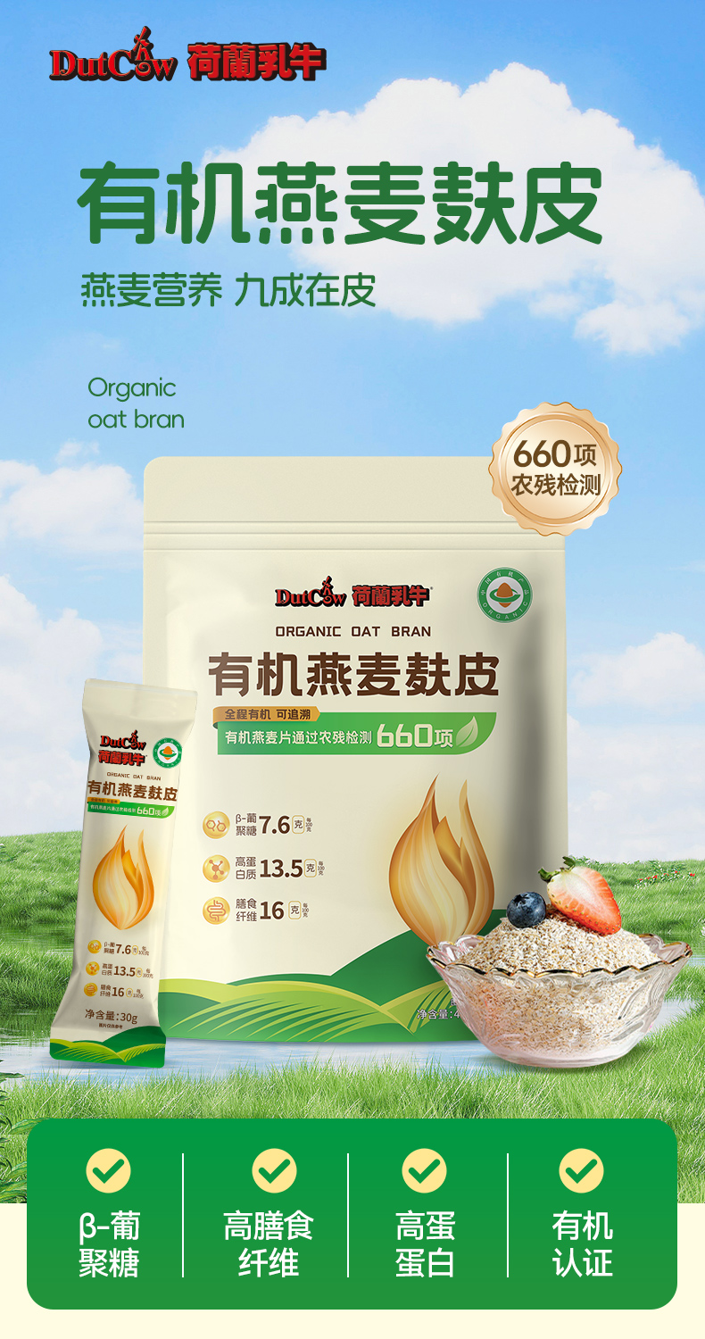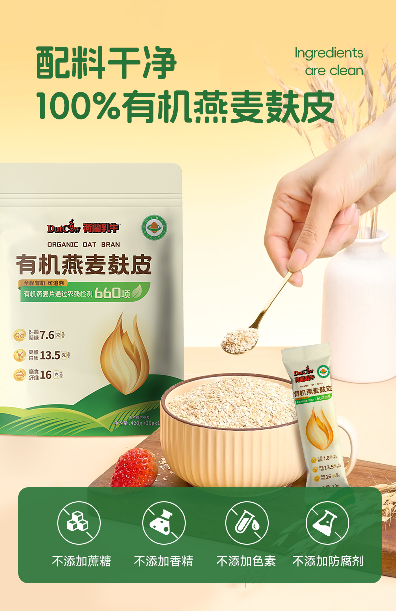 SY【限时秒杀】荷兰乳牛有机燕麦麸皮420g(30g*14)*2袋