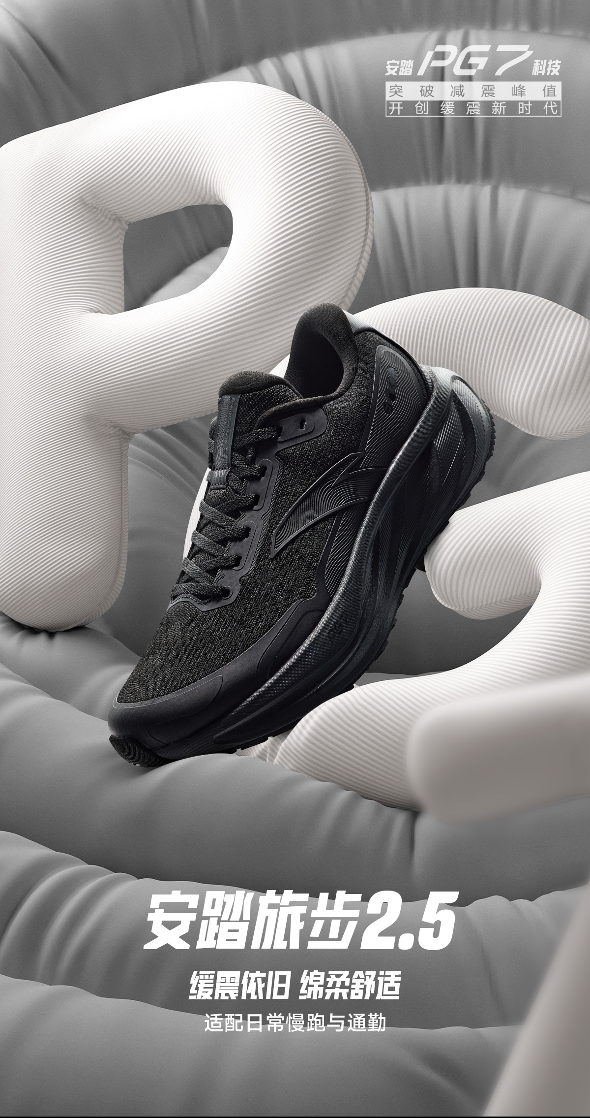 安踏旅步2.5丨PG7缓震耐磨皮面运动鞋男有氧慢跑跑步鞋112545545