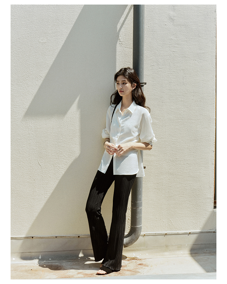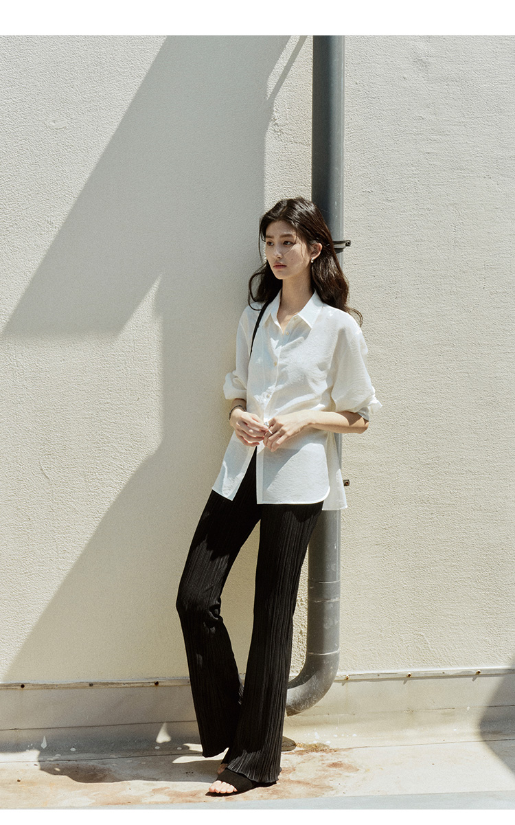 【现货】Even Vintage|丝光质感 柔顺百搭修身微喇垂感压褶长裤