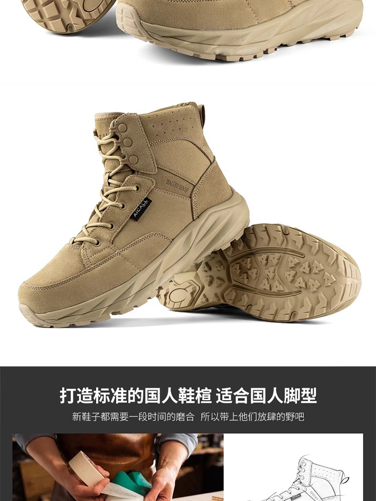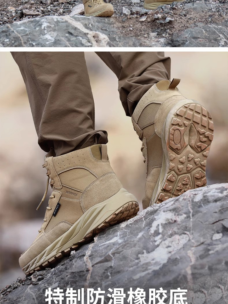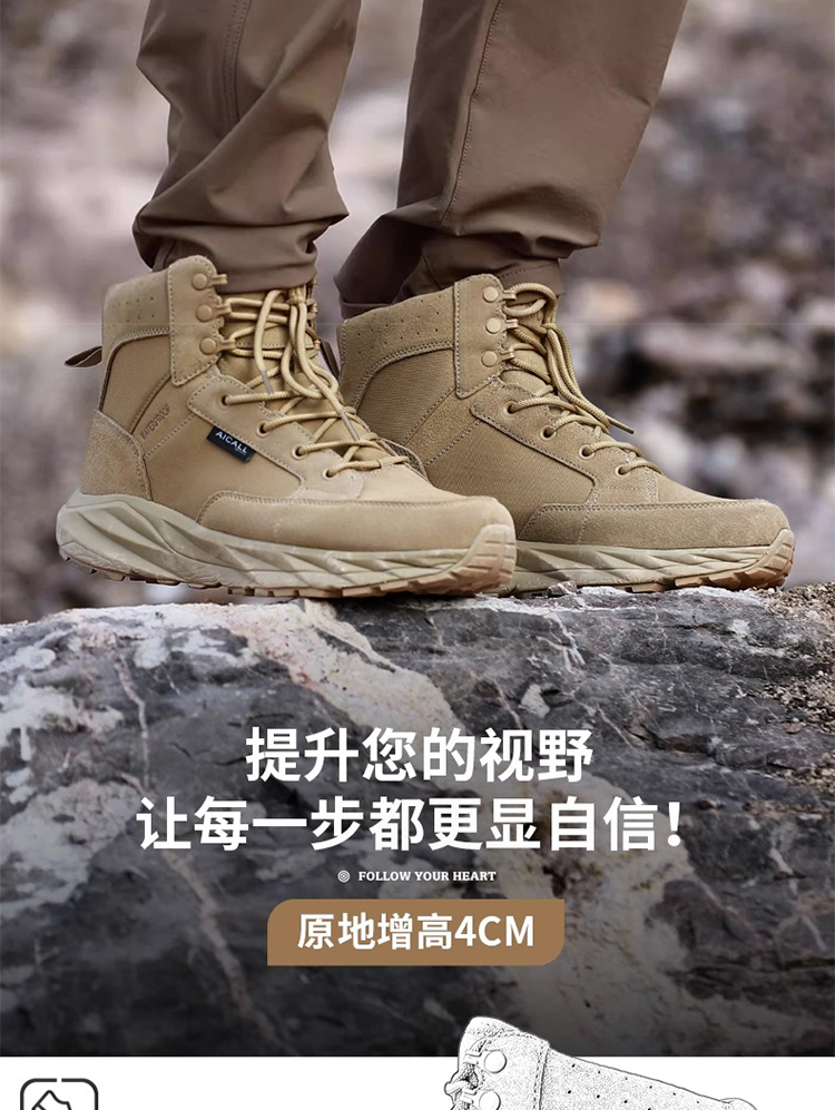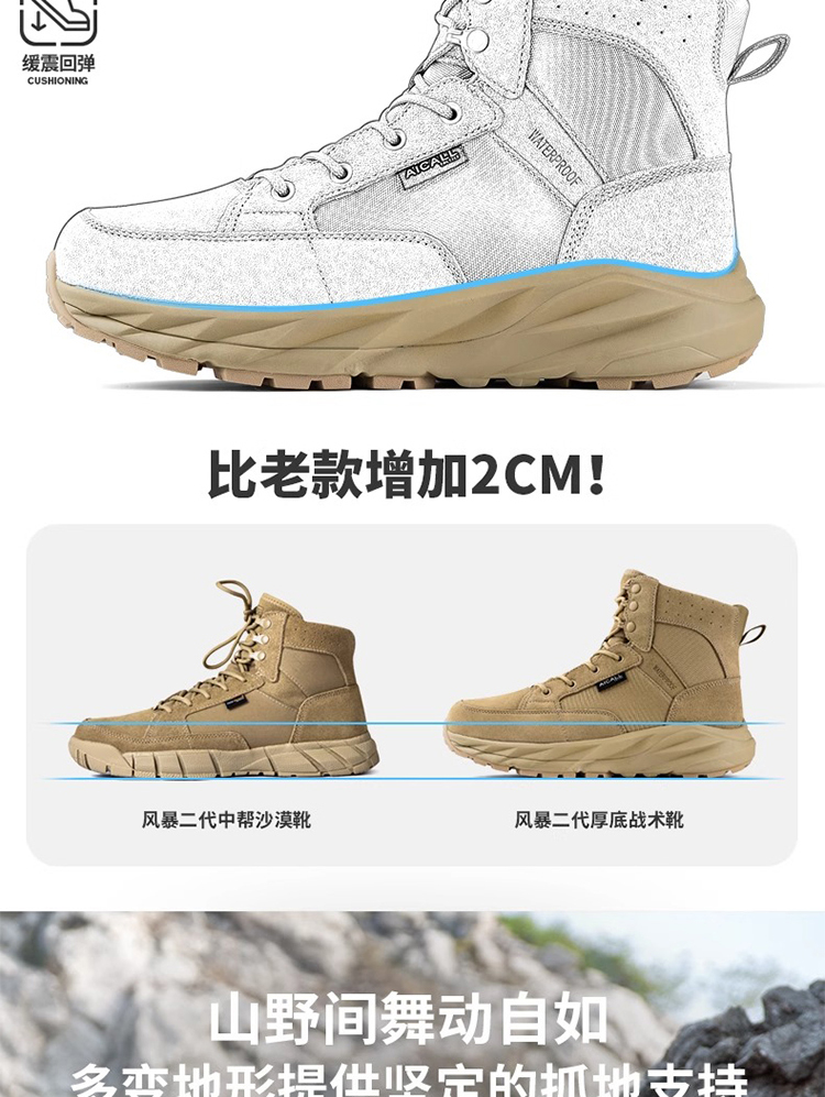 【抓地如钉 防泼水拒污 10万次耐曲折测试】风暴二代加厚底缓震战术靴(增高4cm减少前后脚掌落差)ds(zb)