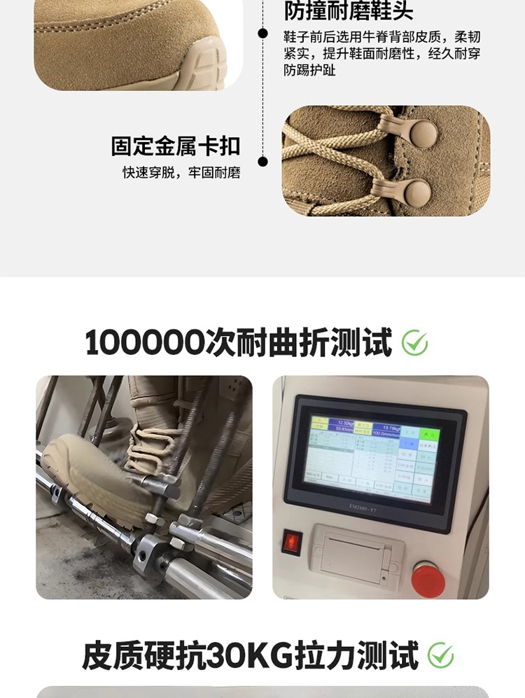 产品信息:翻毛牛皮+1000D涤纶牛津布+橡胶大底+EVA中底