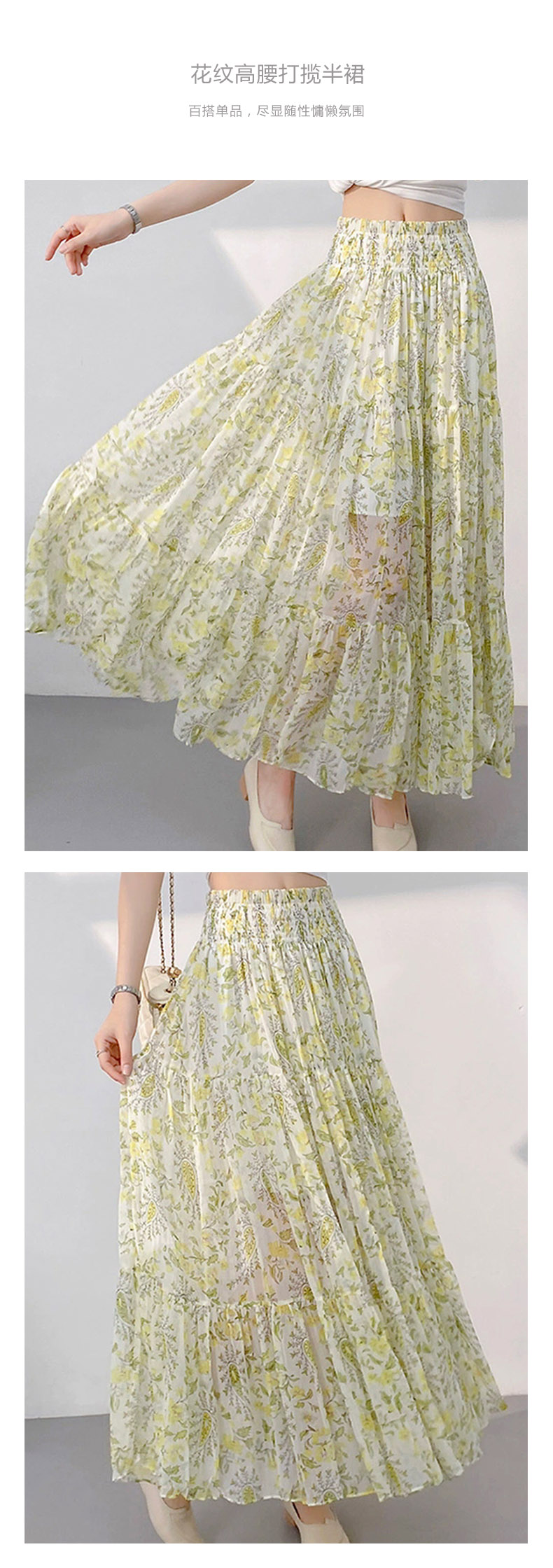 Y5X03BQ1396【钰米】高腰打揽大摆碎花半裙