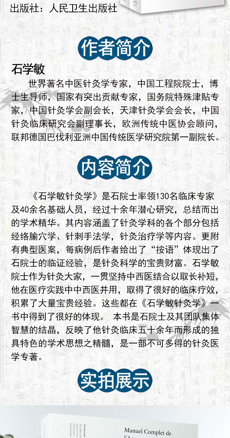 书名:Manuel Complet de l'Acupuncture et de la Moxibustion par Shi Xuemin 石学敏针灸学(法文)
