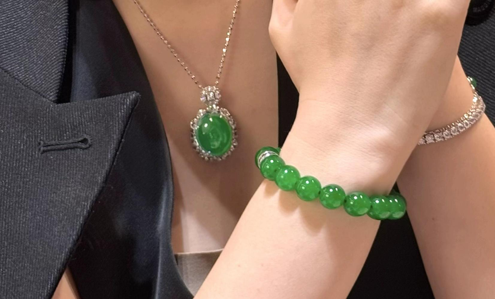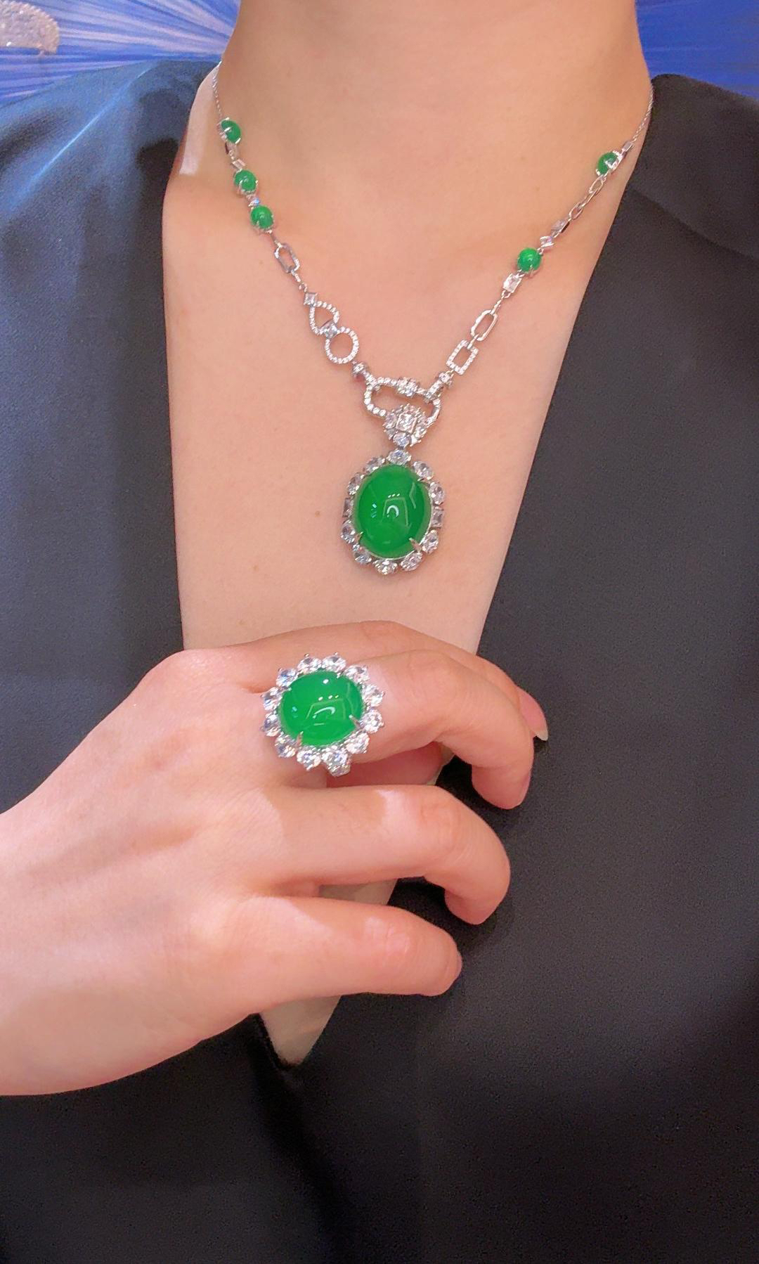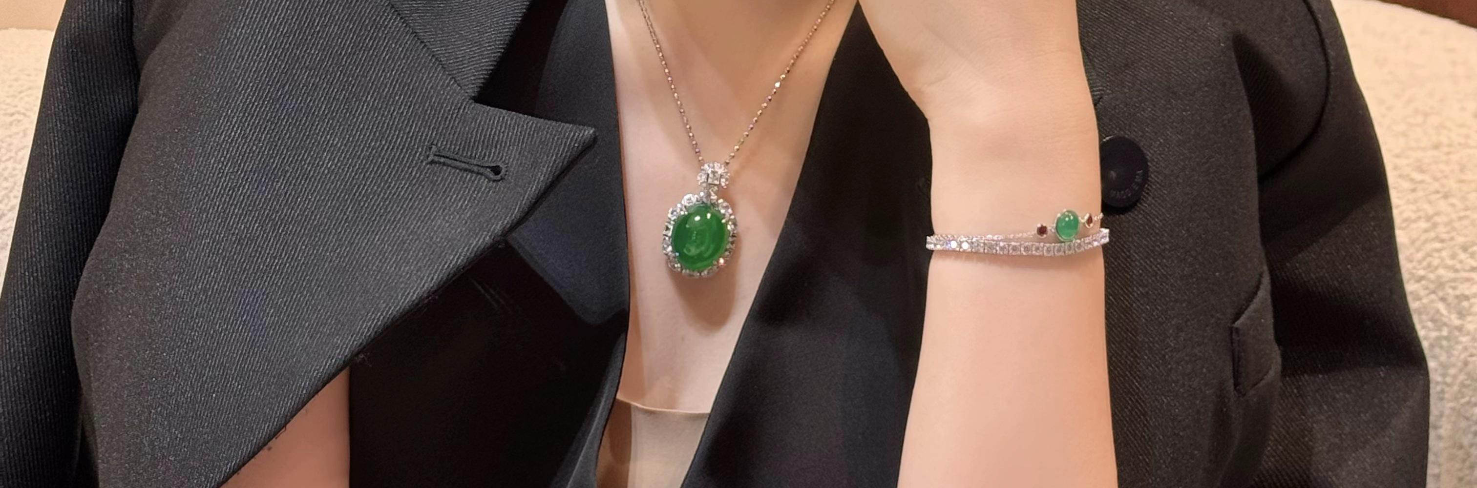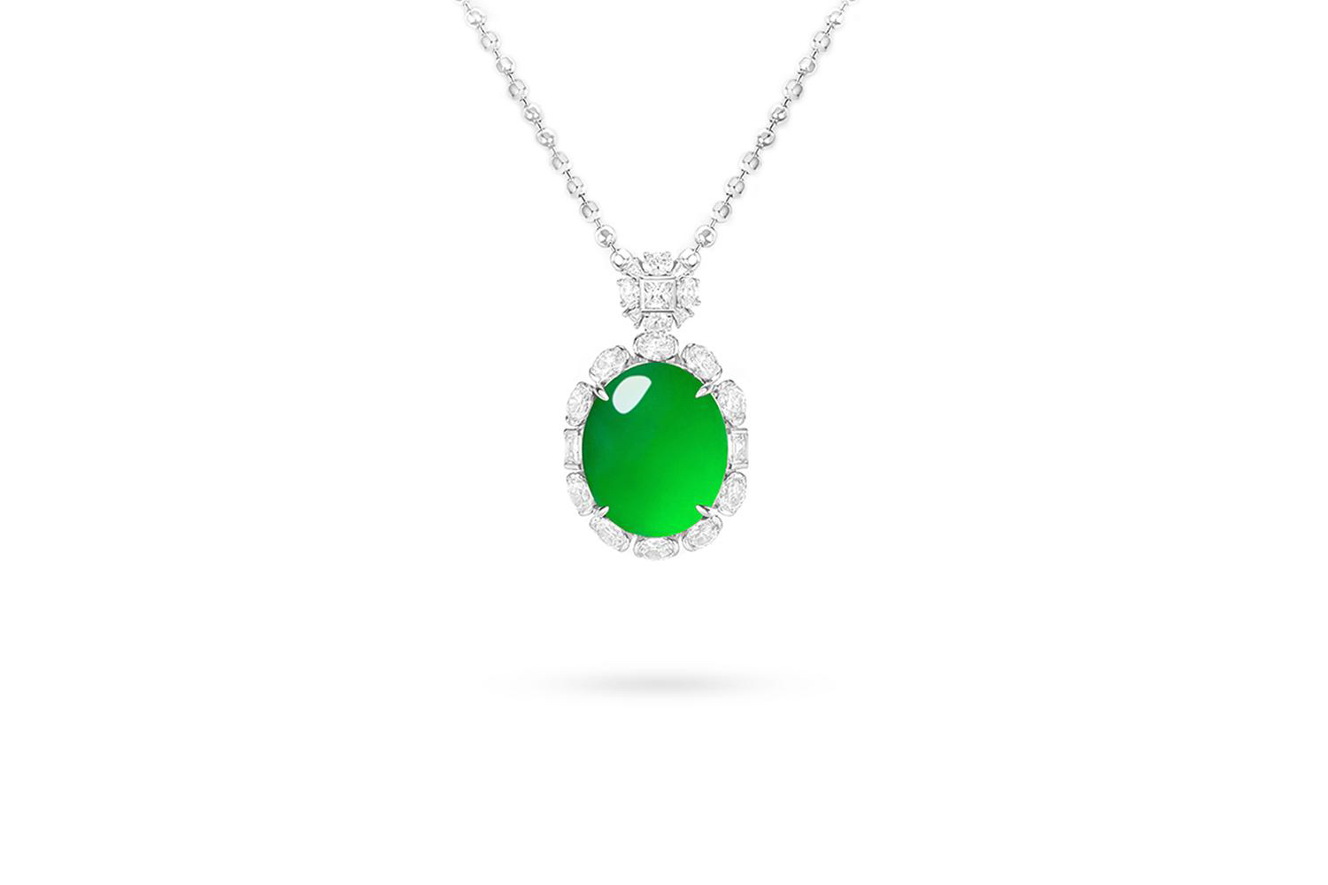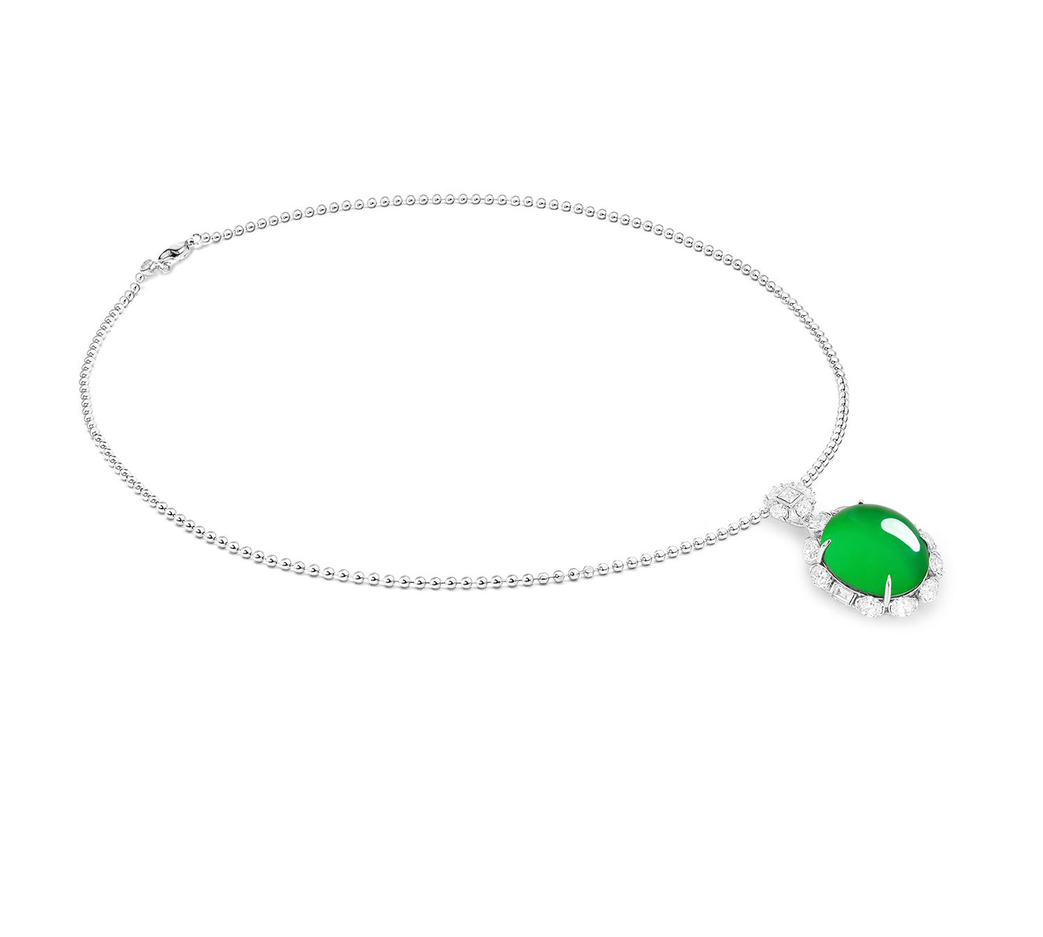 GAONAS 经典大气蛋面贵气录绿项链11427DG
