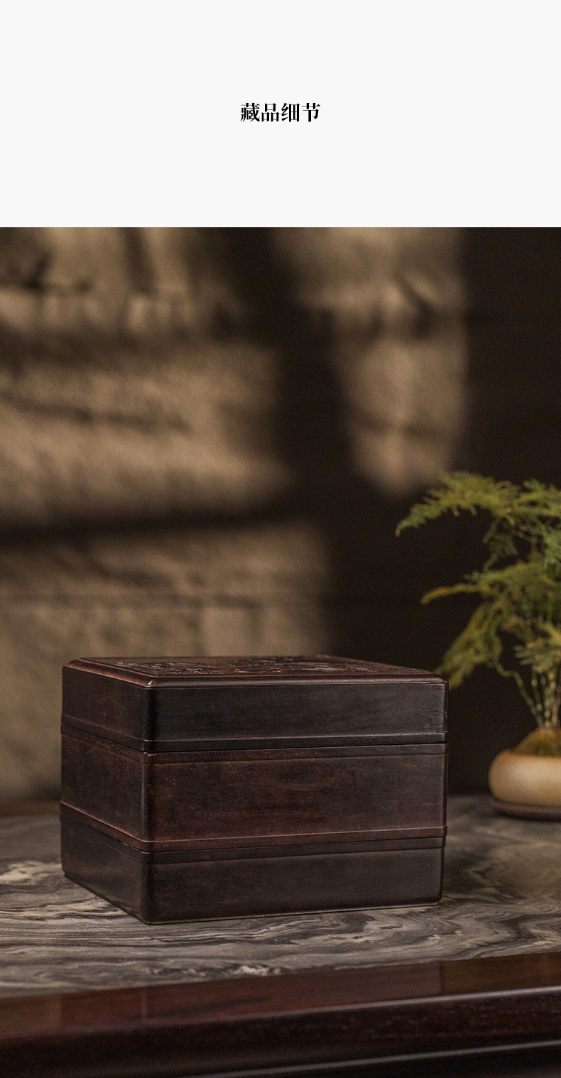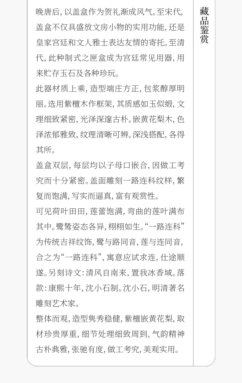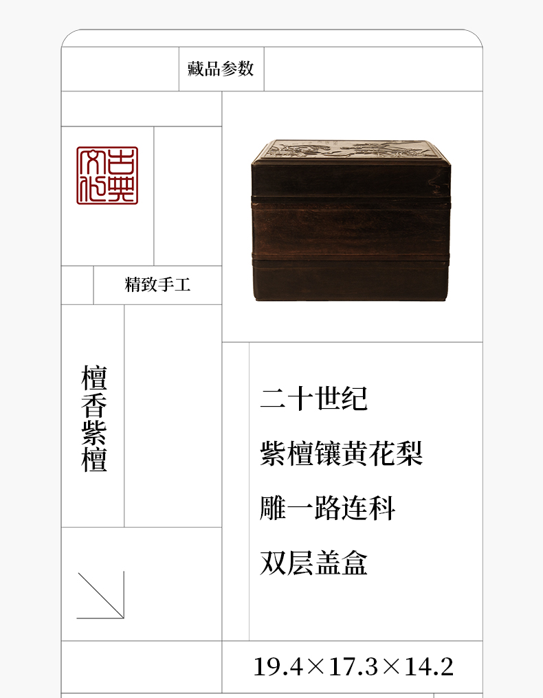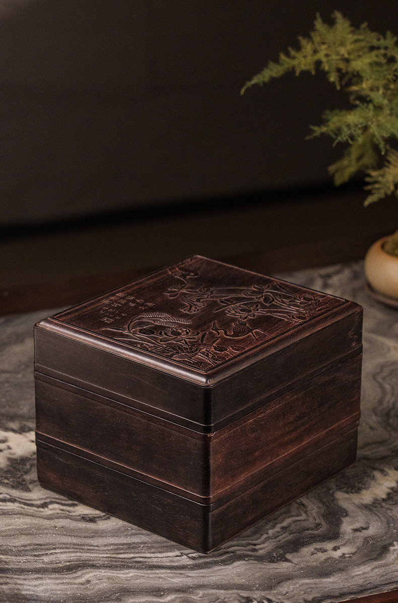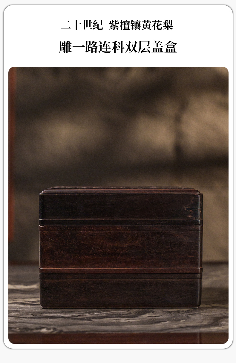 二十世纪 紫檀镶黄花梨雕一路连科双层盖盒