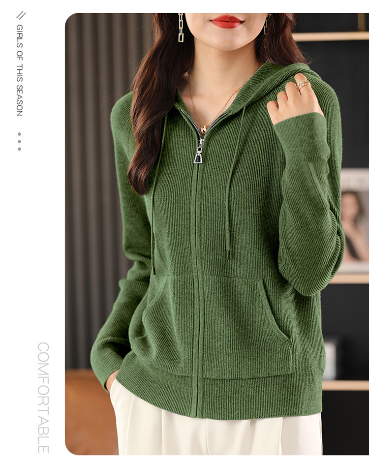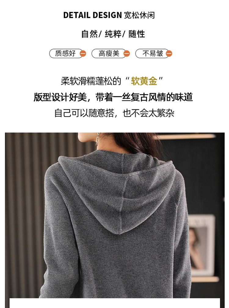 百媚生 针织衫带帽卫衣长袖外套JR-385