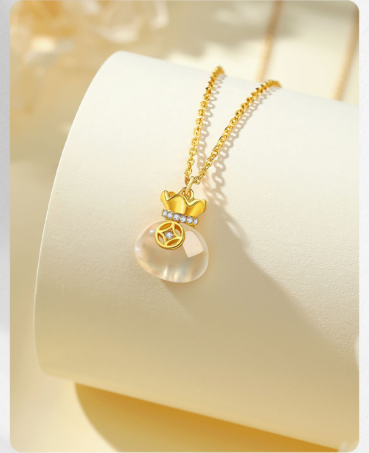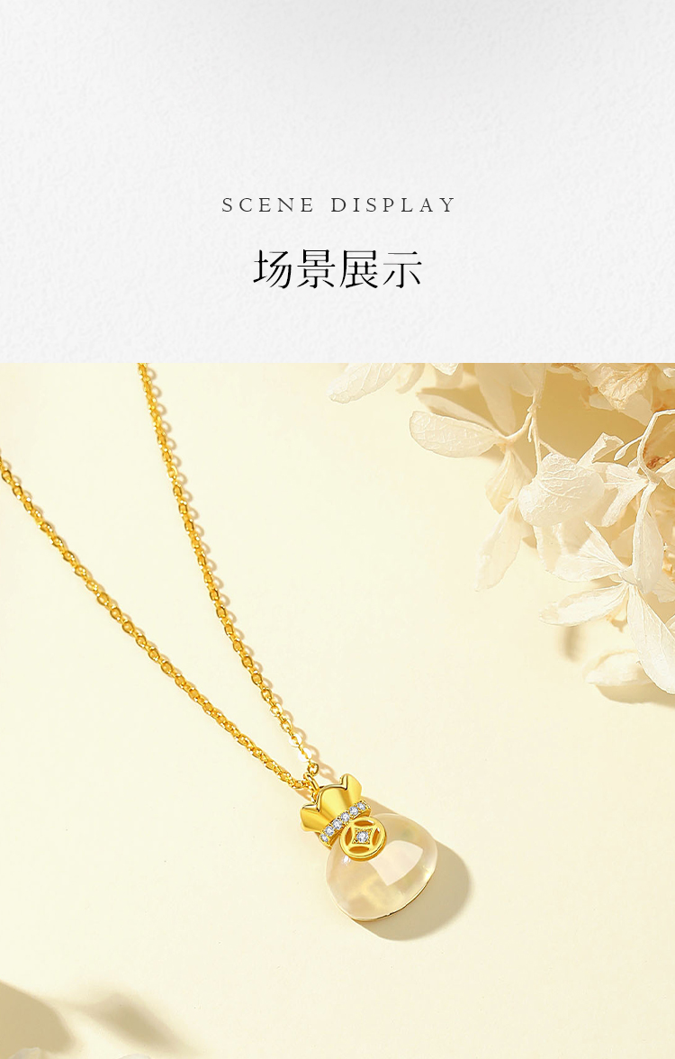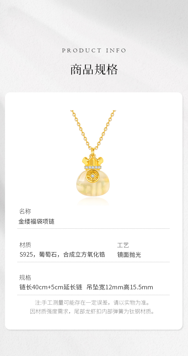 Winy S925 银镀金福袋项链 葡萄石合成立方氧化锆 跨年礼物带证书
