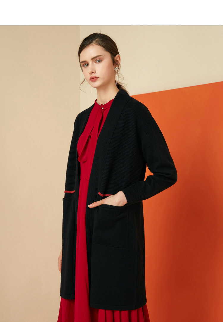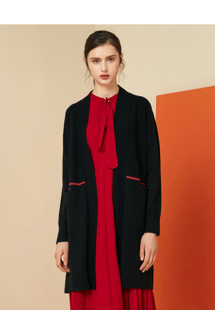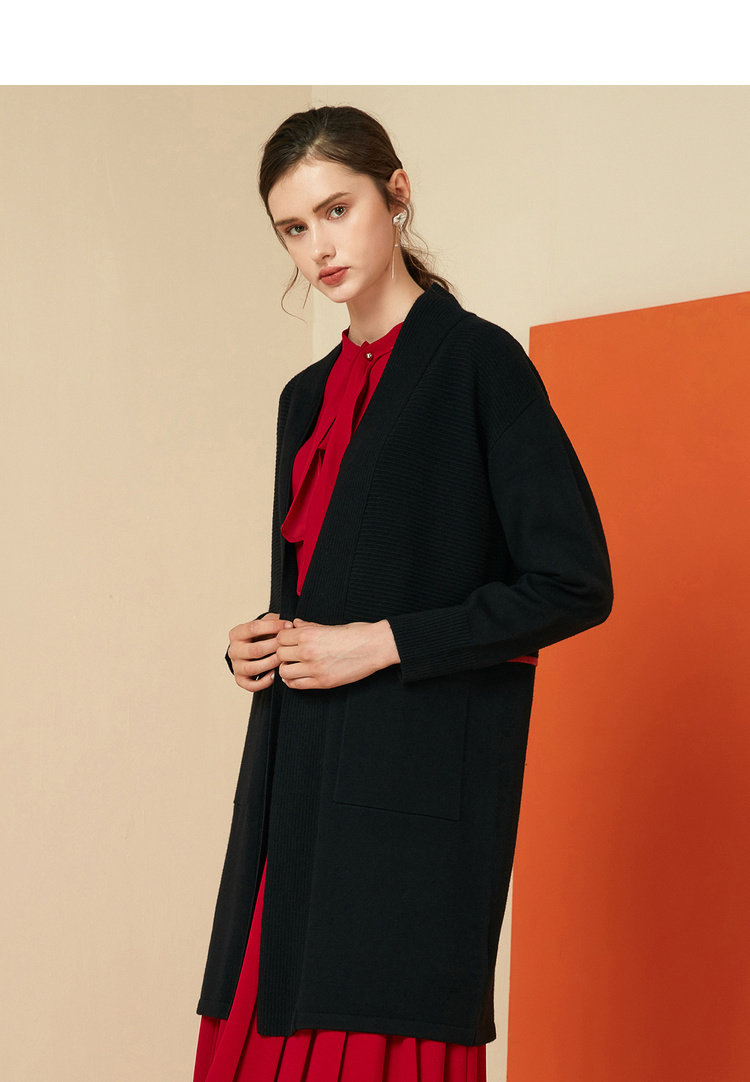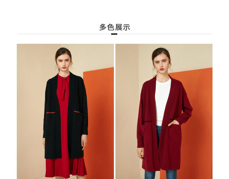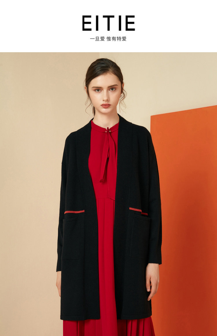 EITIE爱特爱女装秋冬宽松百搭显瘦针织衫开衫外套中长款6001721