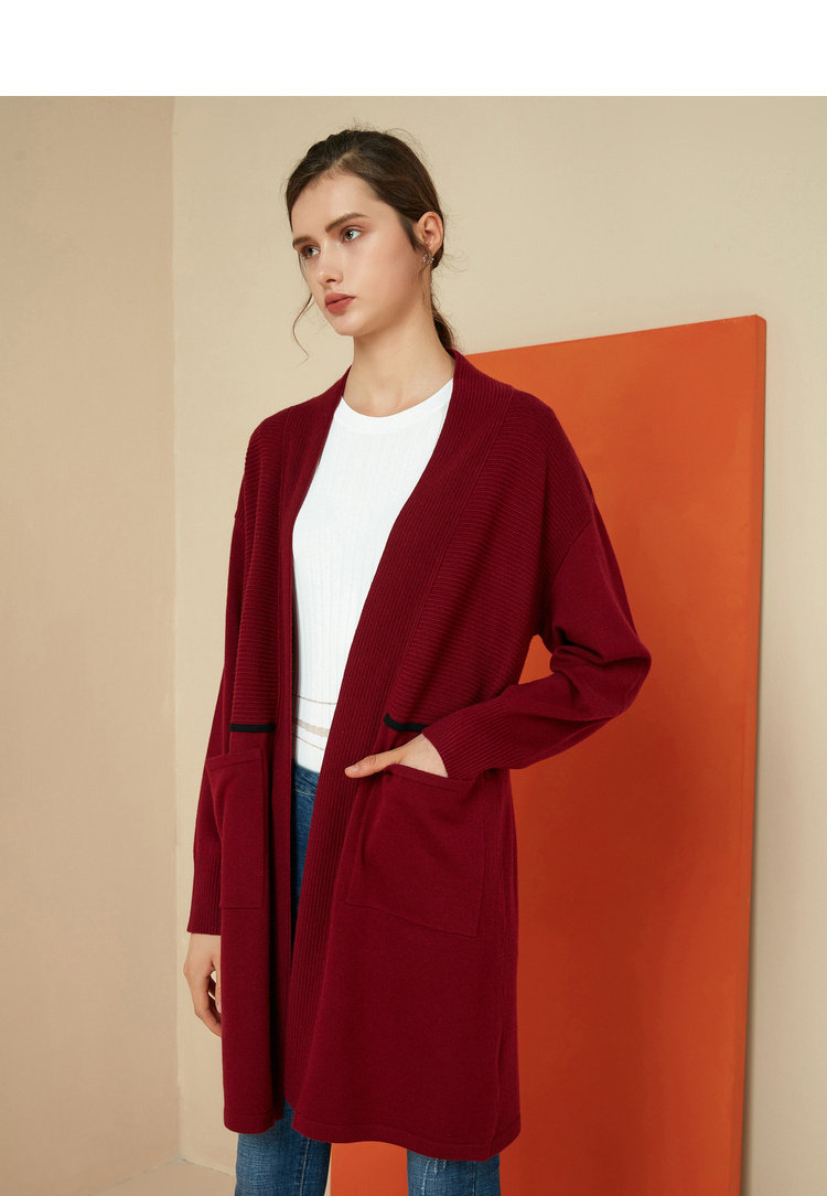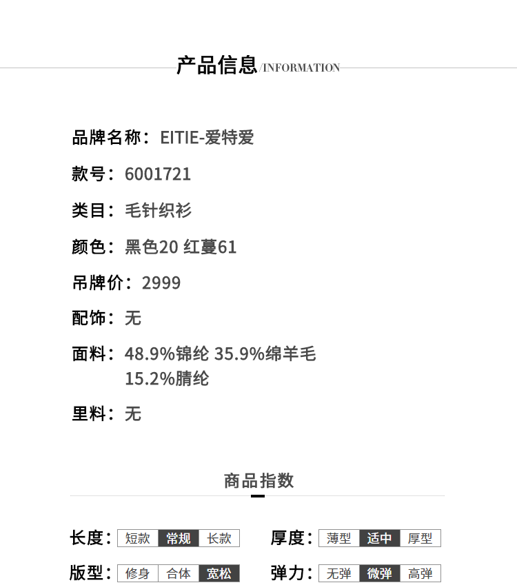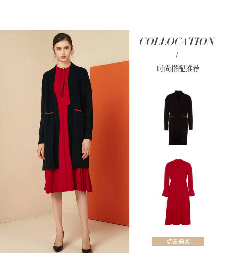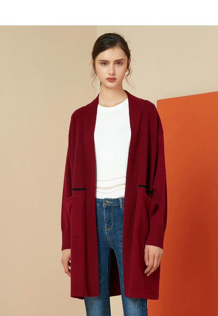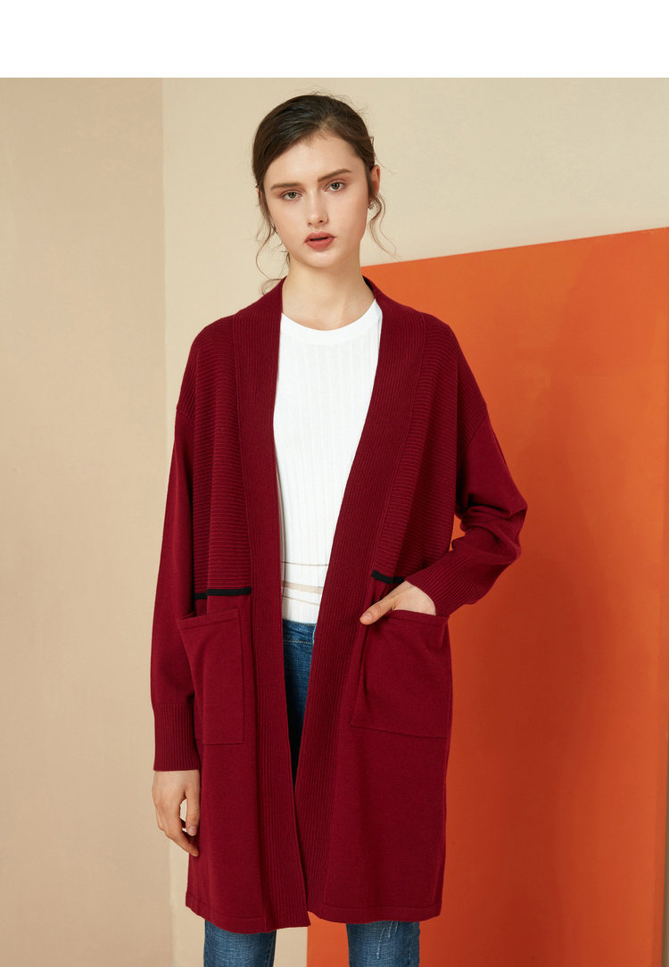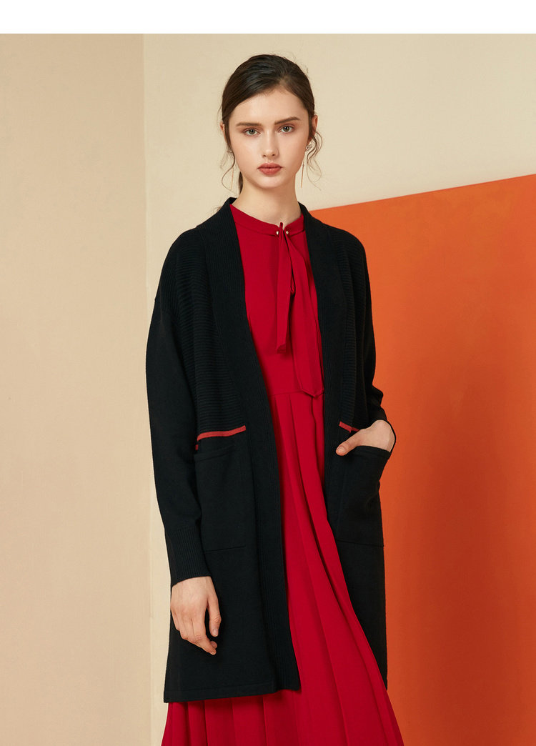 EITIE爱特爱女装秋冬宽松百搭显瘦针织衫开衫外套中长款6001721