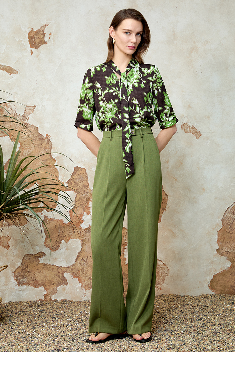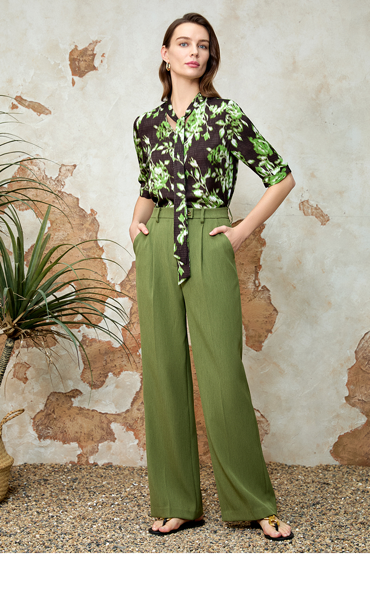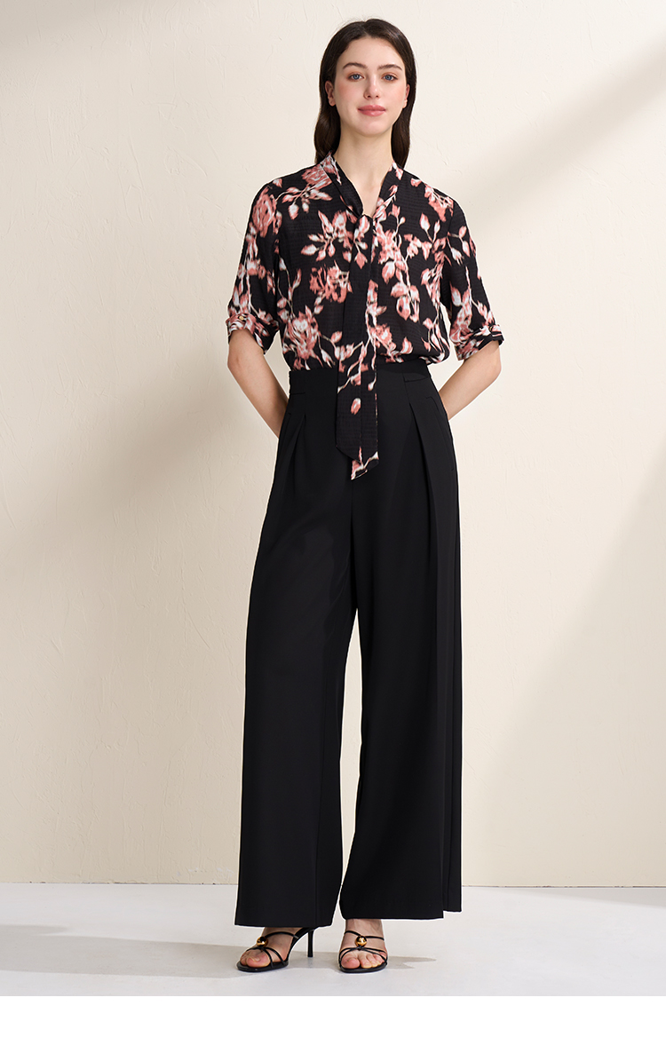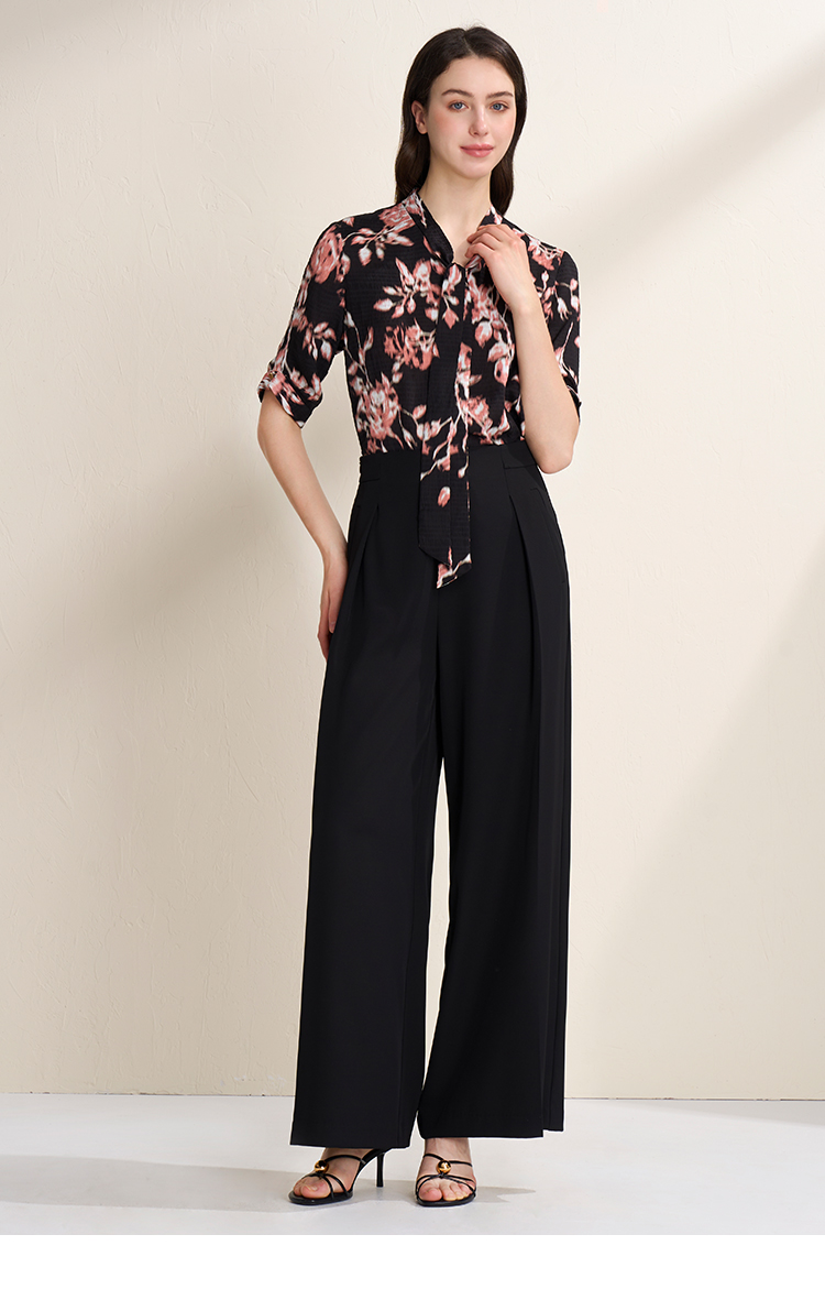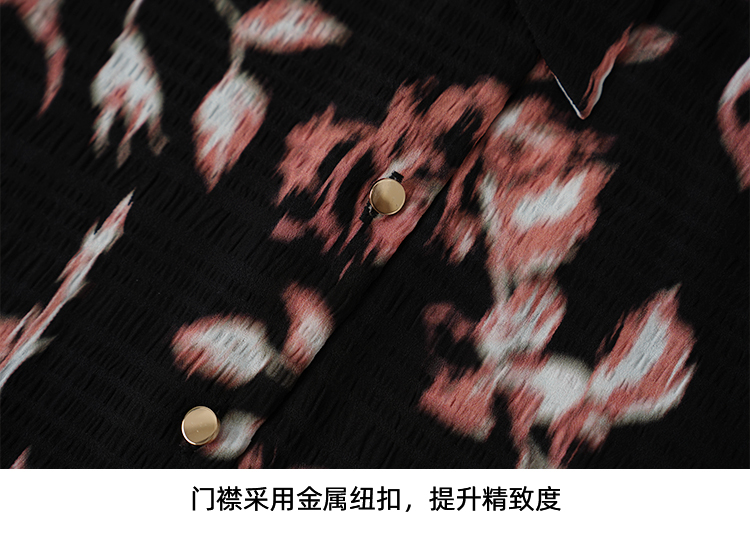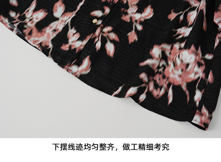 EITIE爱特爱复古飘带V领气质优雅印花中袖衬衫春季新款8109804