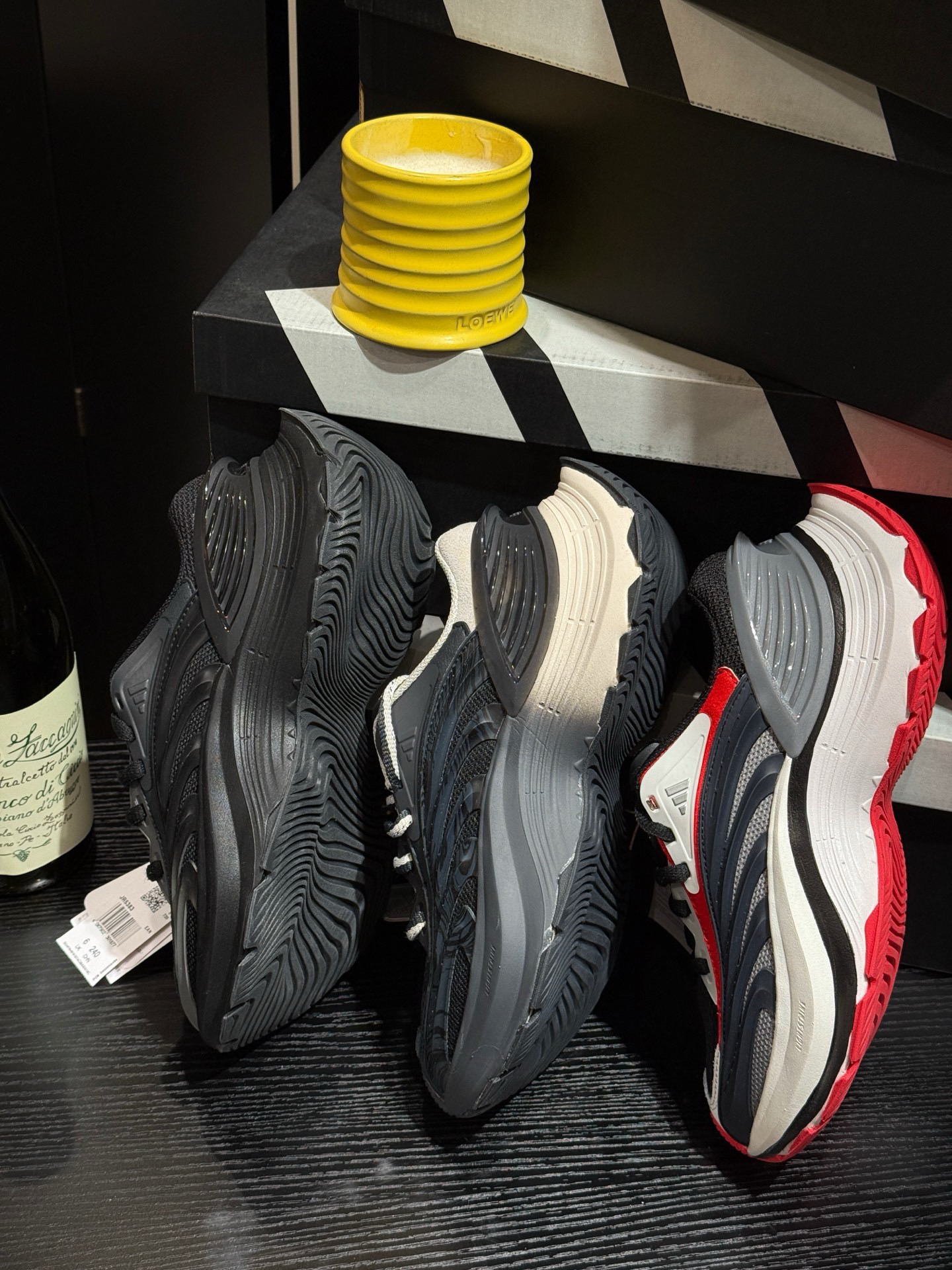 鞋身流线型设计 夸张厚度的上翘后跟加上侧面的脉冲感条纹 极具视觉冲击力