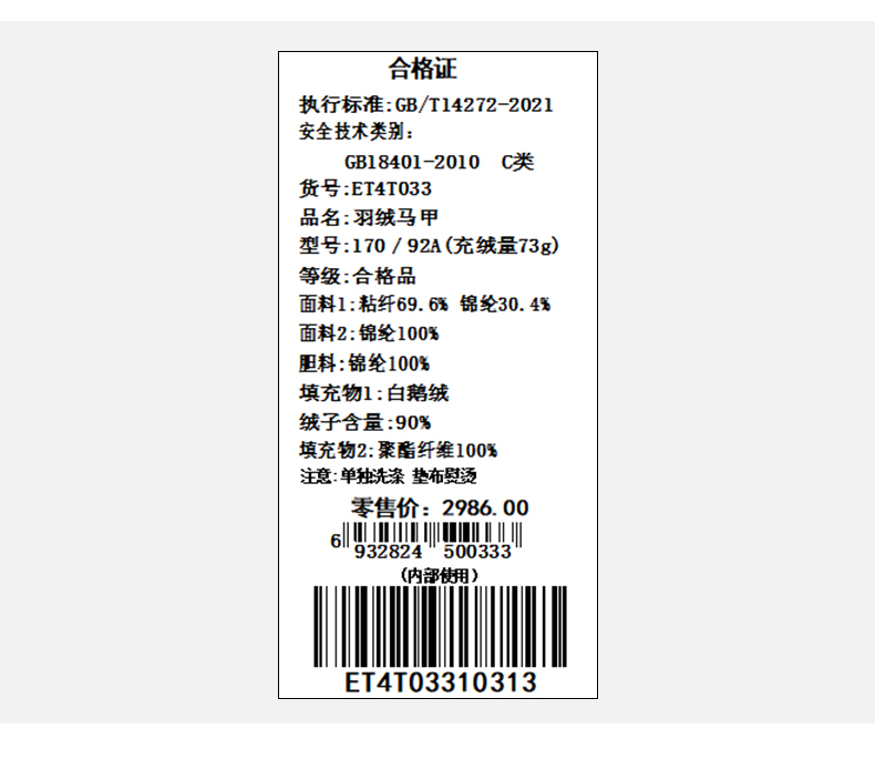 乔万尼时尚小香风羽绒服马甲两面可穿ET4T033