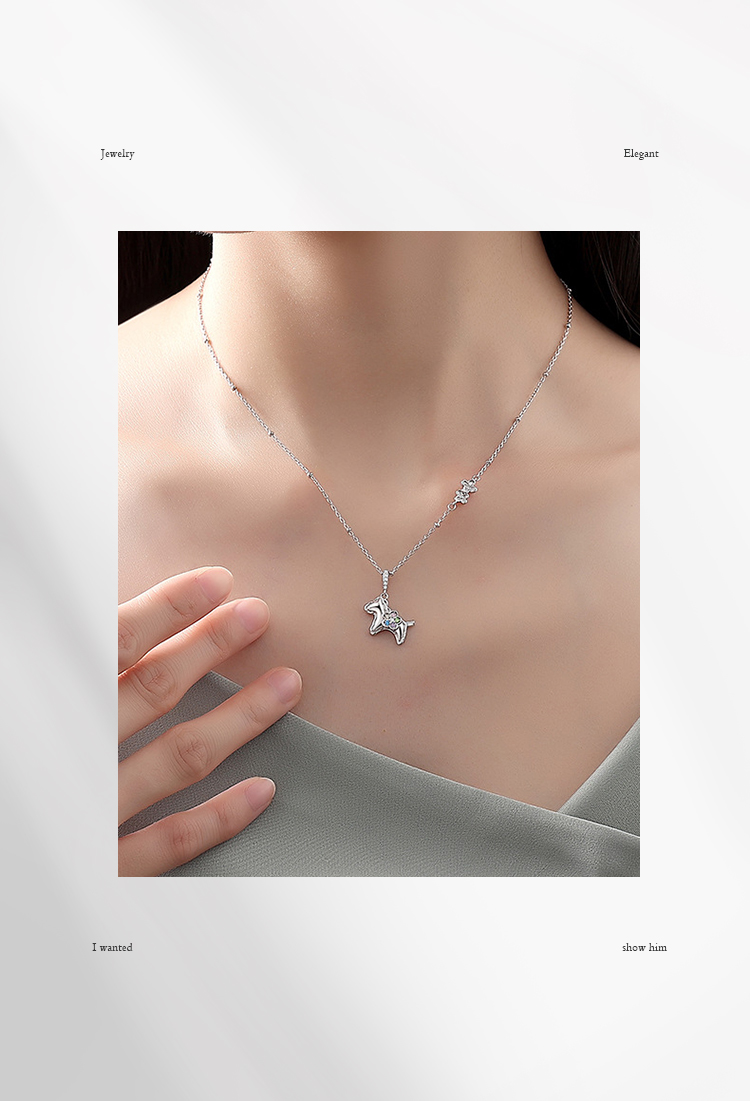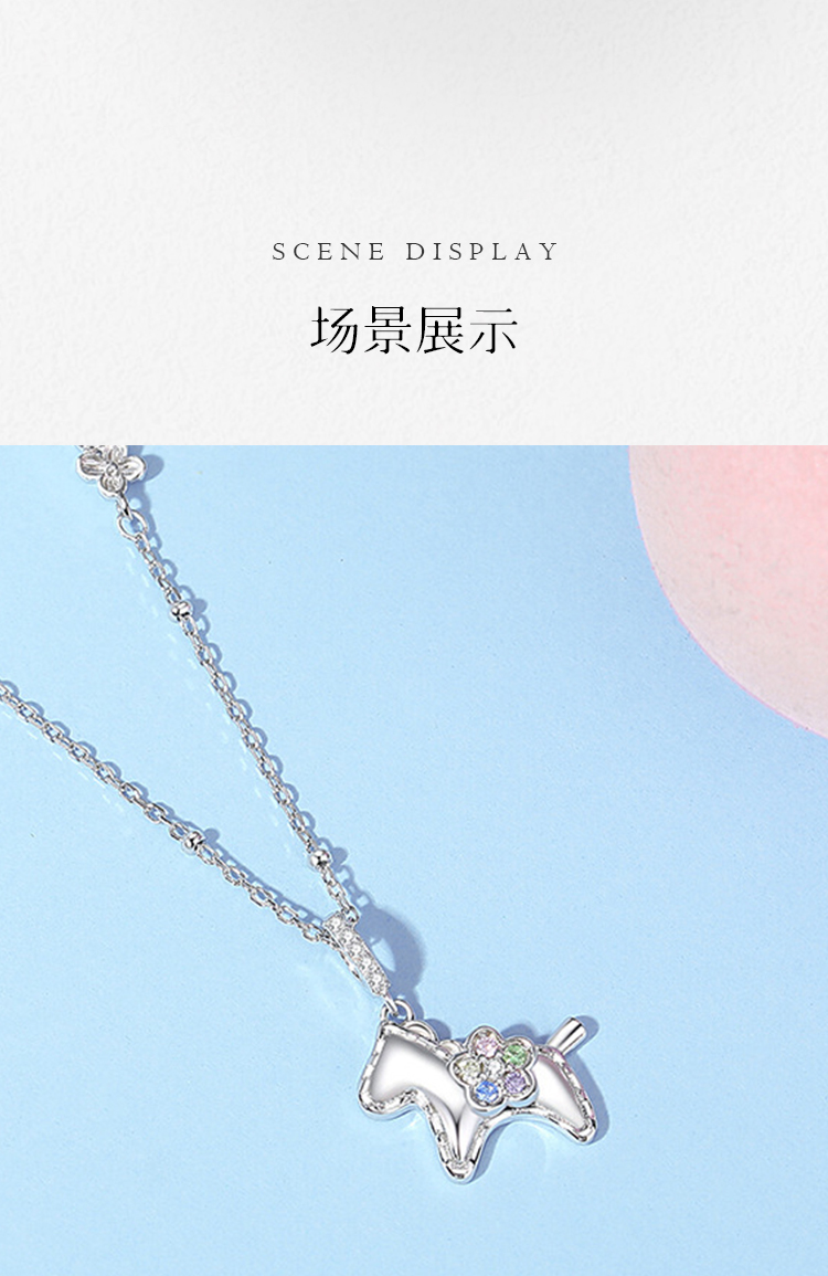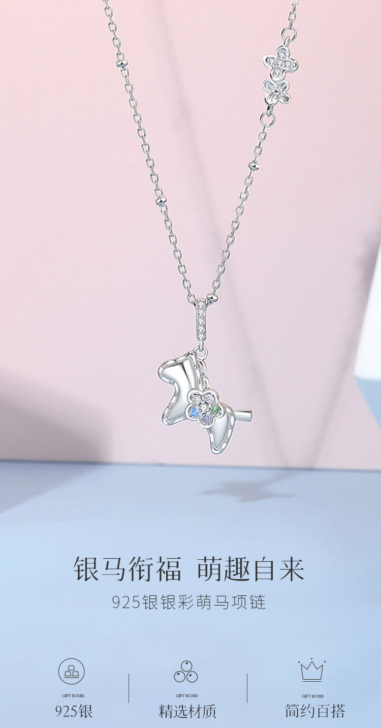 Winy S925 银萌马项链女 2026马上有钱花彩锆吊坠锁骨链本命年礼物轻奢银饰