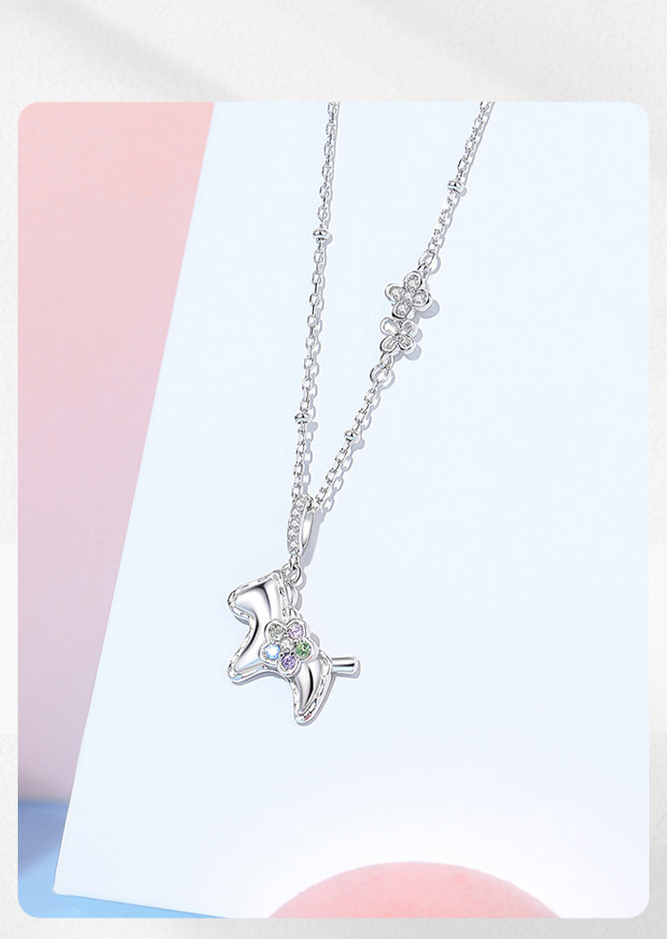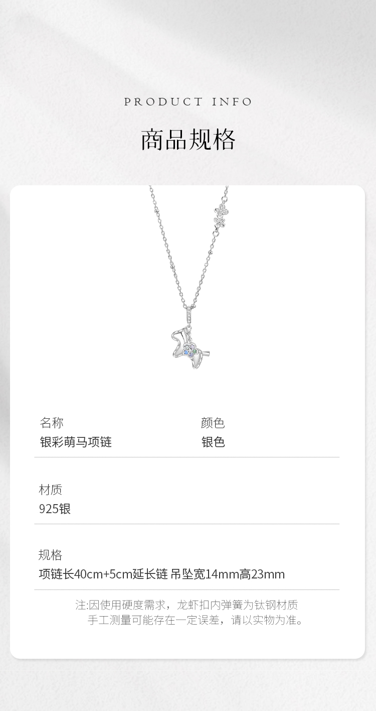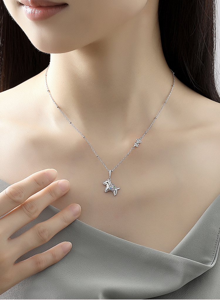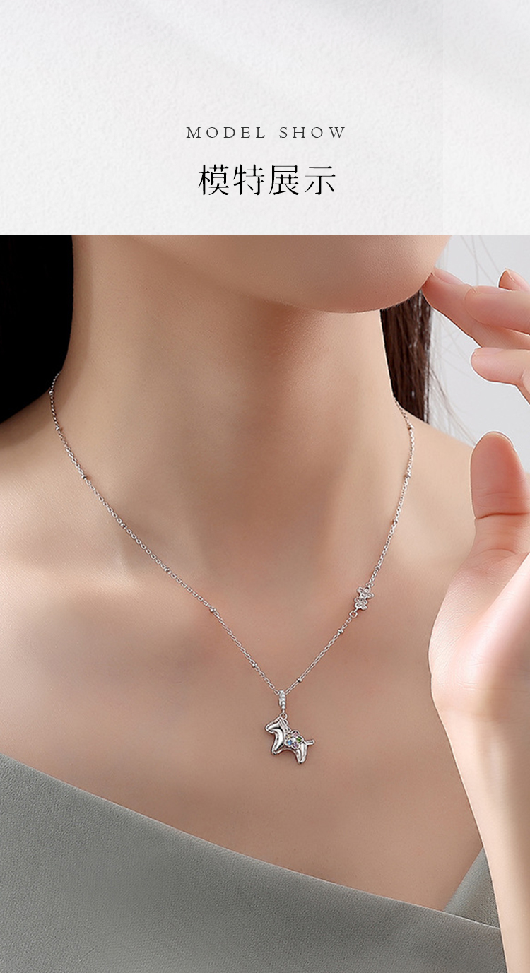 Winy S925 银萌马项链女 2026马上有钱花彩锆吊坠锁骨链本命年礼物轻奢银饰