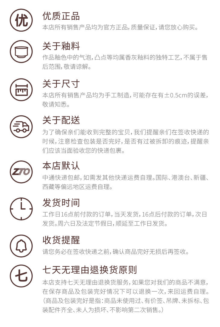 所有作品均为匠心手作,尺寸及釉色均略有差异,商品图片由于灯光、显示器色彩偏差,少数实物可能会与照片存在色差。图片及标注的尺寸仅做参考,如介意,请谨慎购买。