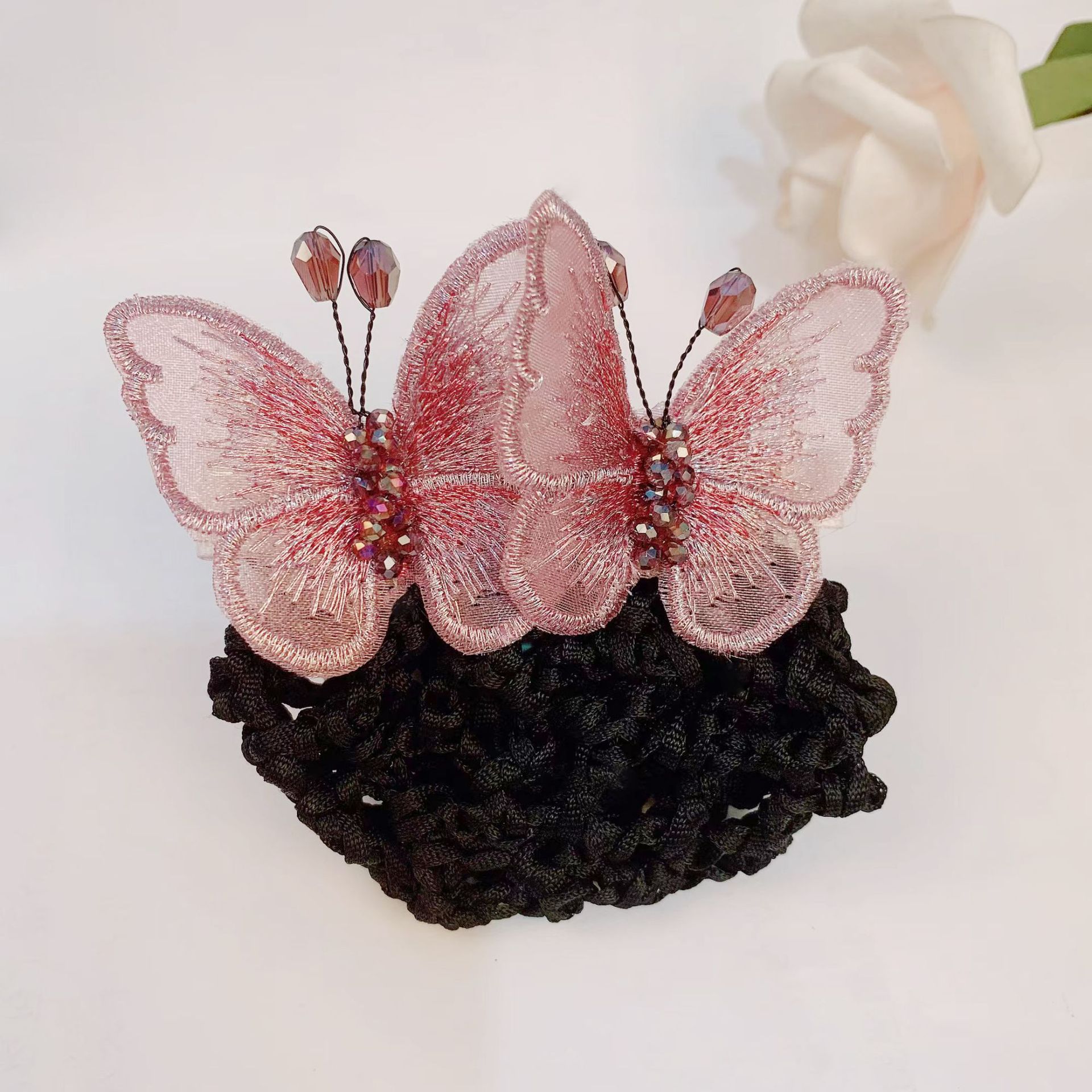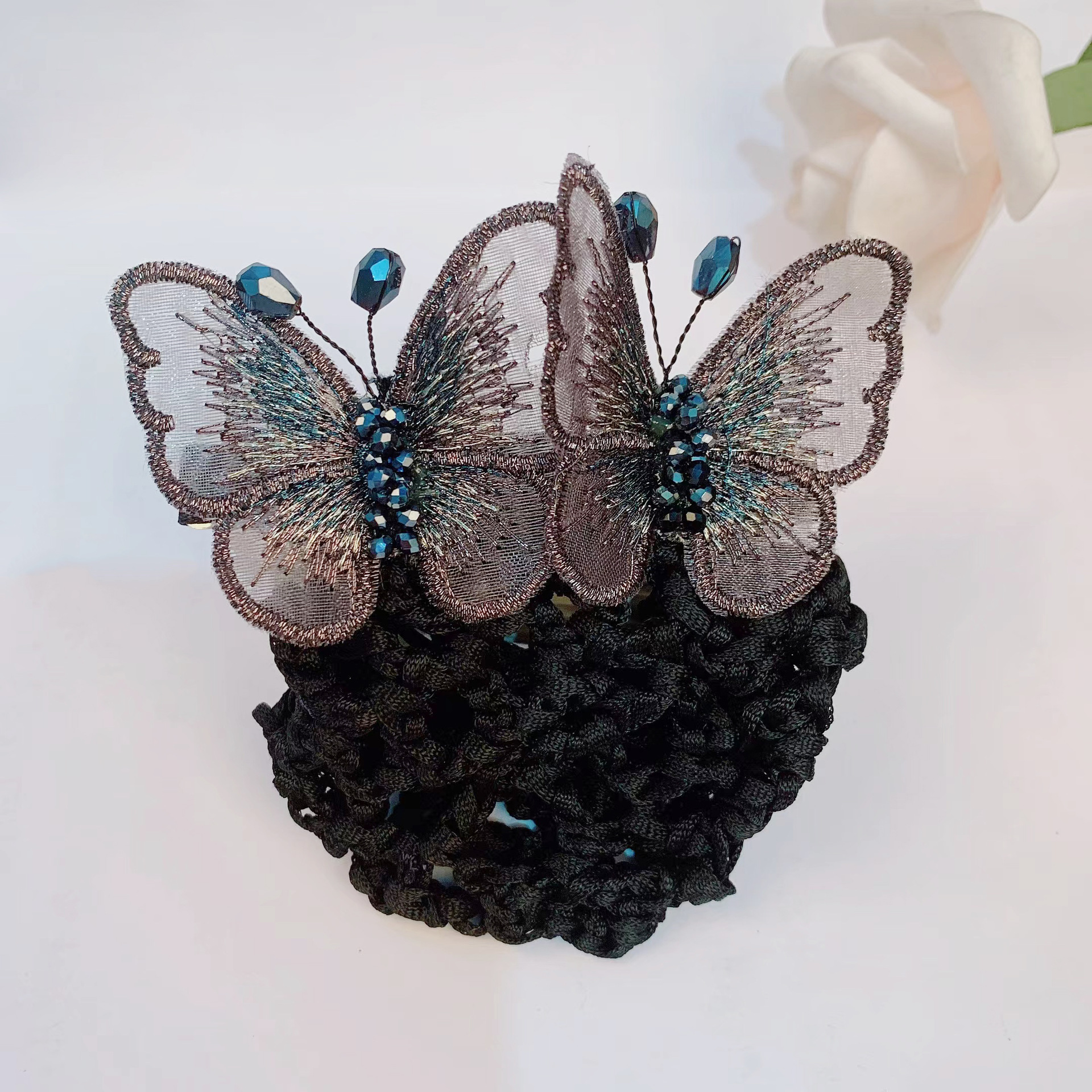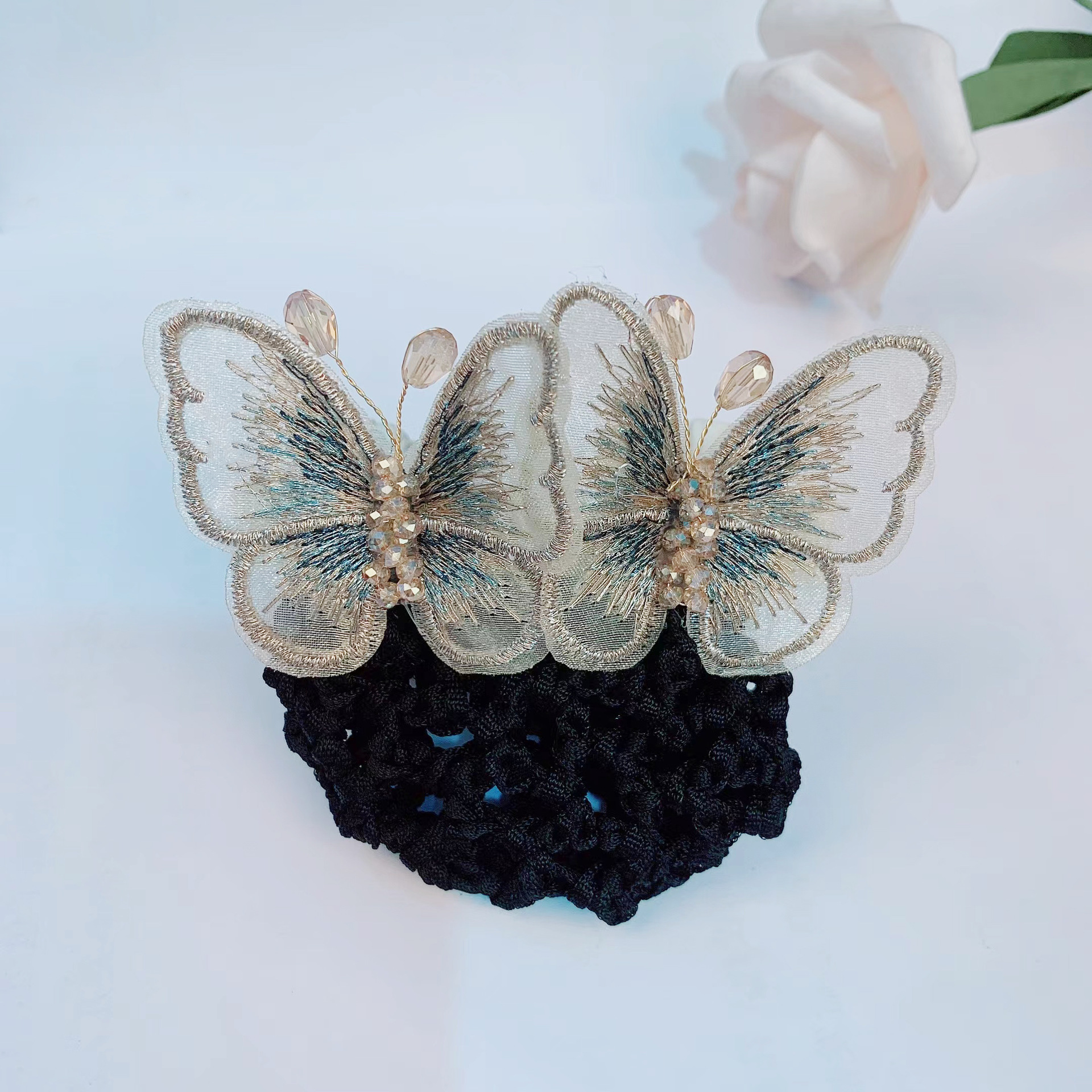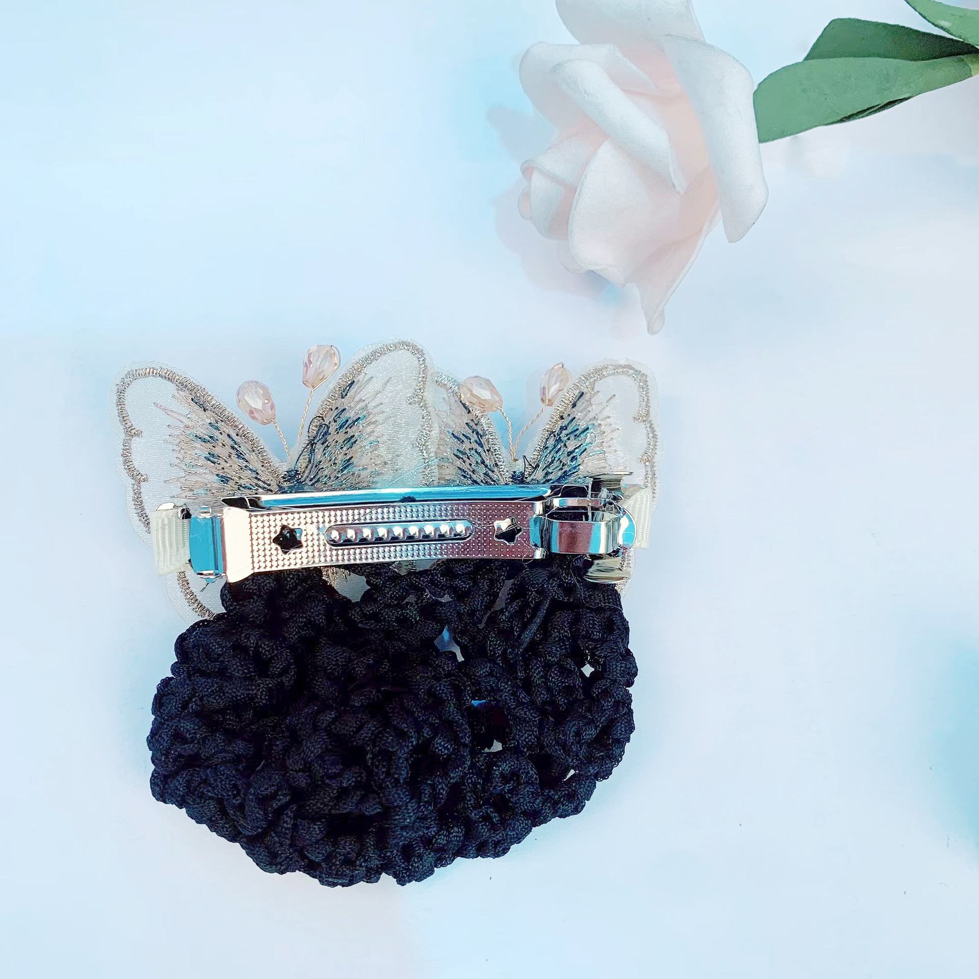 韩版酒店银行蝴蝶发网职业盘发网兜发夹头饰