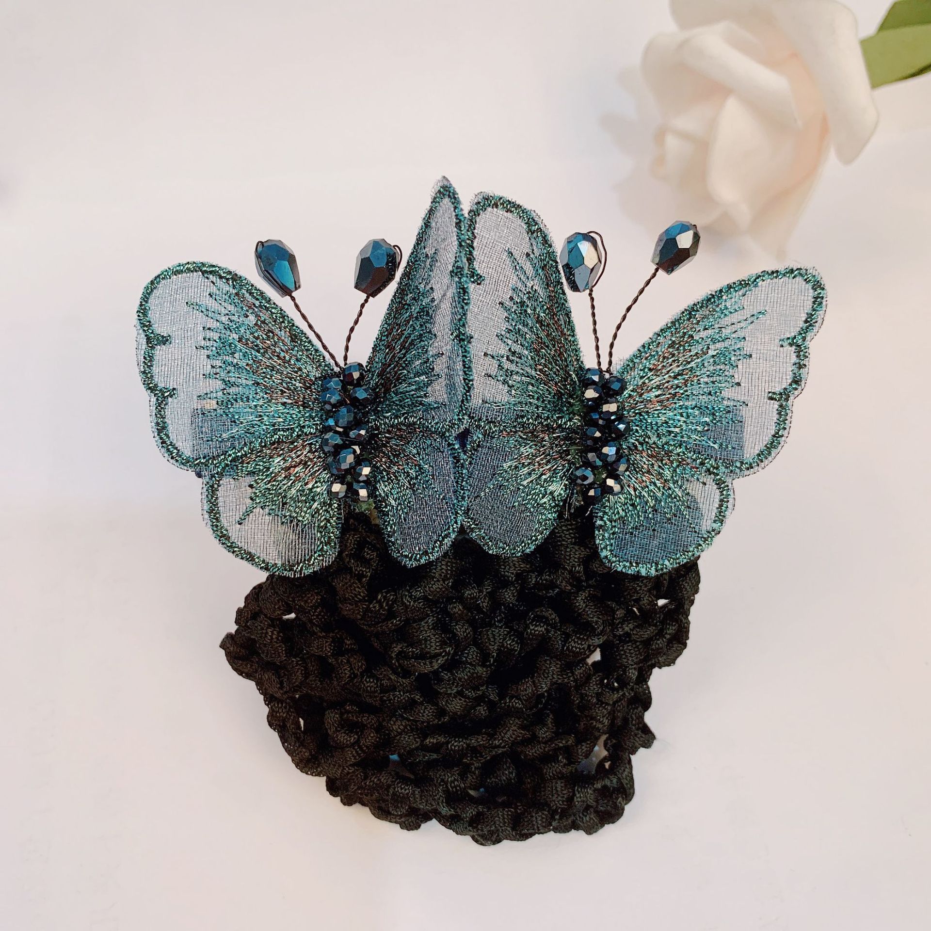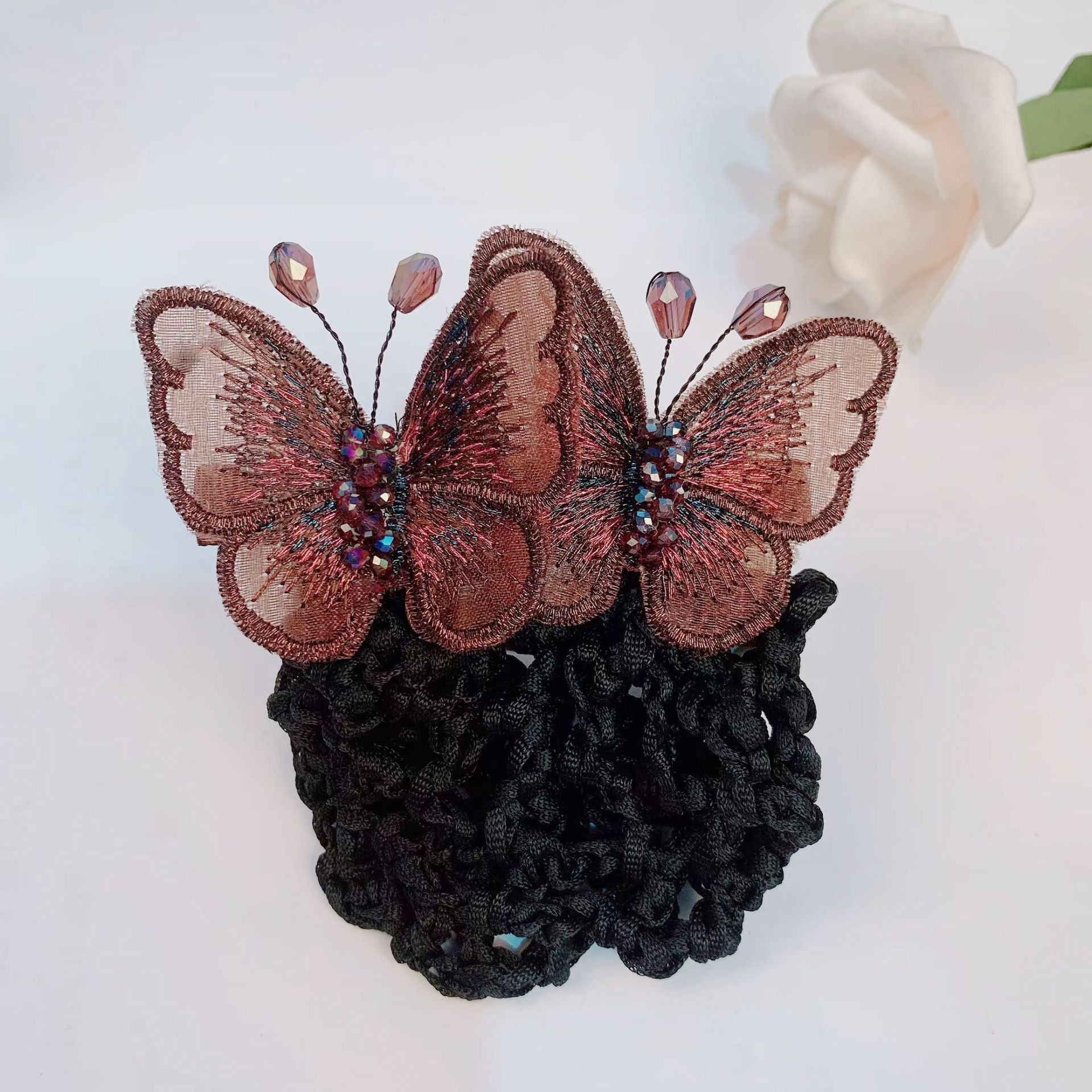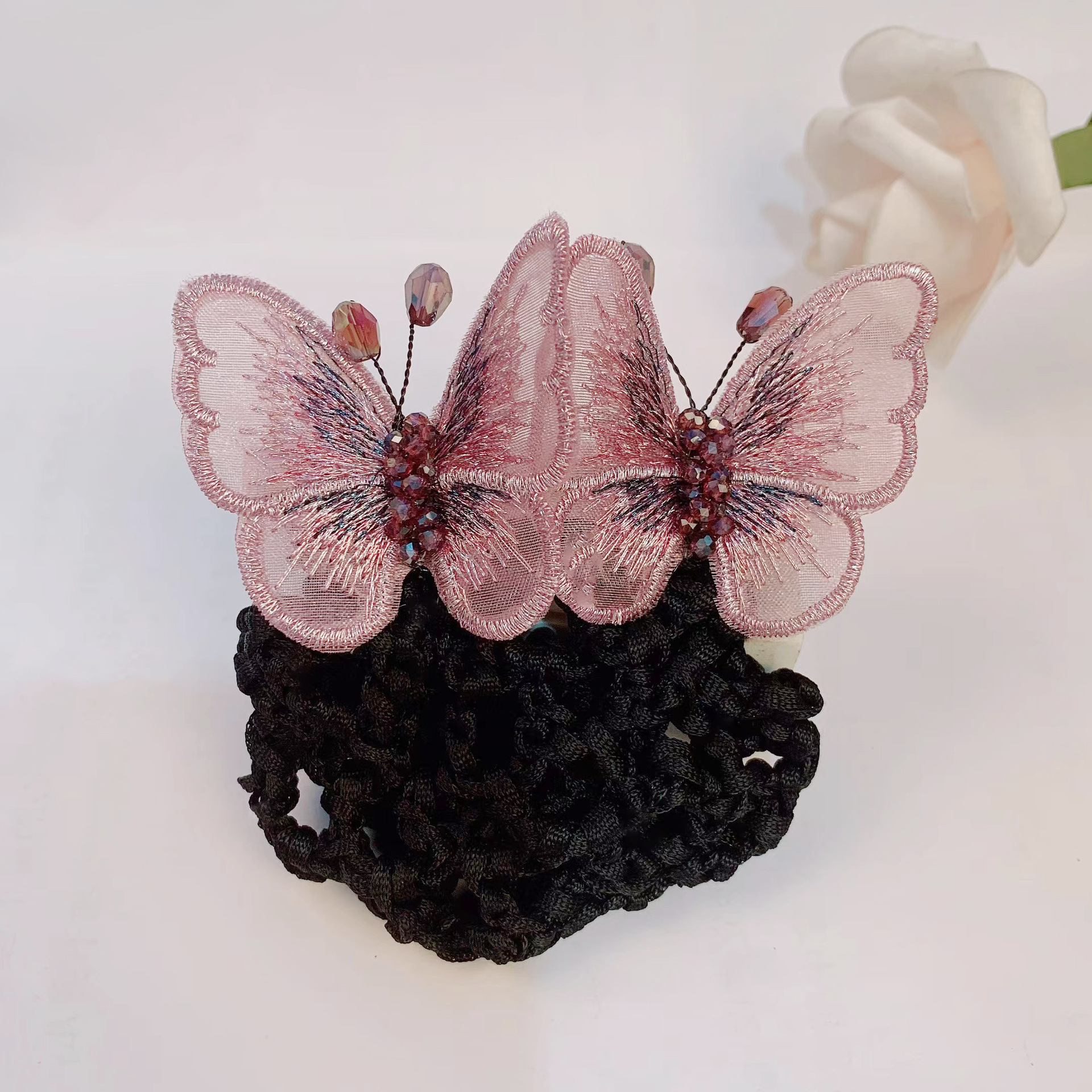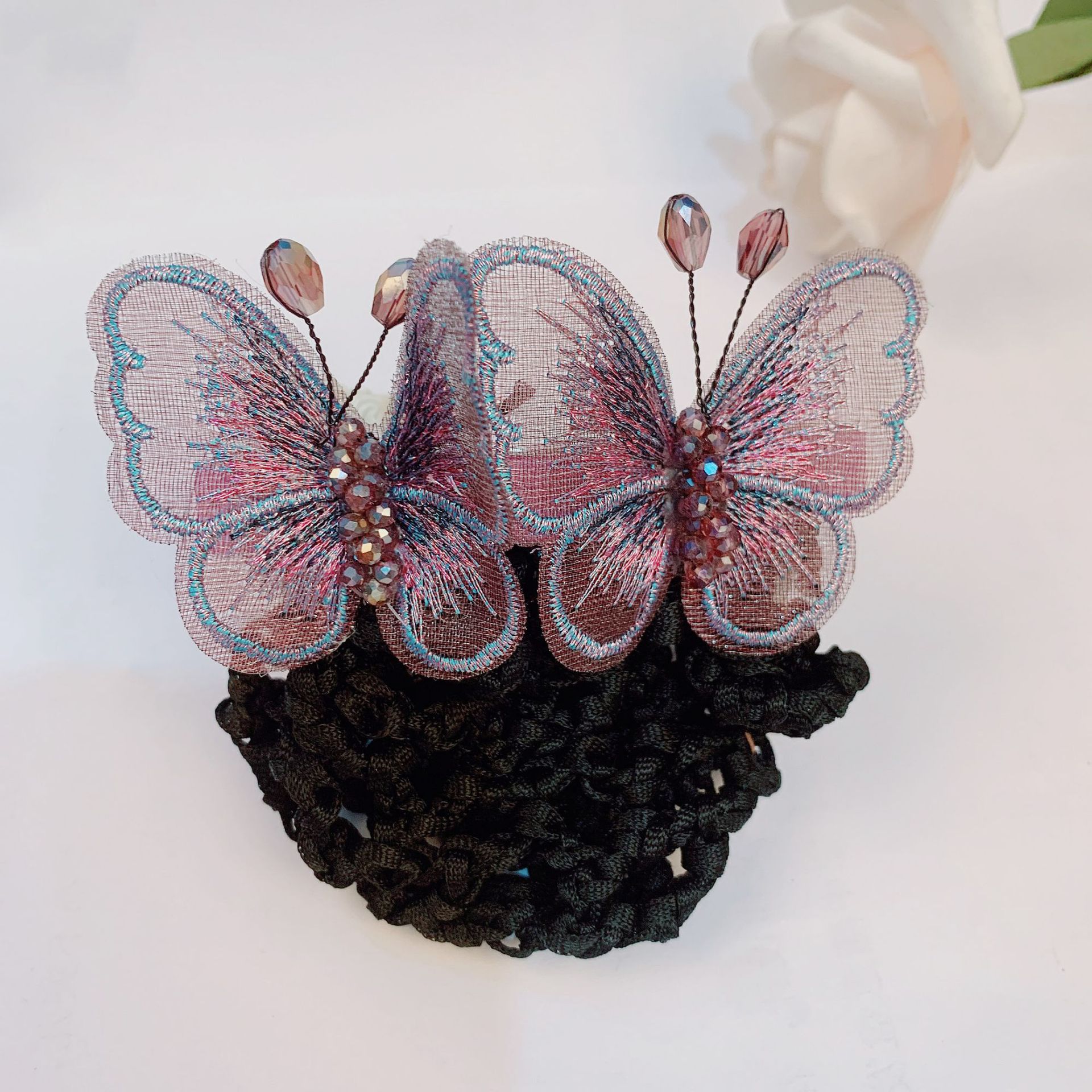 韩版酒店银行蝴蝶发网职业盘发网兜发夹头饰