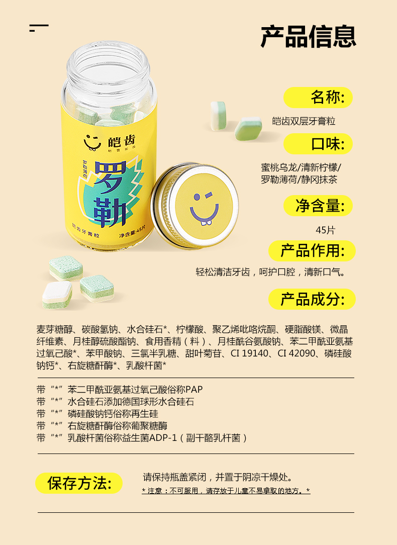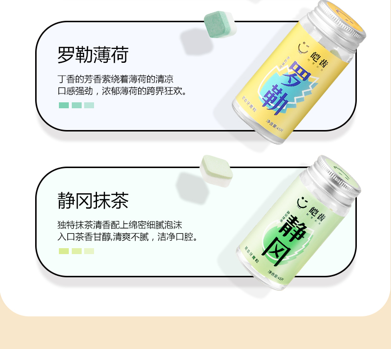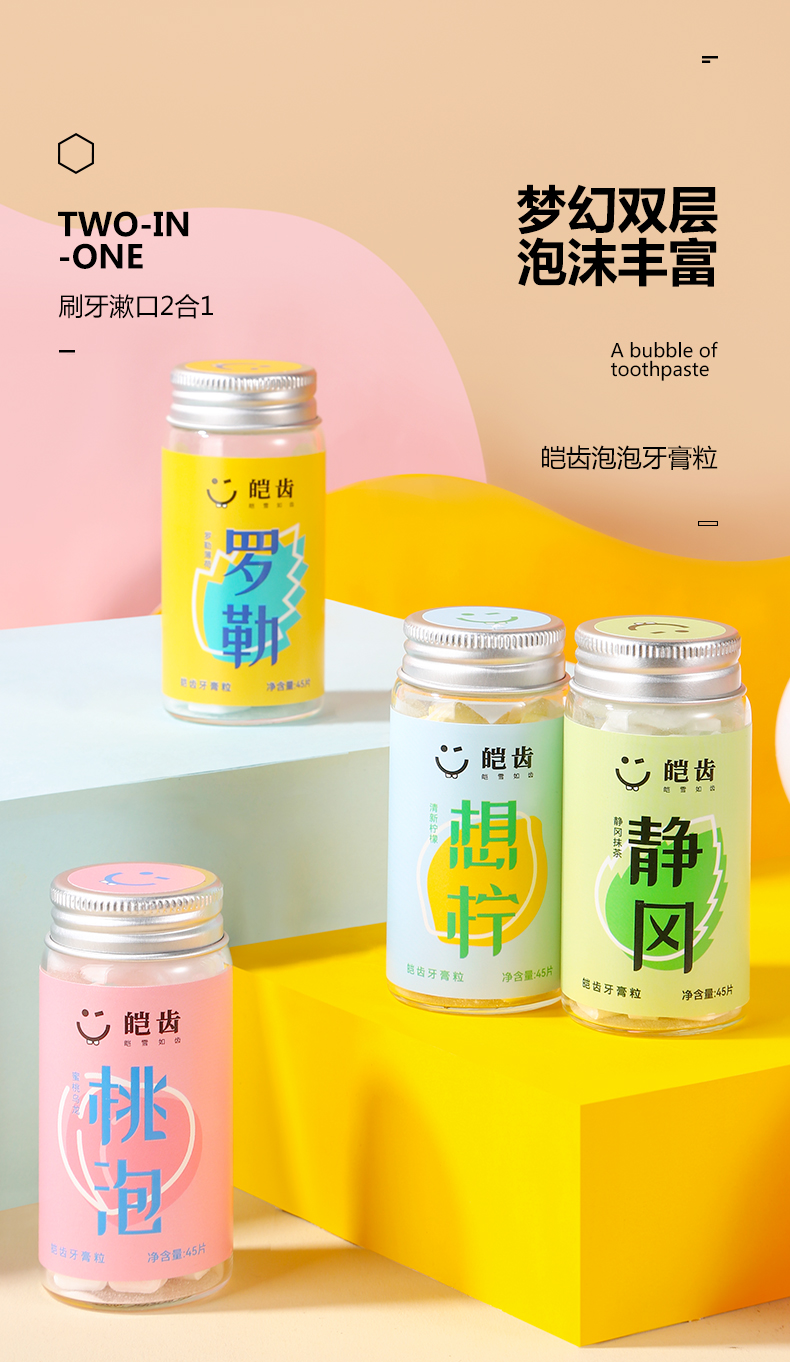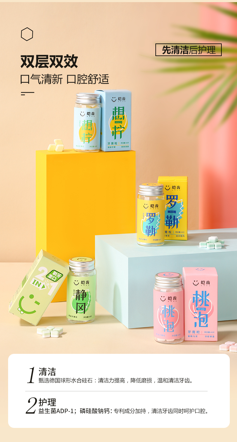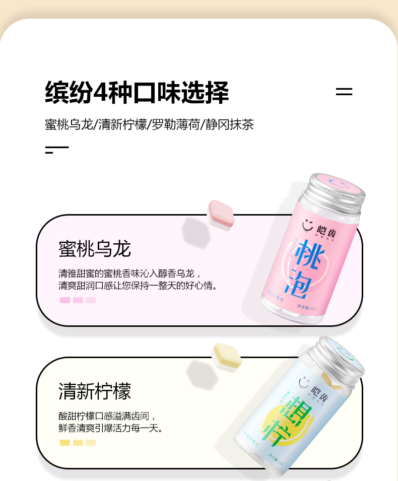 【皑齿-二合一泡泡漱口粒】草本植萃成分净澈口腔清新口气双层双效温和0配方蜜桃乌龙/清新柠檬/落了薄荷/静冈抹茶四种口味清爽不辣口