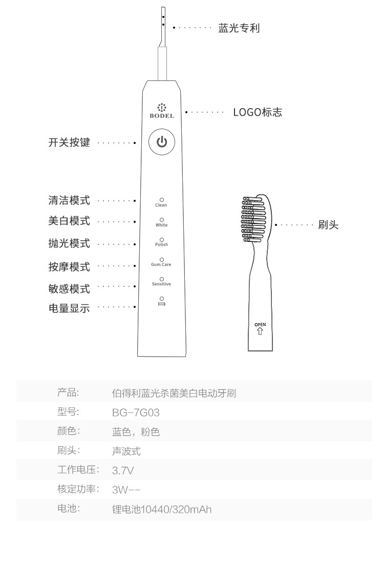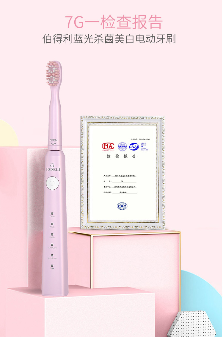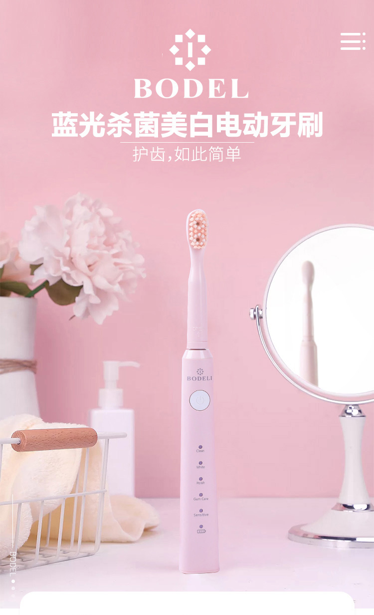 罗曼-伯得利蓝光美白电动牙刷 防水式成人款电动牙刷