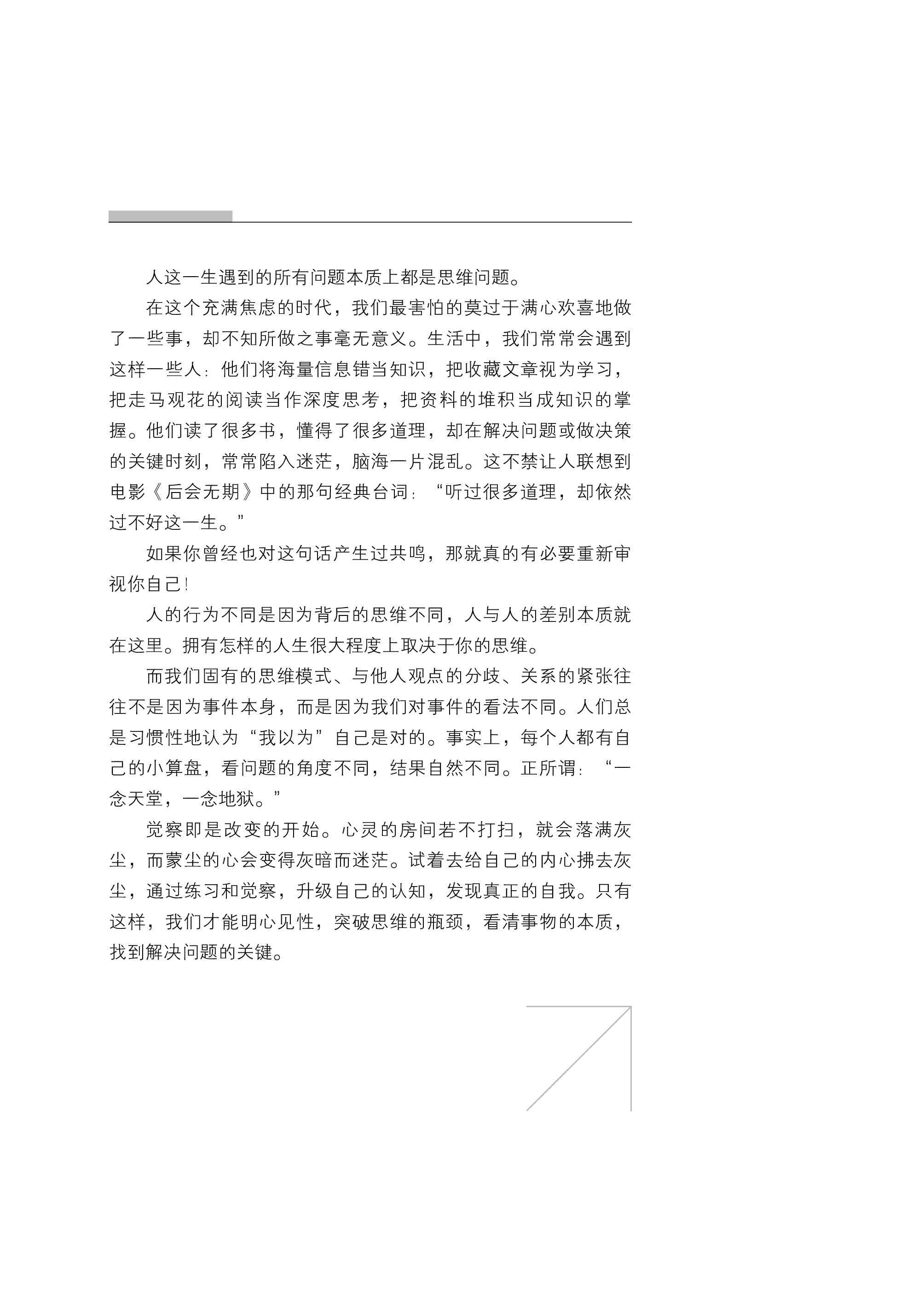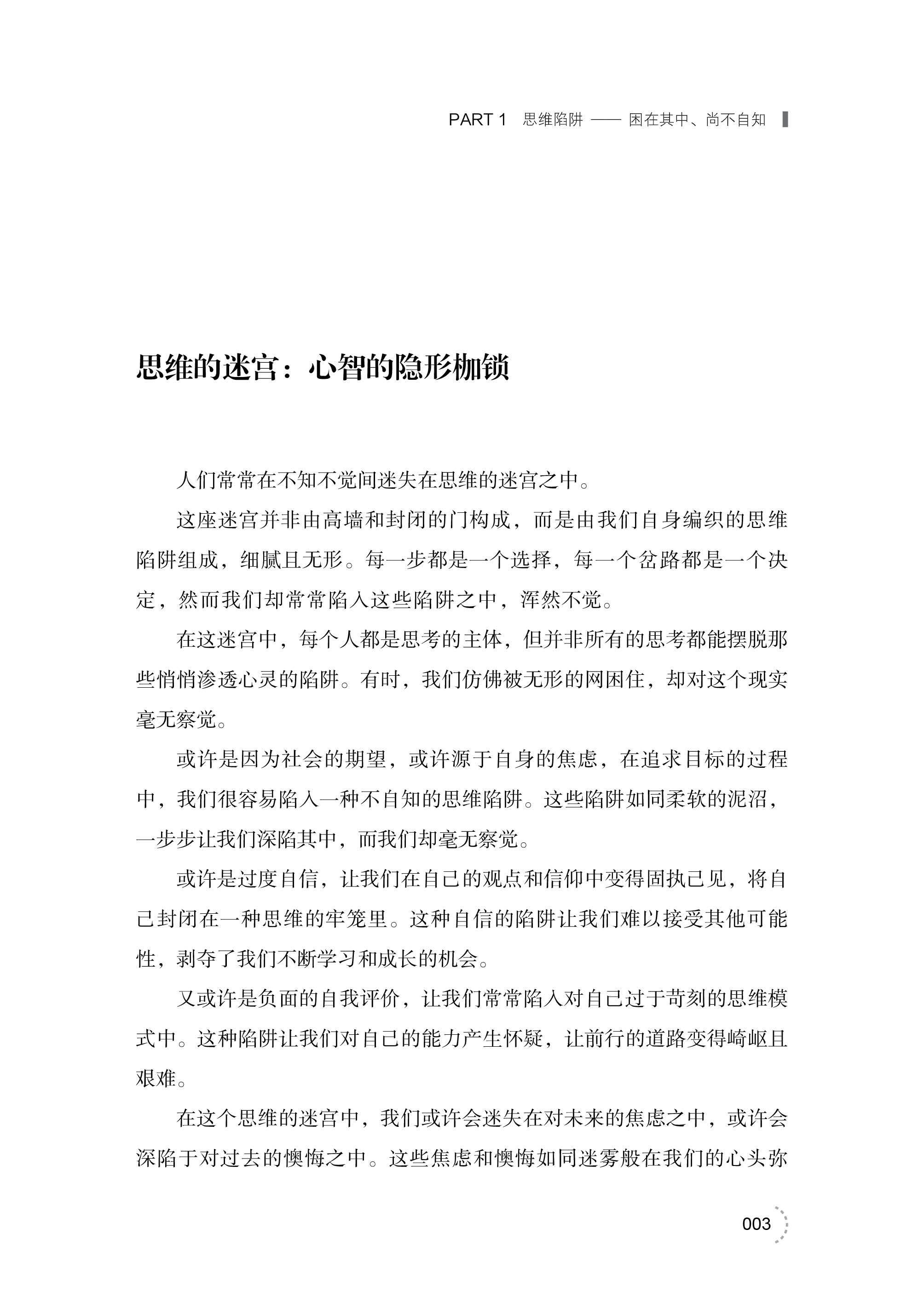 系统的认知升级路径:书中构建了一套系统的认知升级路径,从思维陷阱的识别到认知升级的实现,再到成功方法的实践,逐步引导读者实现自我成长和突破。
