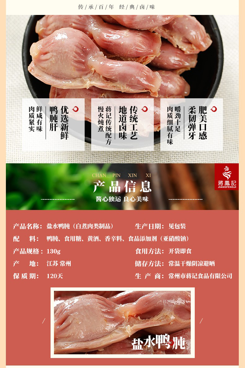 【常州馆】蒋凤记真空装盐水鸭肫鸭胗130g*2