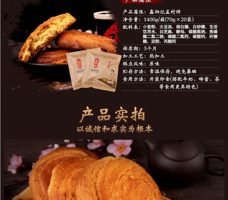 鑫炳记·孟村饼70g*20袋整箱装层饼酥饼 手撕旋饼