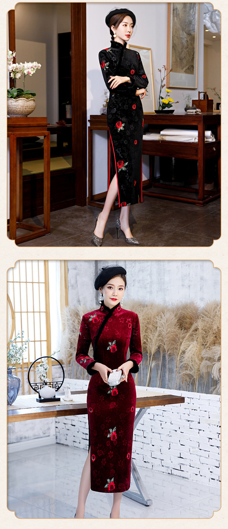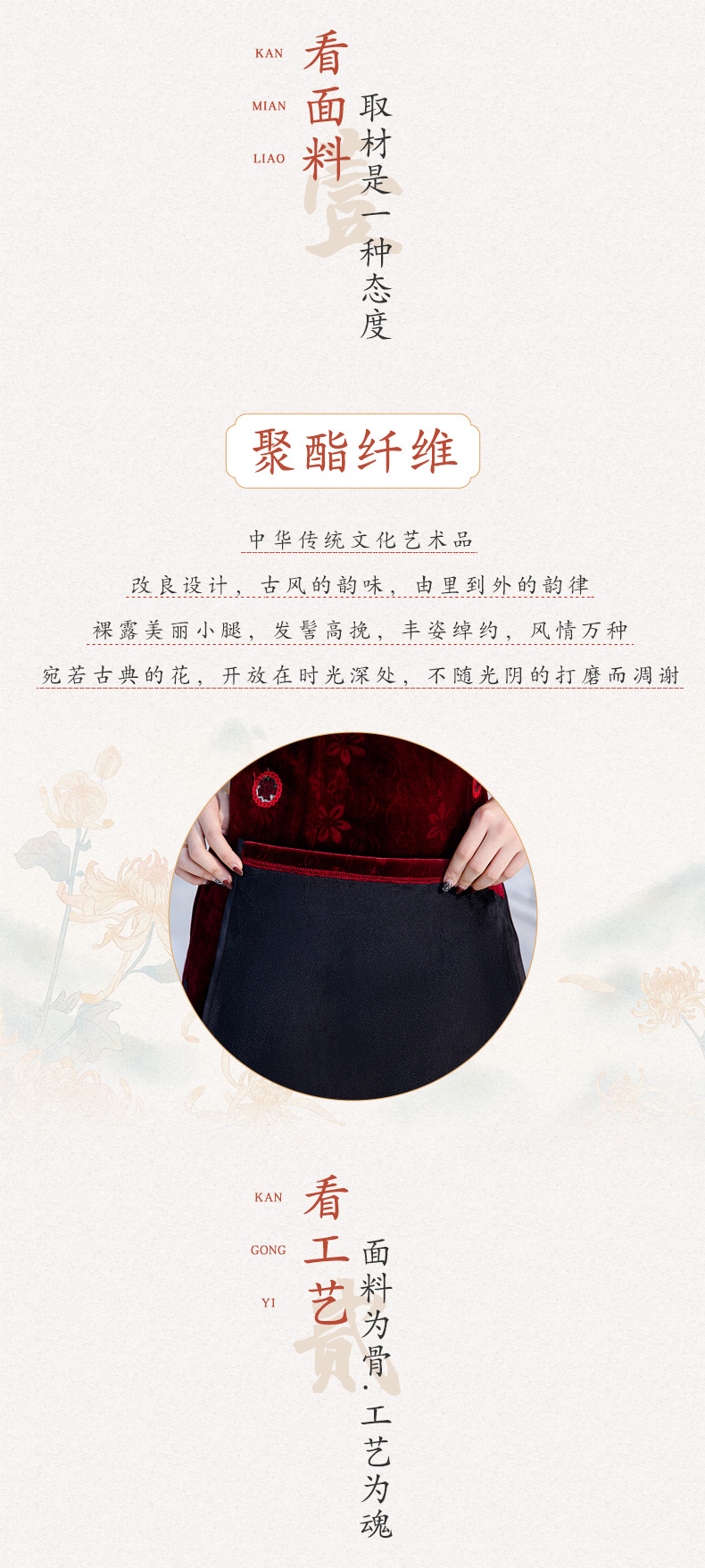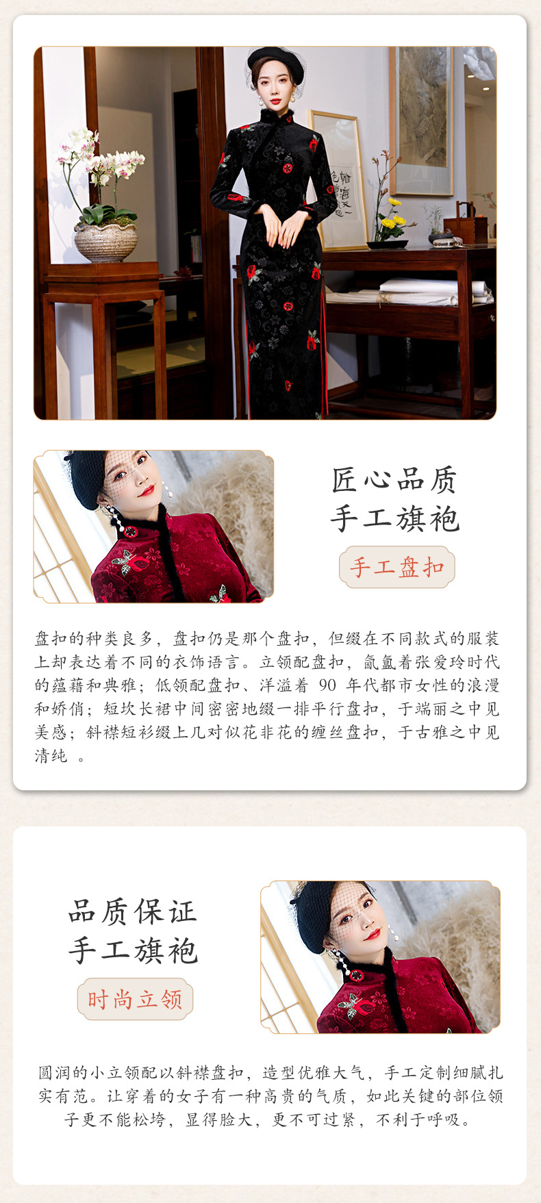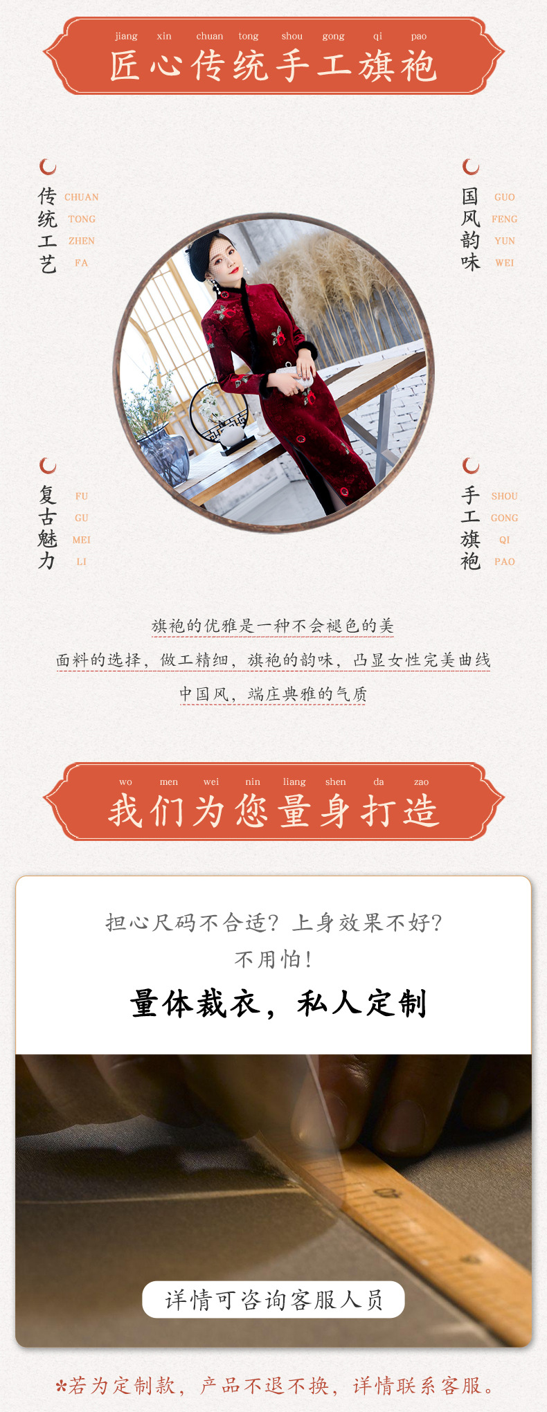 上海旗袍厂BJ-19347秋冬新款韩国绒长款加厚少女旗袍裙 修身显瘦改良旗袍连衣裙