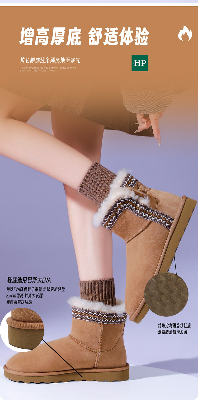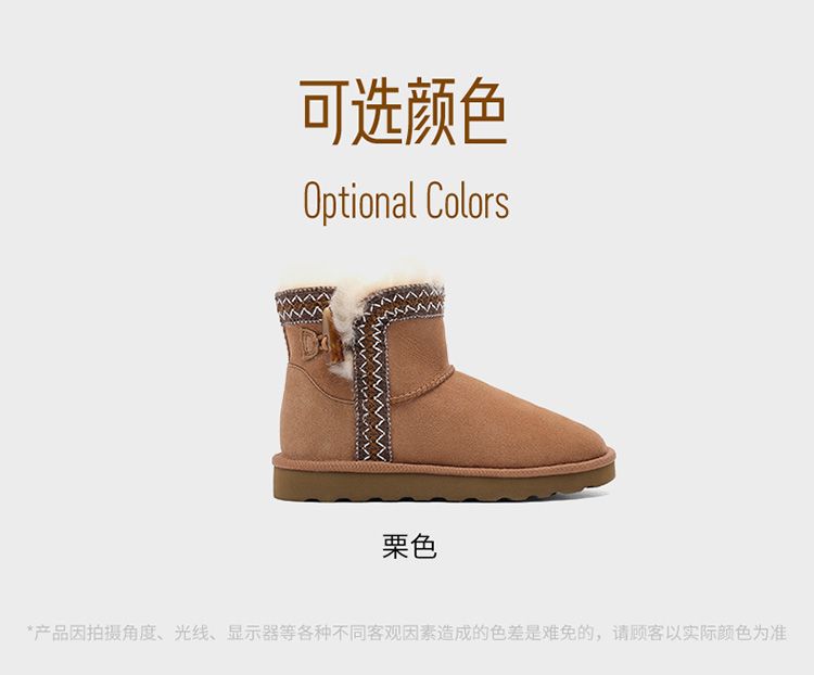 隆丰冬季女保暖A级羊皮毛一体雪地靴一粒牛角扣基础款名族风短筒雪地靴122075 商品图2