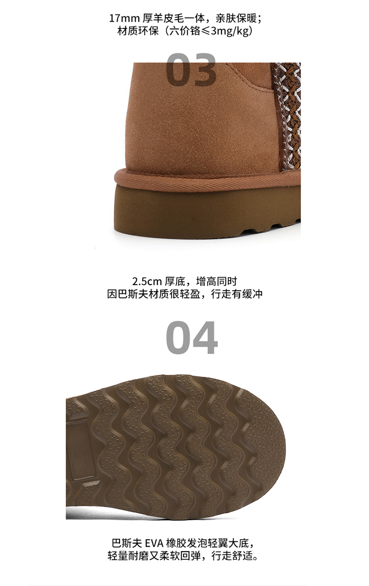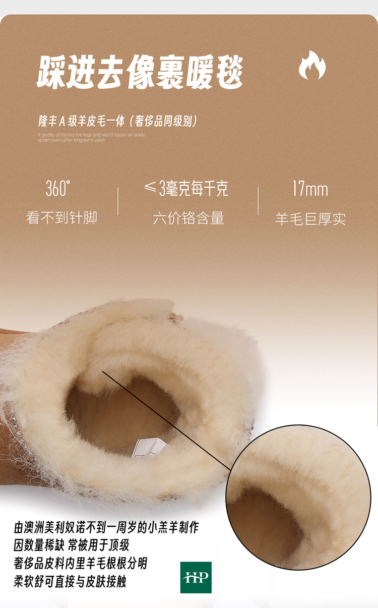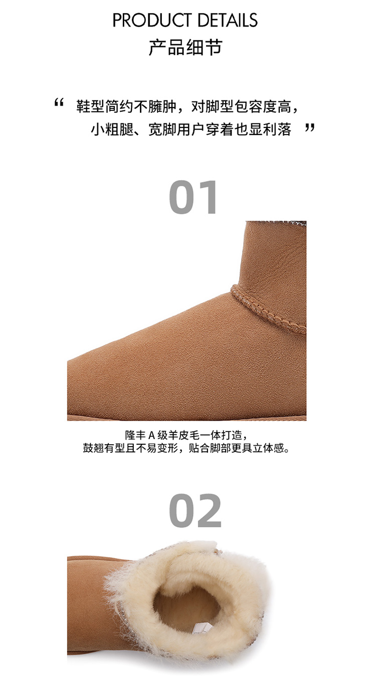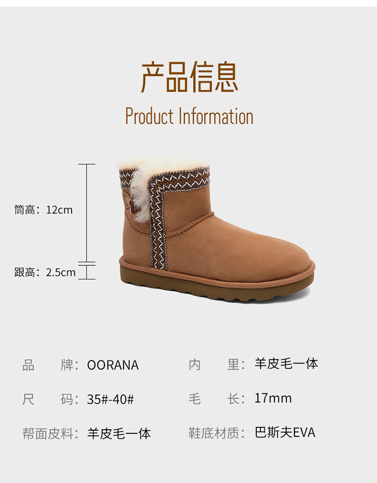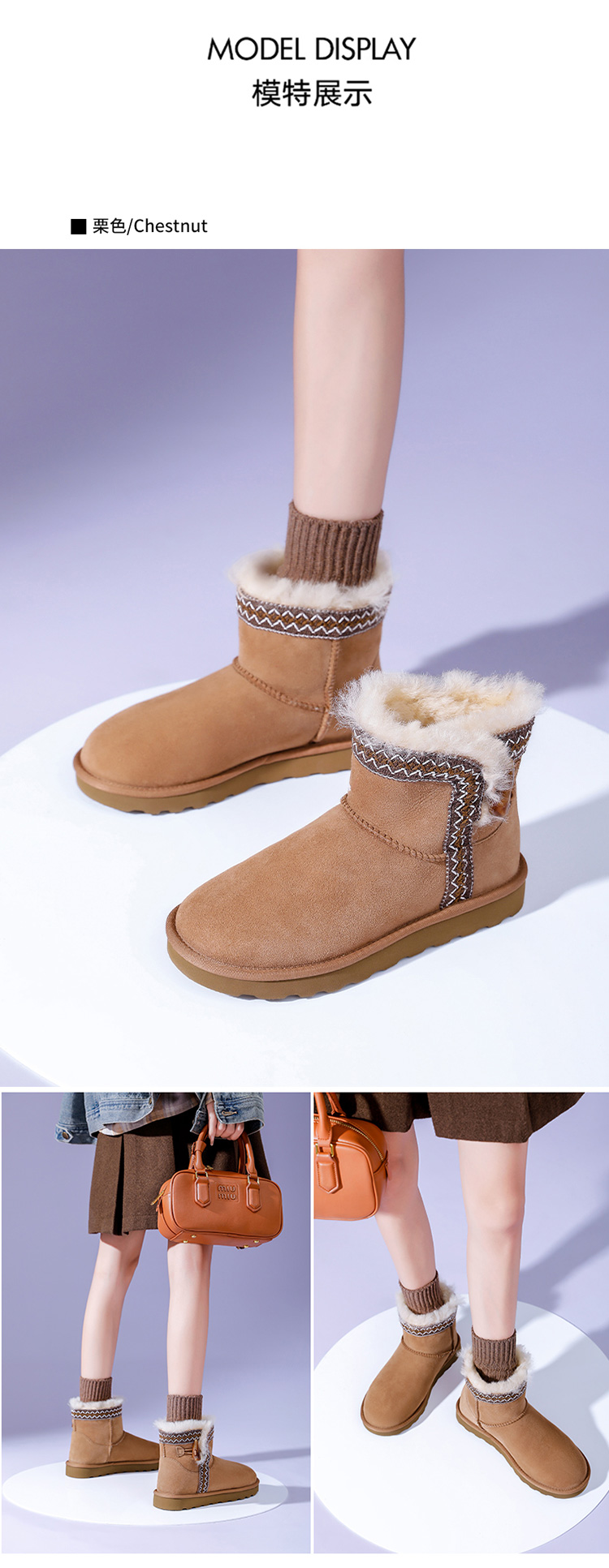 隆丰冬季女保暖A级羊皮毛一体雪地靴一粒牛角扣基础款名族风短筒雪地靴122075 商品图6
