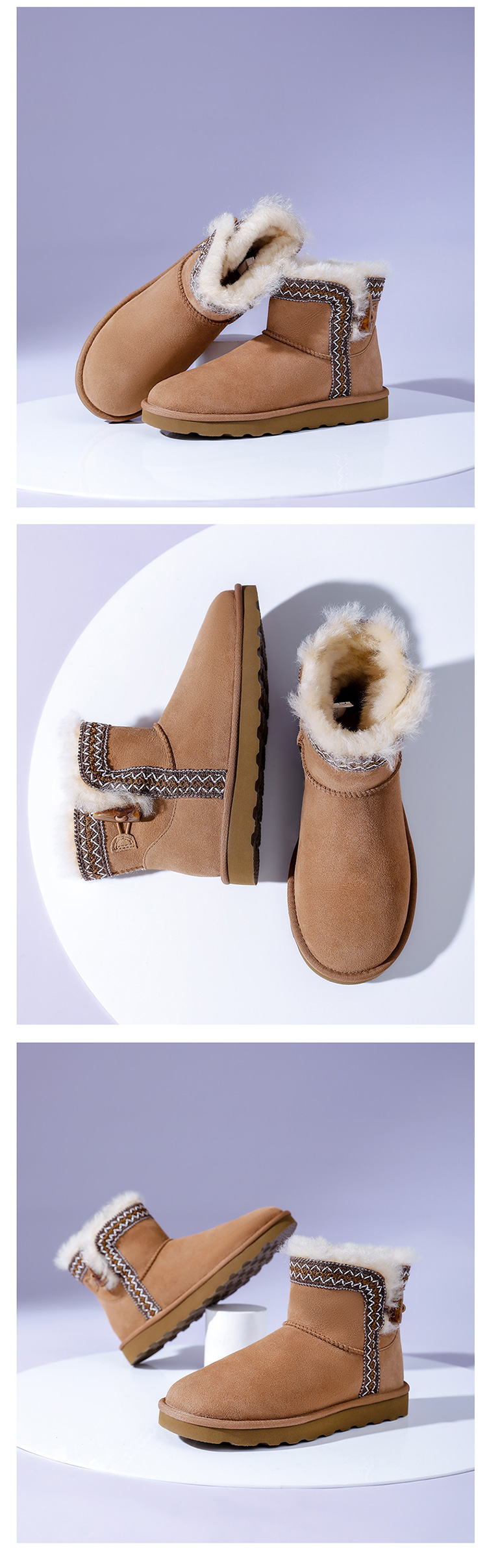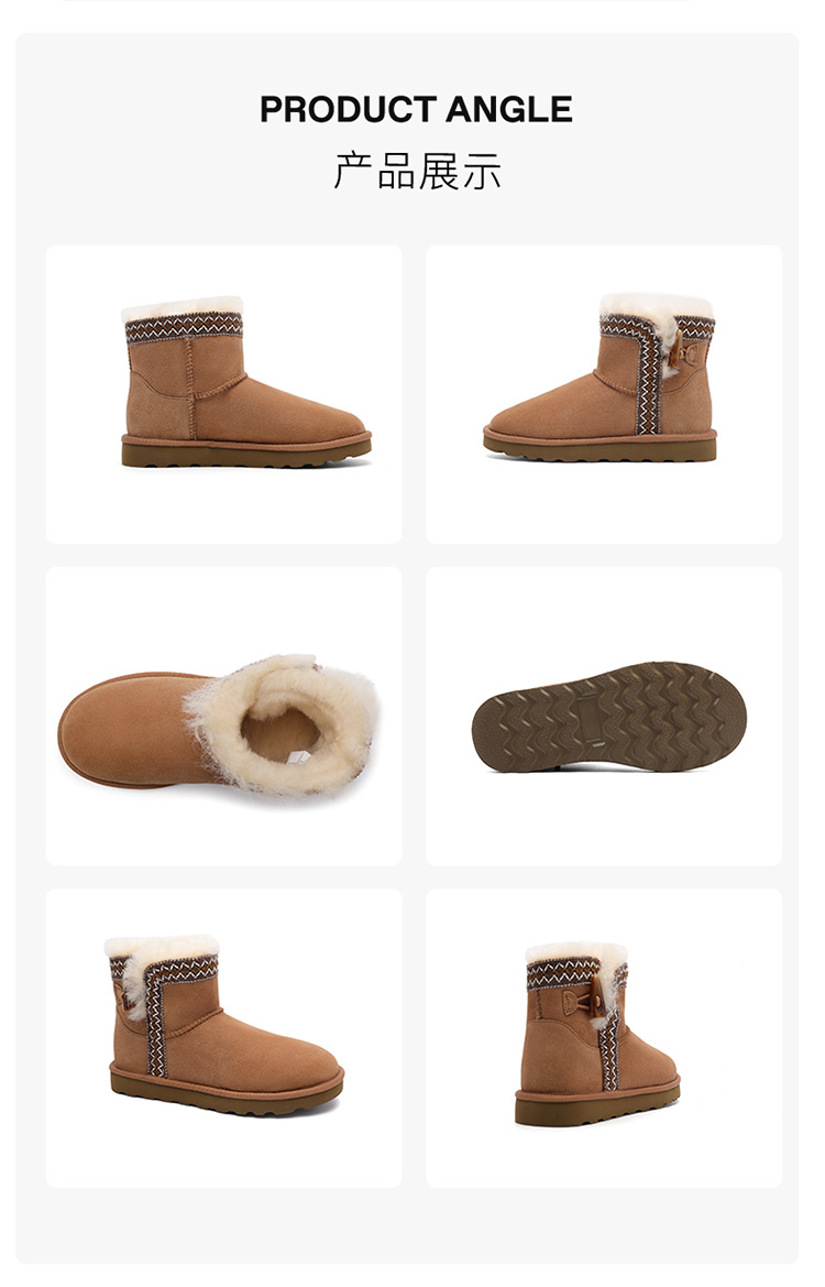 隆丰冬季女保暖A级羊皮毛一体雪地靴一粒牛角扣基础款名族风短筒雪地靴122075 商品图4