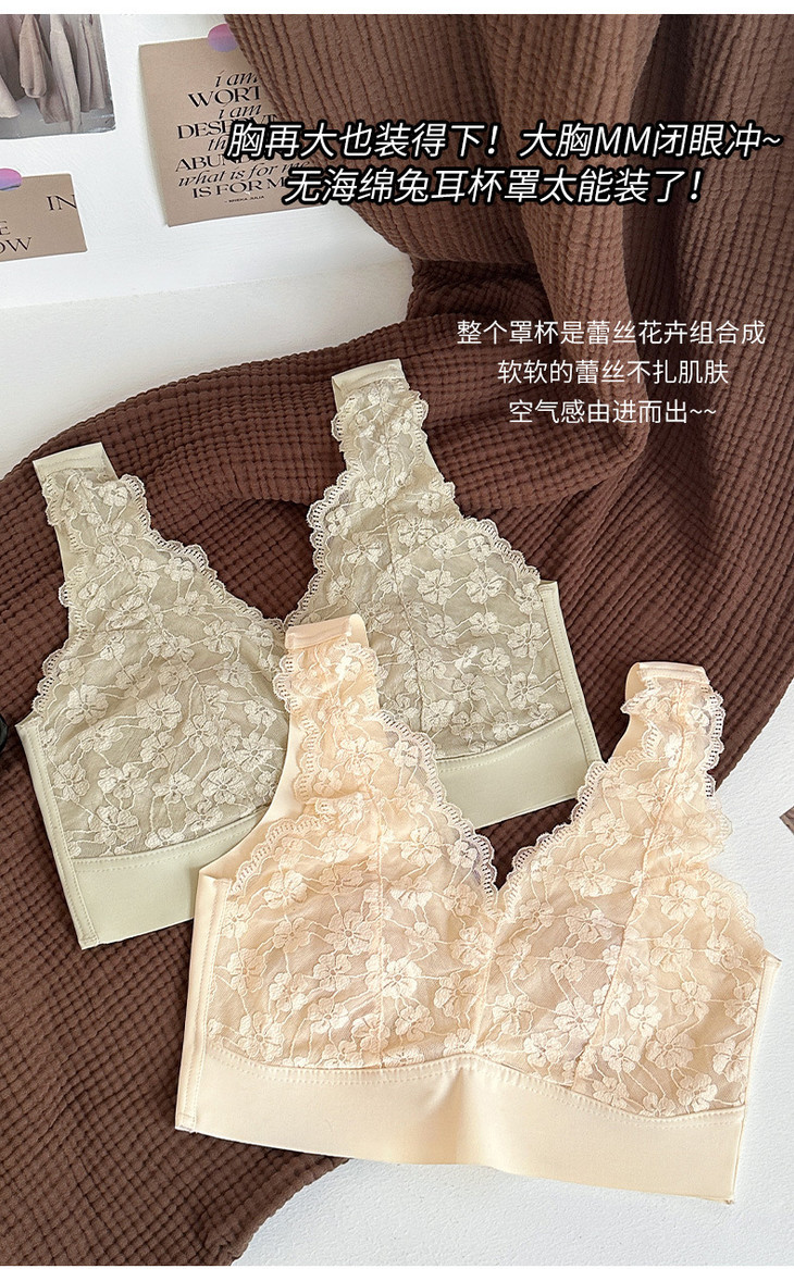 法式无痕蕾丝美背一体杯裹胸,固定杯薄款兔耳朵背心文胸