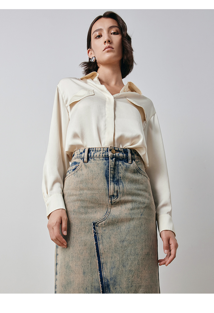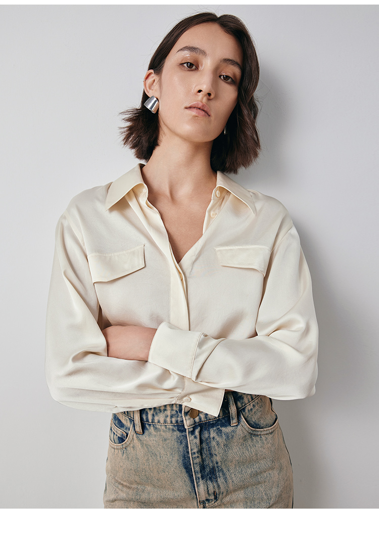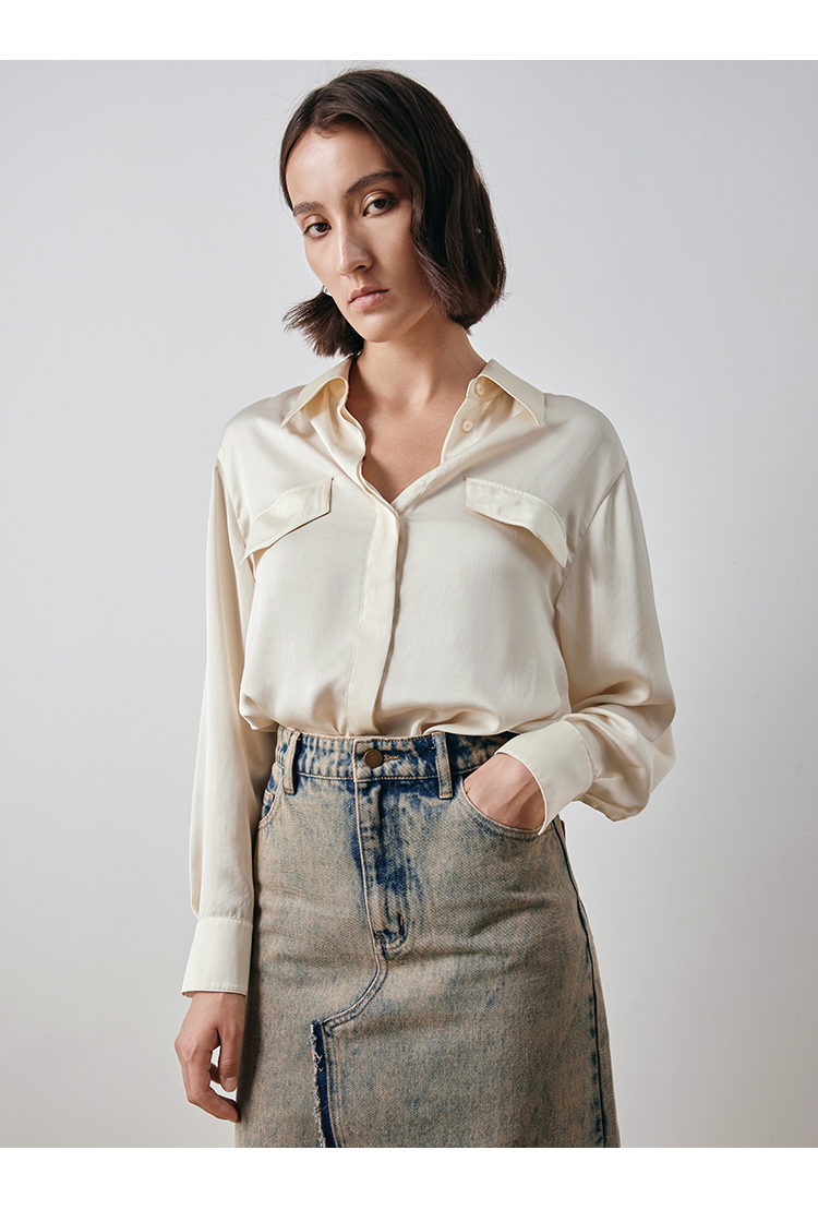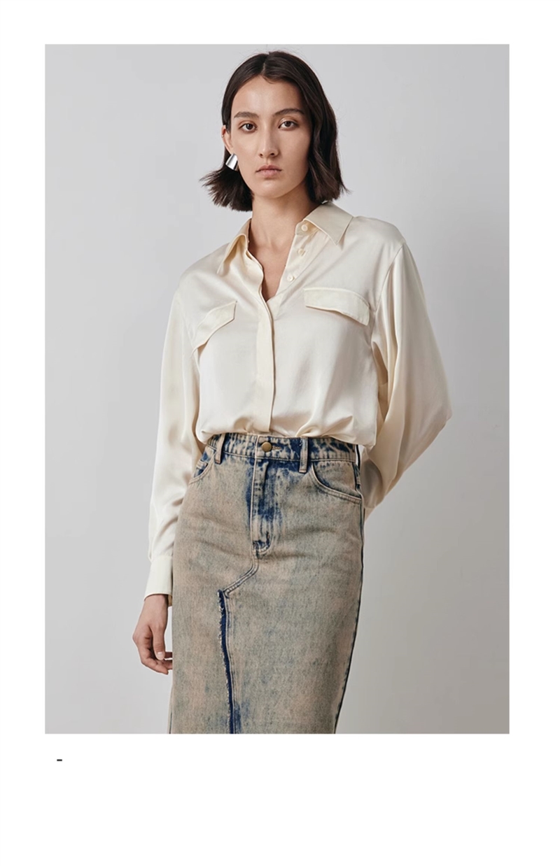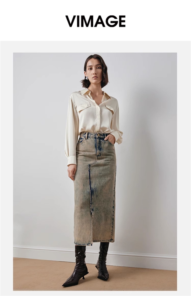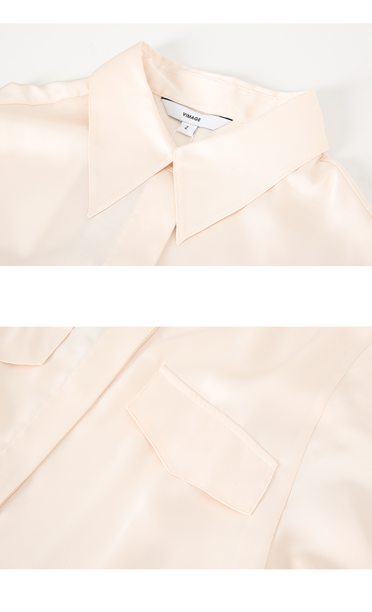 VIMAGE纬漫纪宽松慵懒感舒适百搭简约气质纯色雪纺衬衫秋新款V2009609