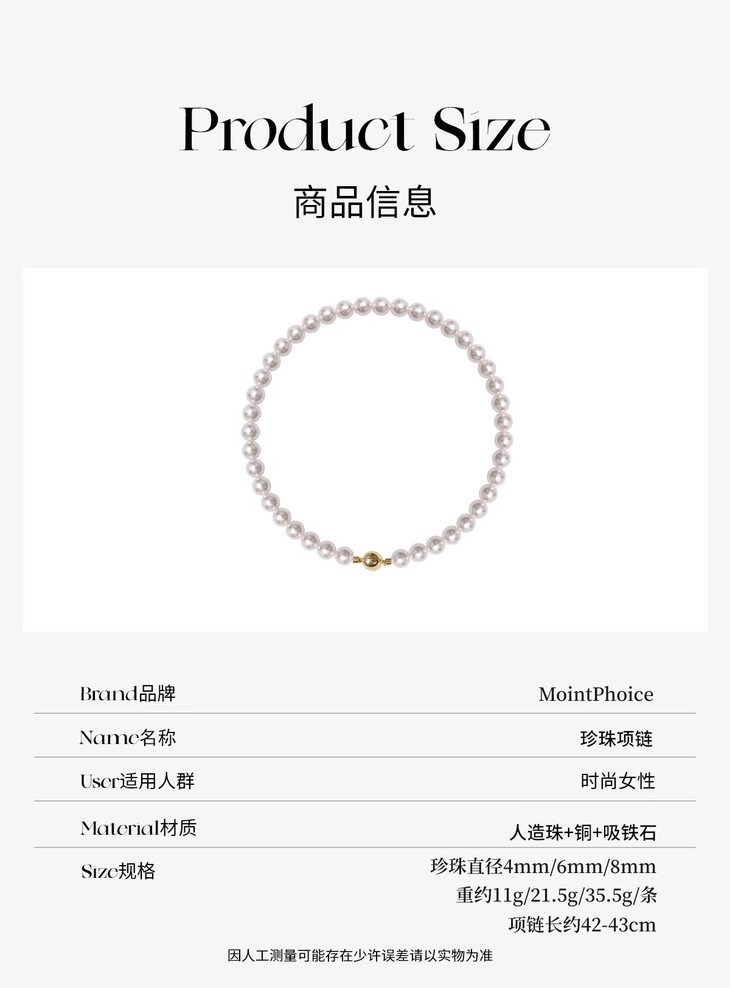 【送同款8mm珍珠耳钉】MointPhoice经典法式珍珠项链 (4-910)